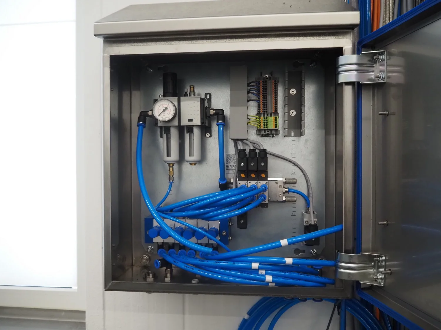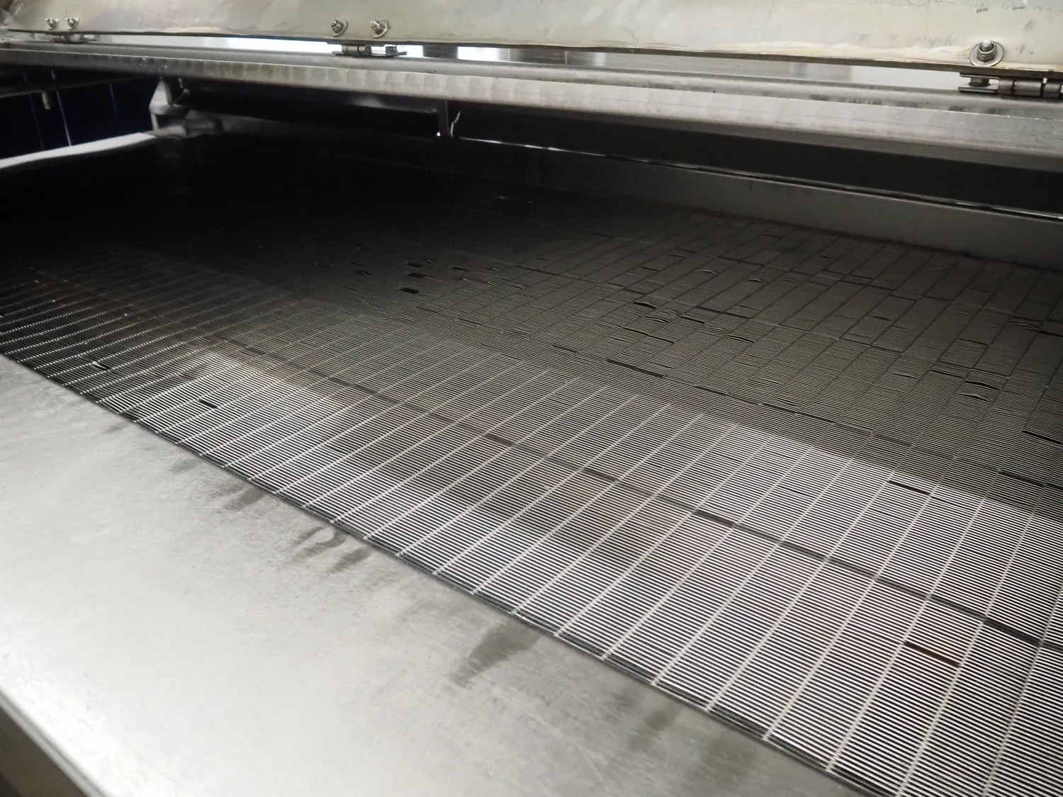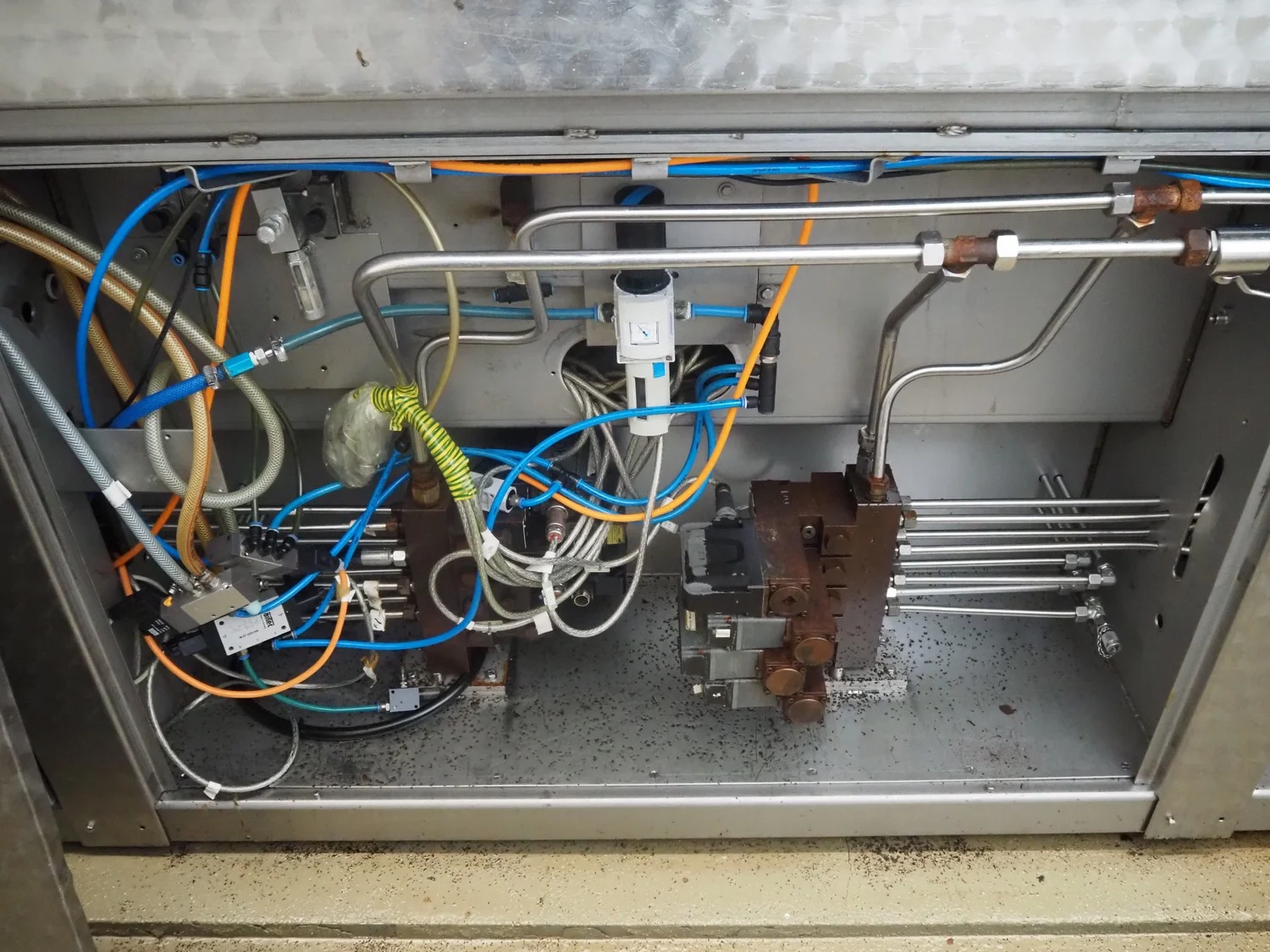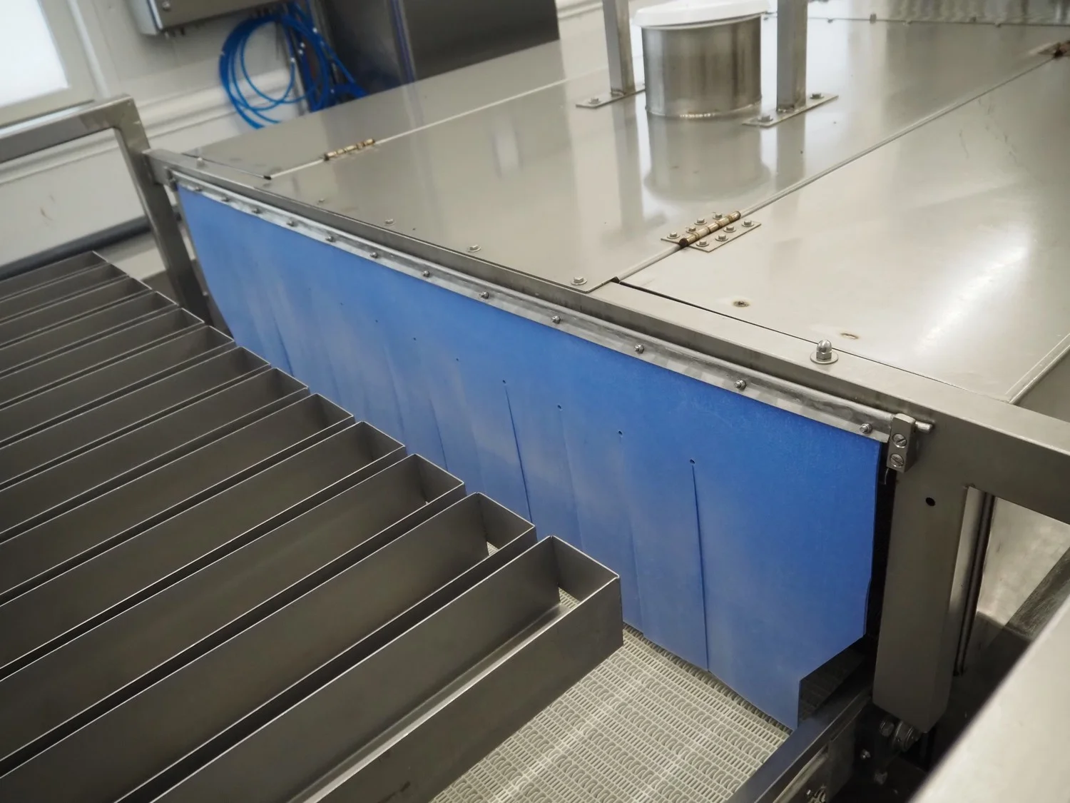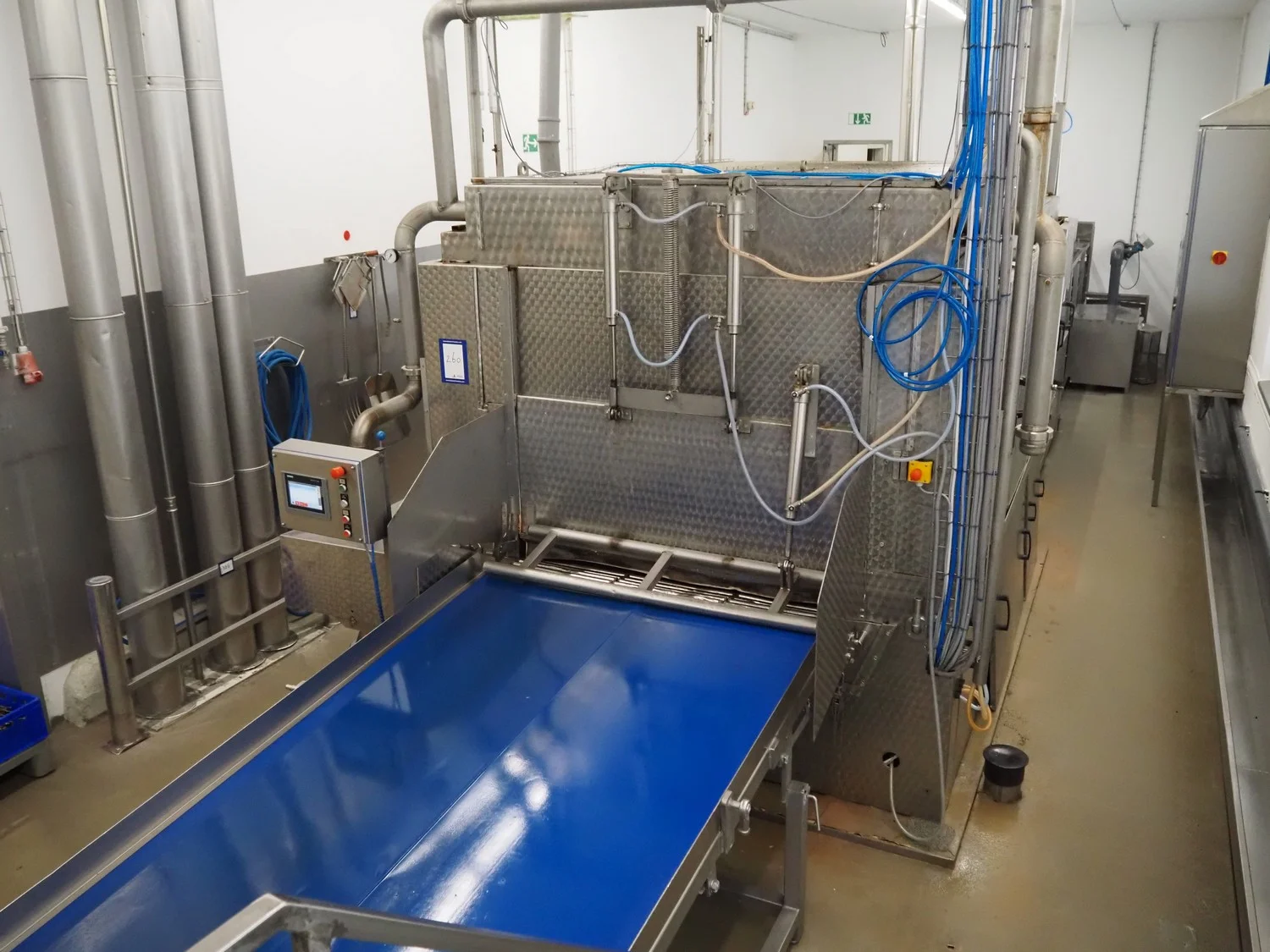 Cabbage cooking line consisting of: infeed belt, s/s frame, plastic belt, belt width: 1420 mm, total dimensions: 3100 mm x 1600 mm x 1050 mm. cooking belt with pricking system, s/s mesh belt, belt width: 1460 mm, total dimensions: 4100 mm x 2600 mm x 3600 mm and 3400 mm x 2200 mm x 1700 mm. outfeed belt, plastic mesh belt, belt width: 1420 mm, total dimensions: 4700 mm x 2000 mm x 2570 mm. outfeed table, dimensions: 1450 mm x 1300 mm x 1100 mm. 4 circulation pumps 3 s/s switch cabinets.