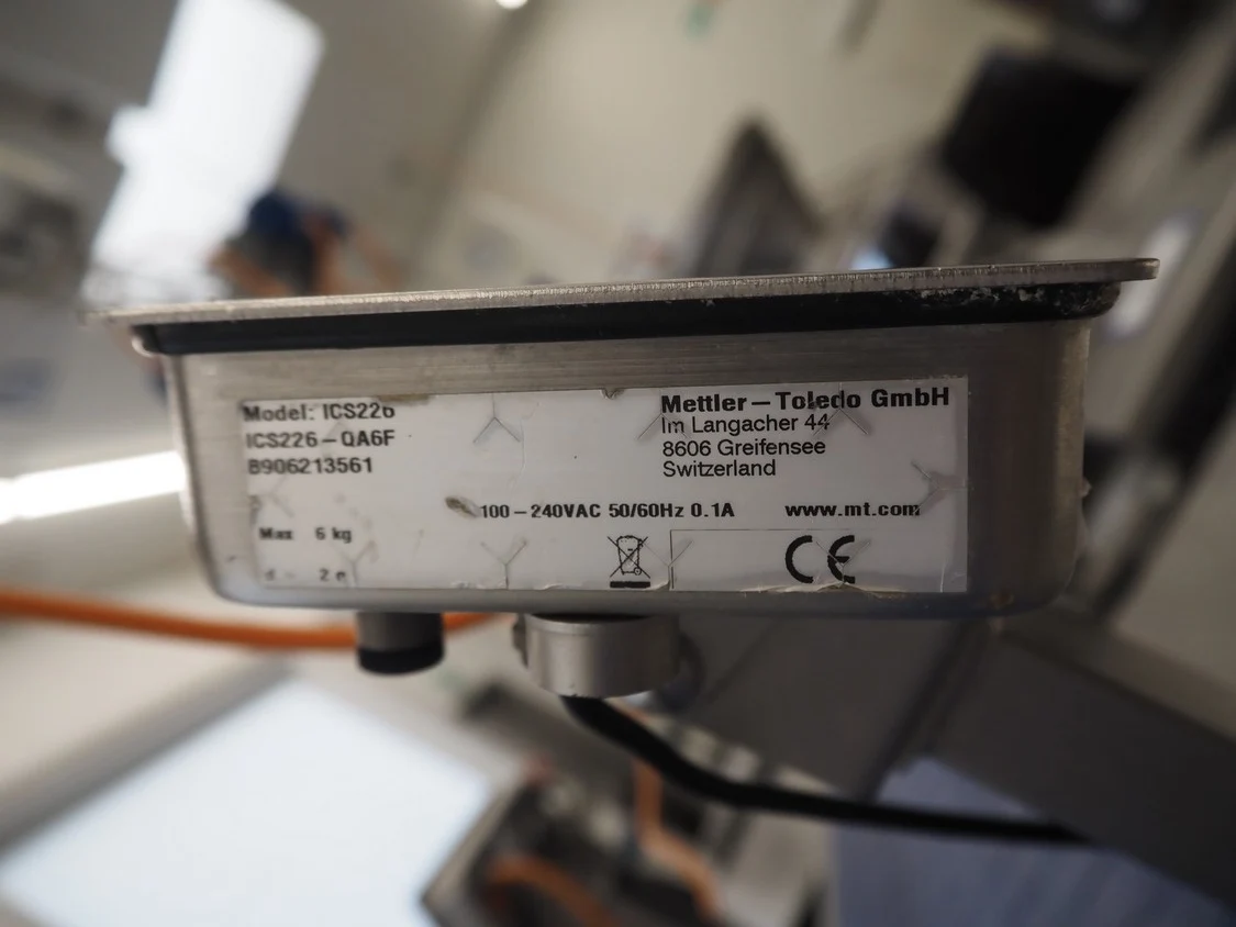 2 Mettler Toledo GmbH weighing scales, model: (2x) ICS226, 100-40 V, 50/60 Hz, 0.1 A, maximum weight: 6 kg, d= 2 g, dimensions: (2x) 350 mm x 320 mm x 400 mm.