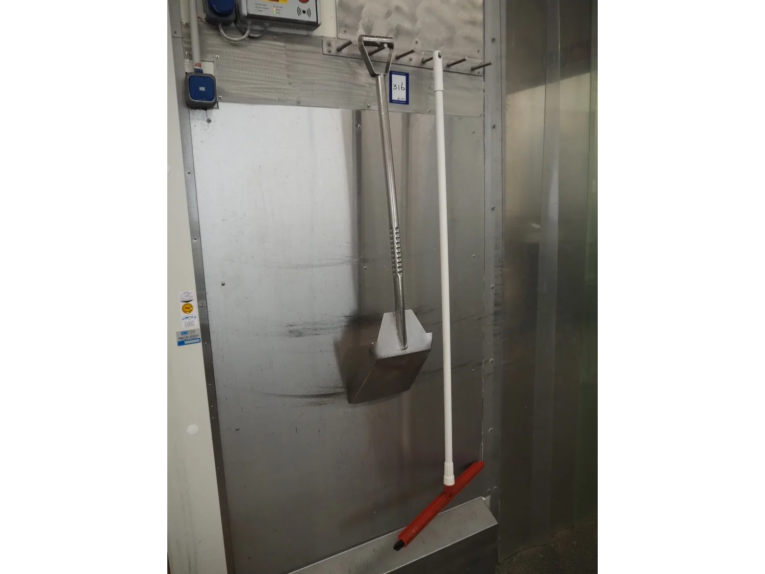S/s peg with plastic squeegee and s/s shovel, length peg: 610 mm.