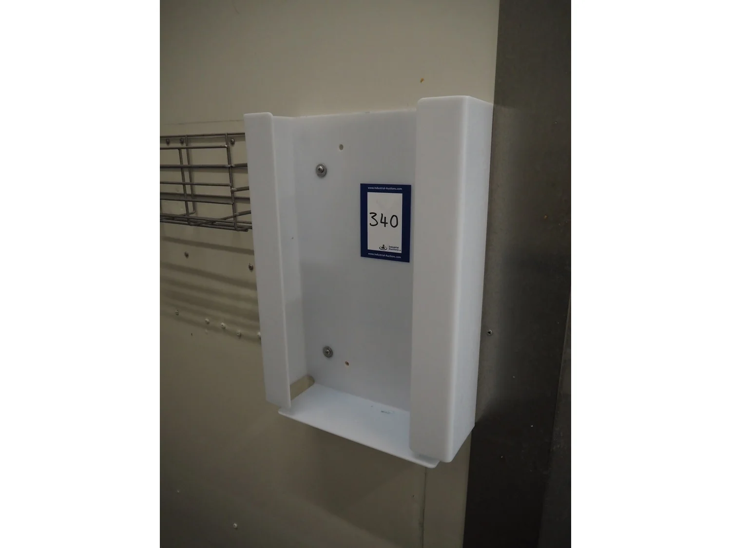 Plastic wall dispenser, dimensions: 300 mm x 100 mm x 420 mm.