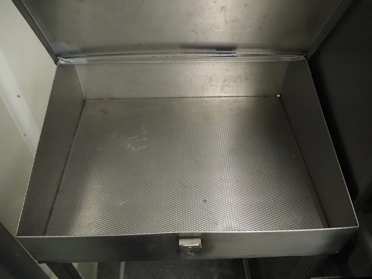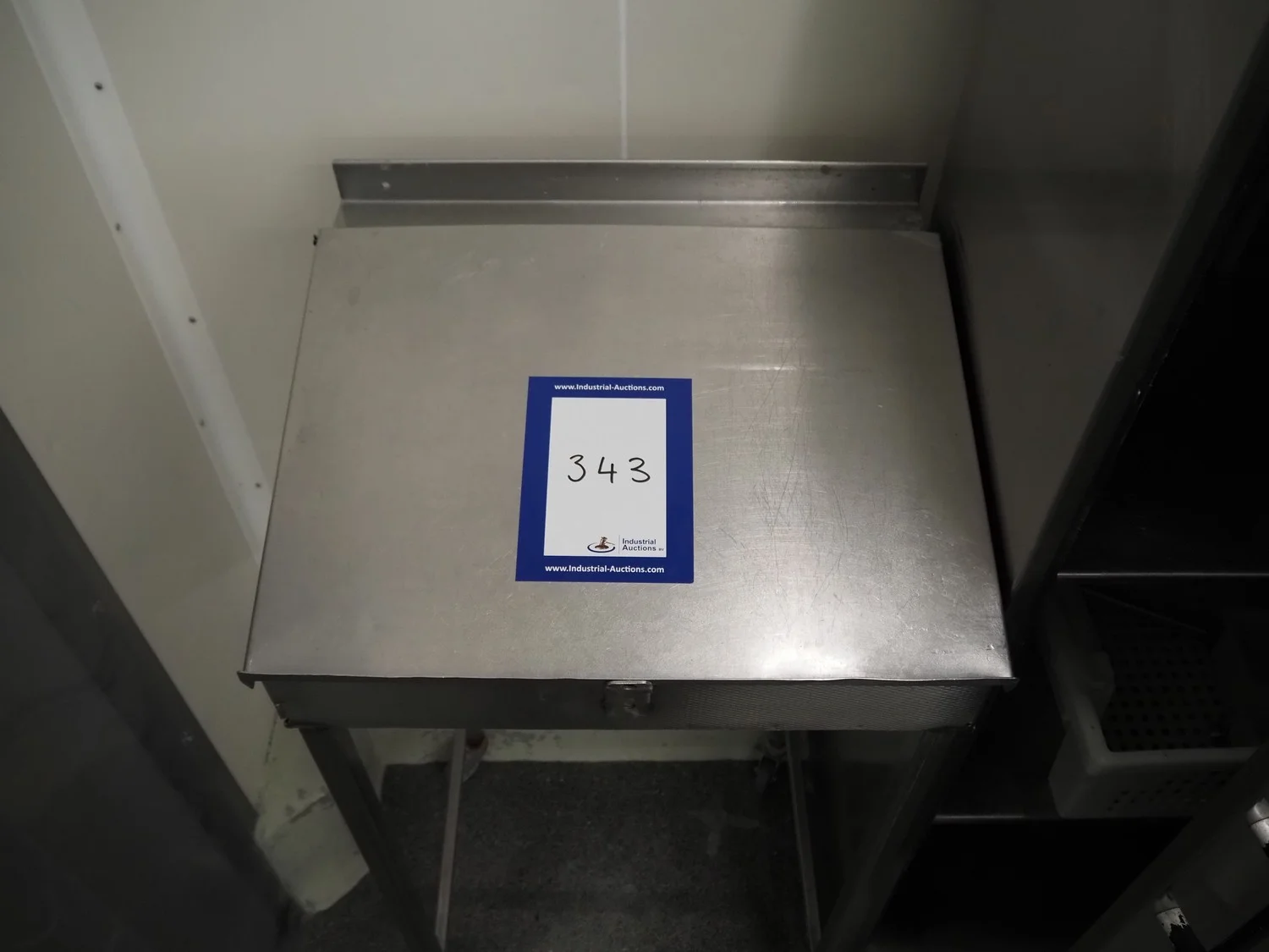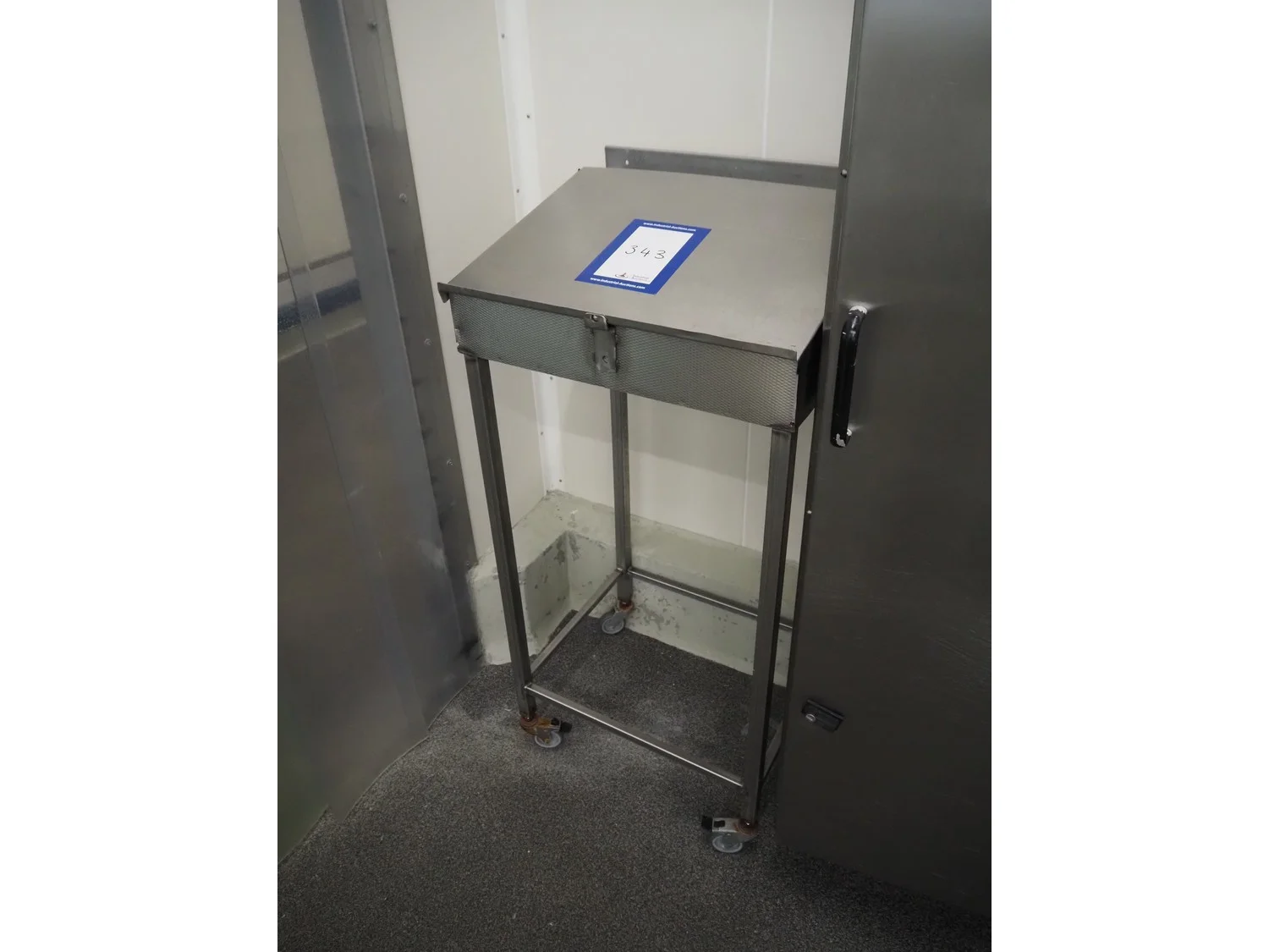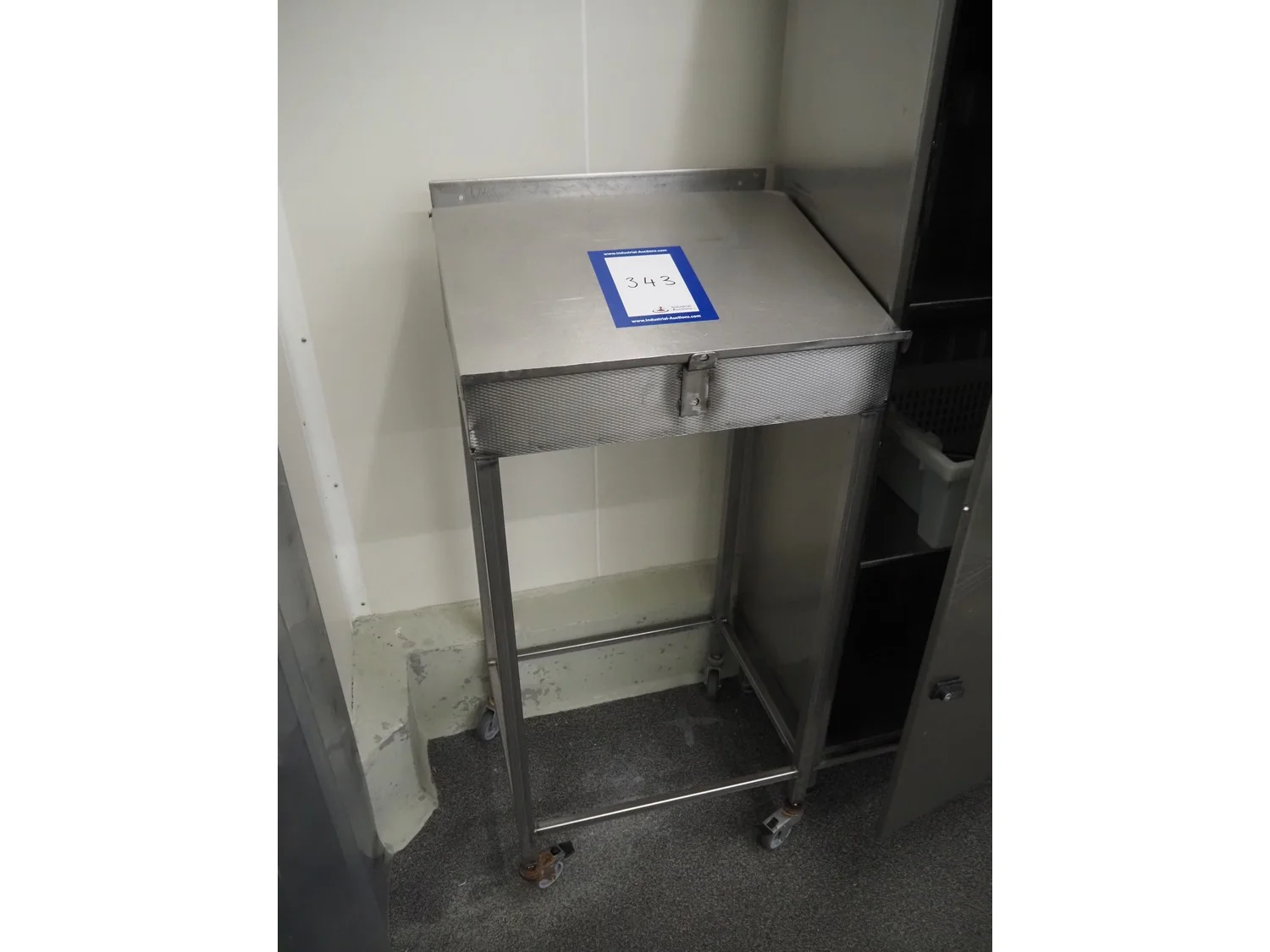 S/s mobile writing desk, dimensions: 610 mm x 550 mm x 1300 mm.