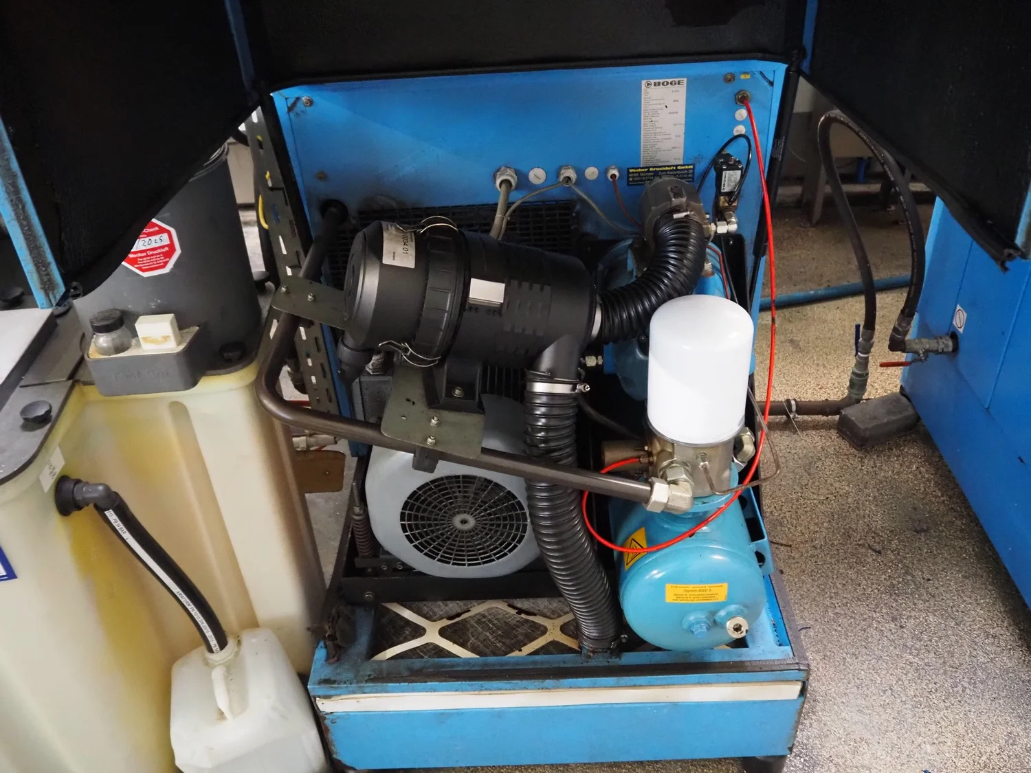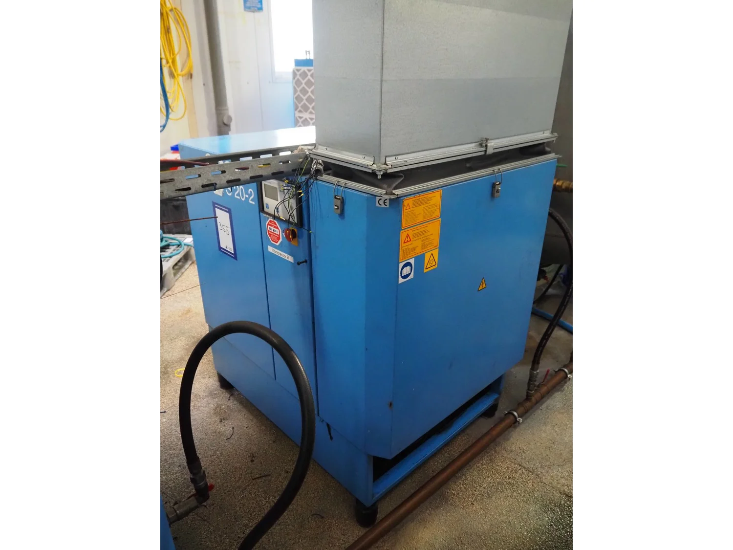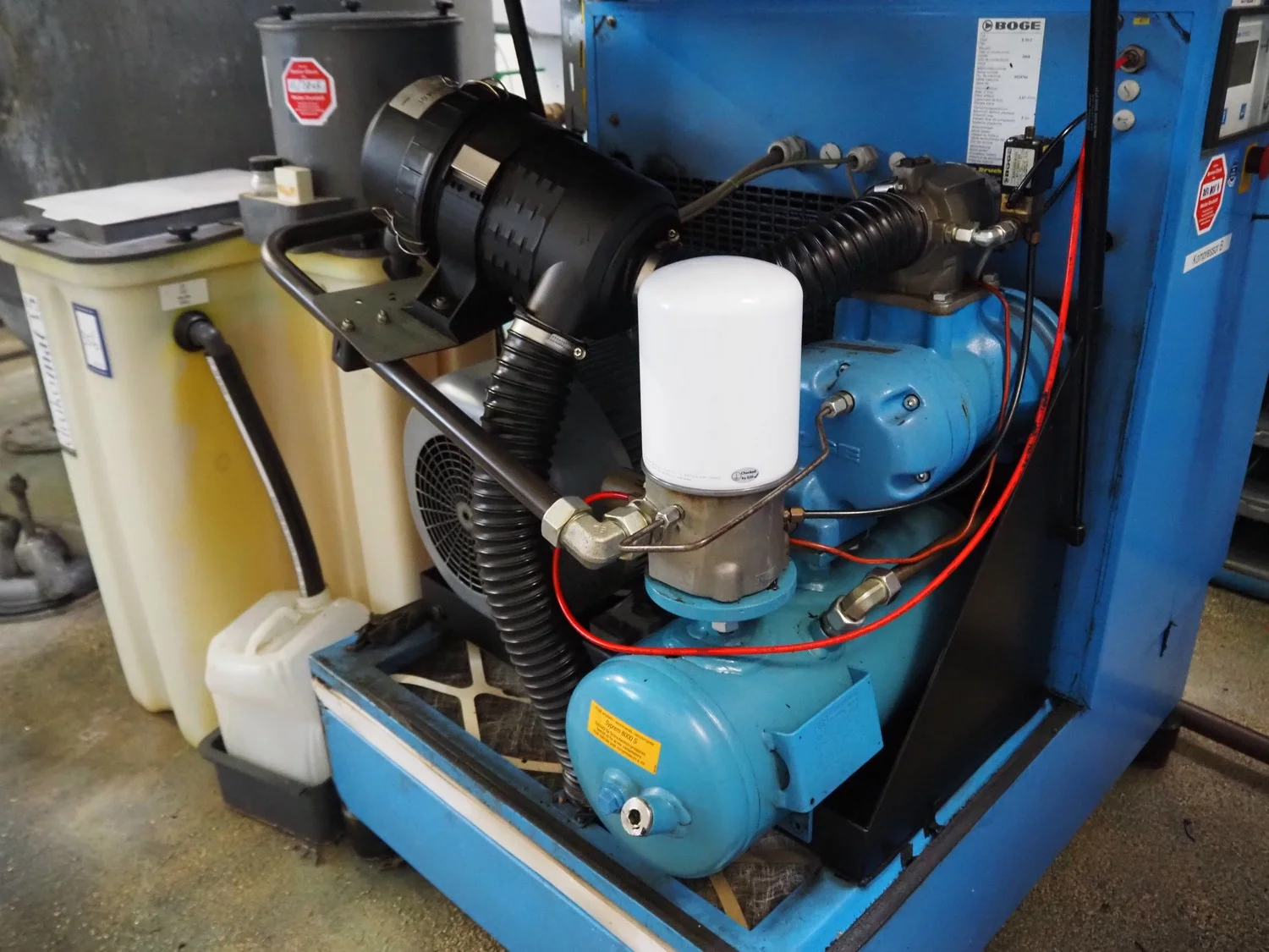 Boge Kompressoren screw air compressor, type: S 20-2, machine number: 5024764, year of construction: 2008, volume: 2.57 m³ / minute, 8 bar, 3000 rates per minute, motor capacity: 15 kW, total dimensions: 1200 mm x 900 mm x 1160 mm.