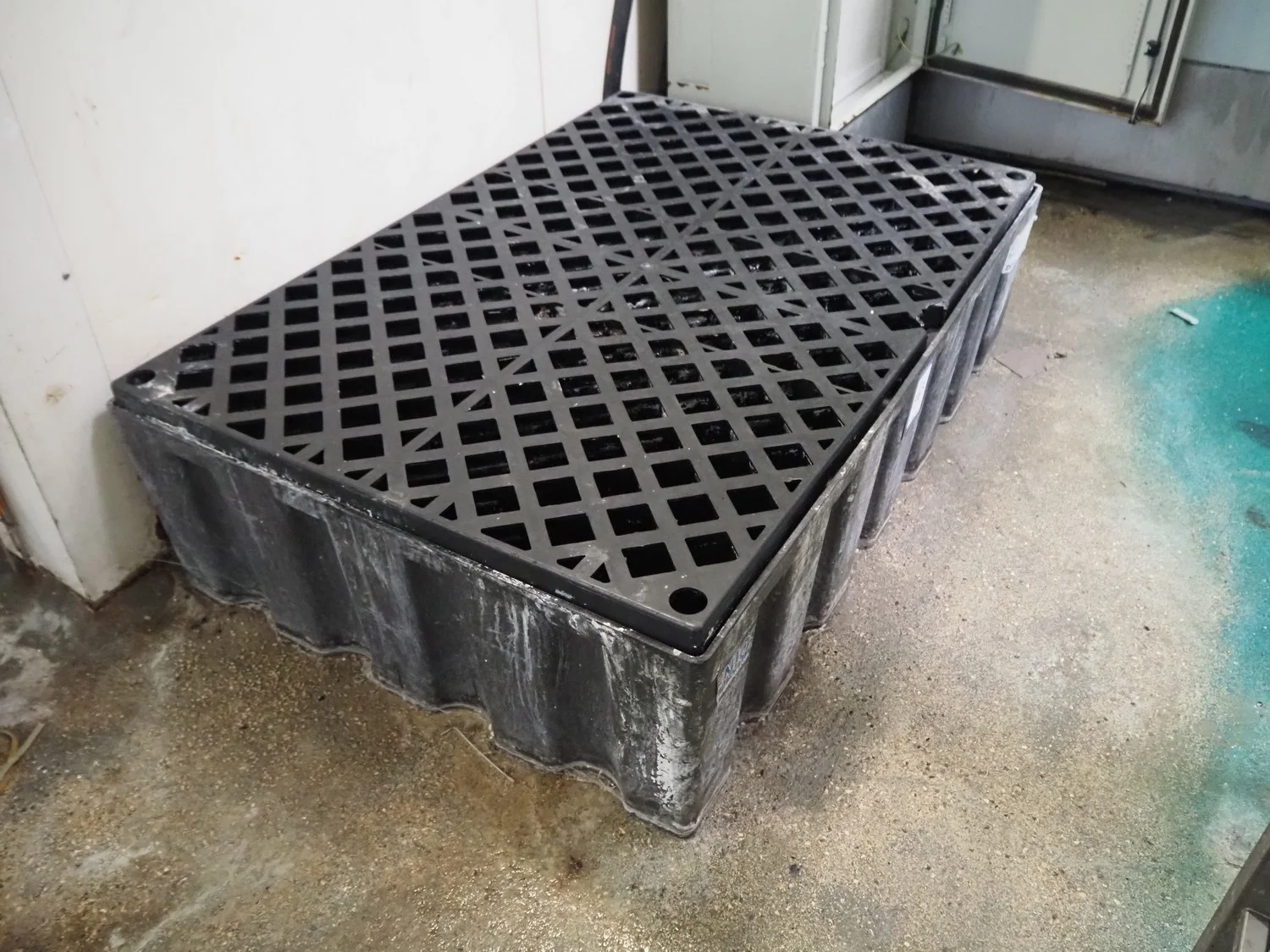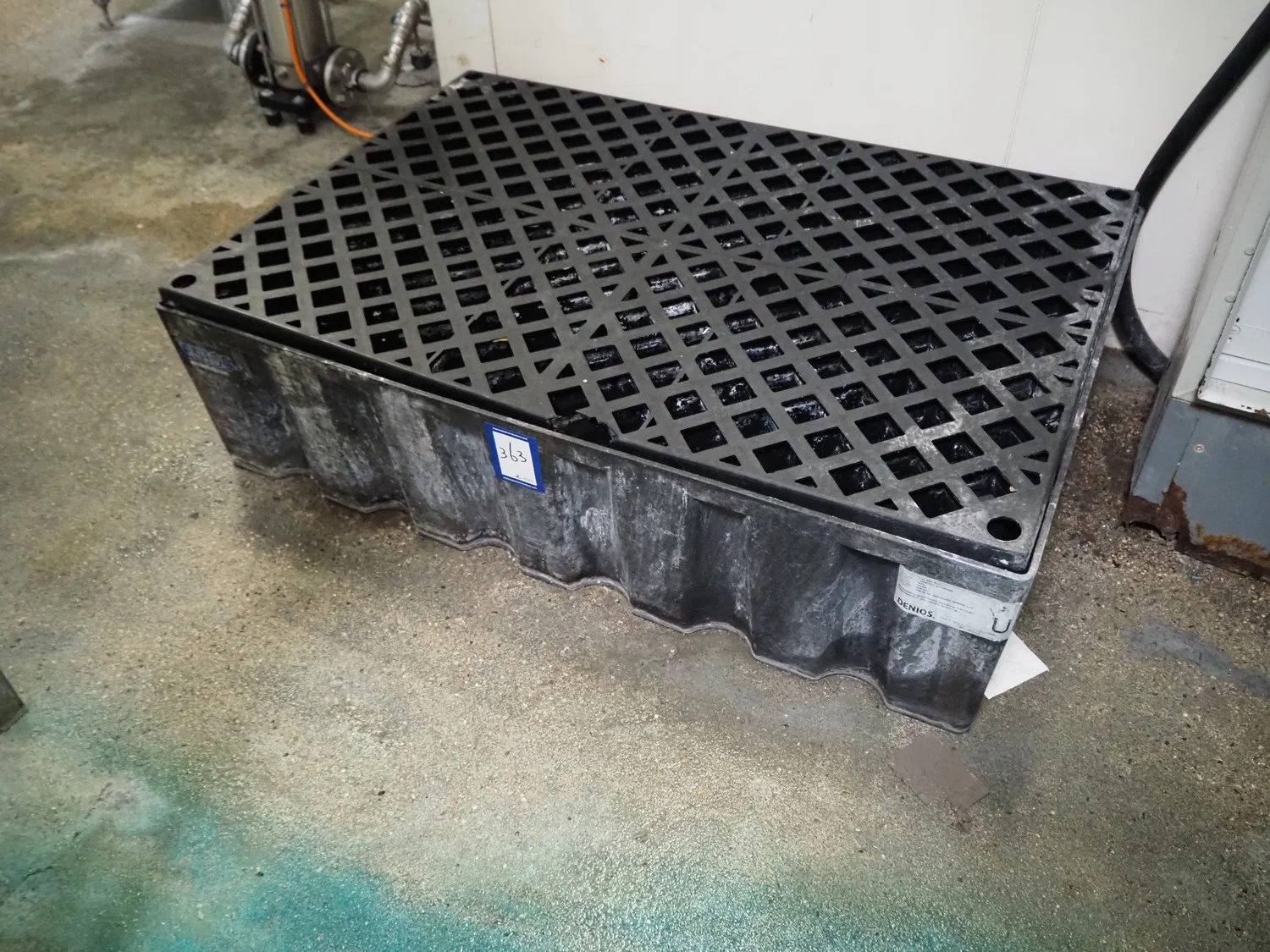Denios plastic drip tray, type: Poly Safe Euro, year of construction: 2010, volume: 200 liter, capacity: 500 kg, dimensions: 1230 mm x 830 mm x 370 mm.