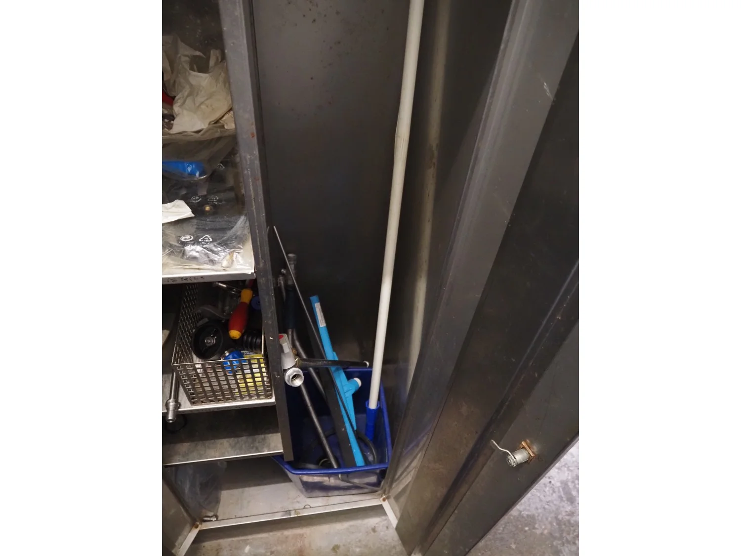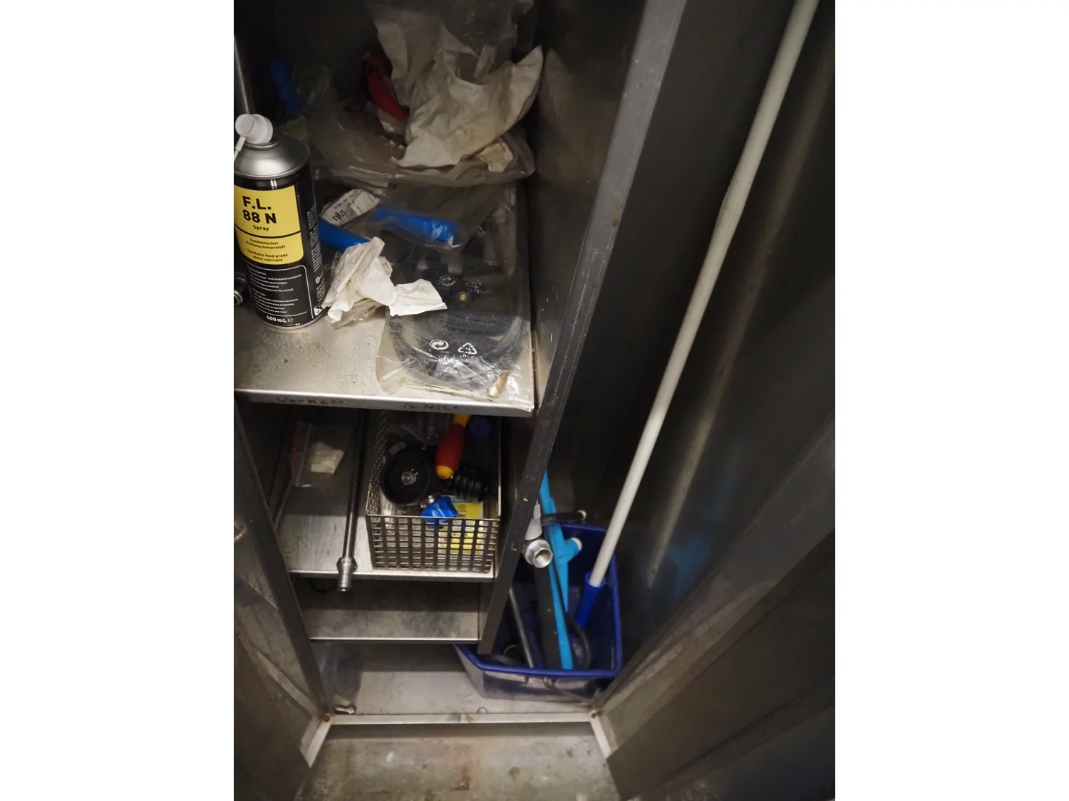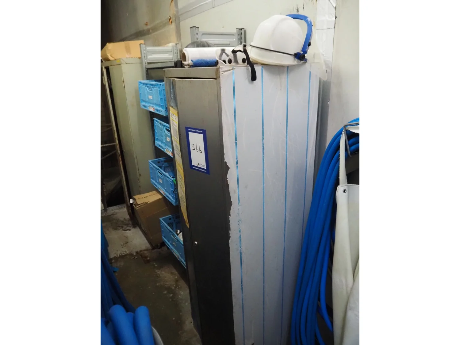S/s cabinet, dimensions: 600 mm x 500 mm x 1800 mm, steel cabinet, dimensions: 1000 mm x 500 mm x 1900 mm and steel rack, 5 floors, dimensions: 1060 mm x 340 mm x 2000 mm. Including content.