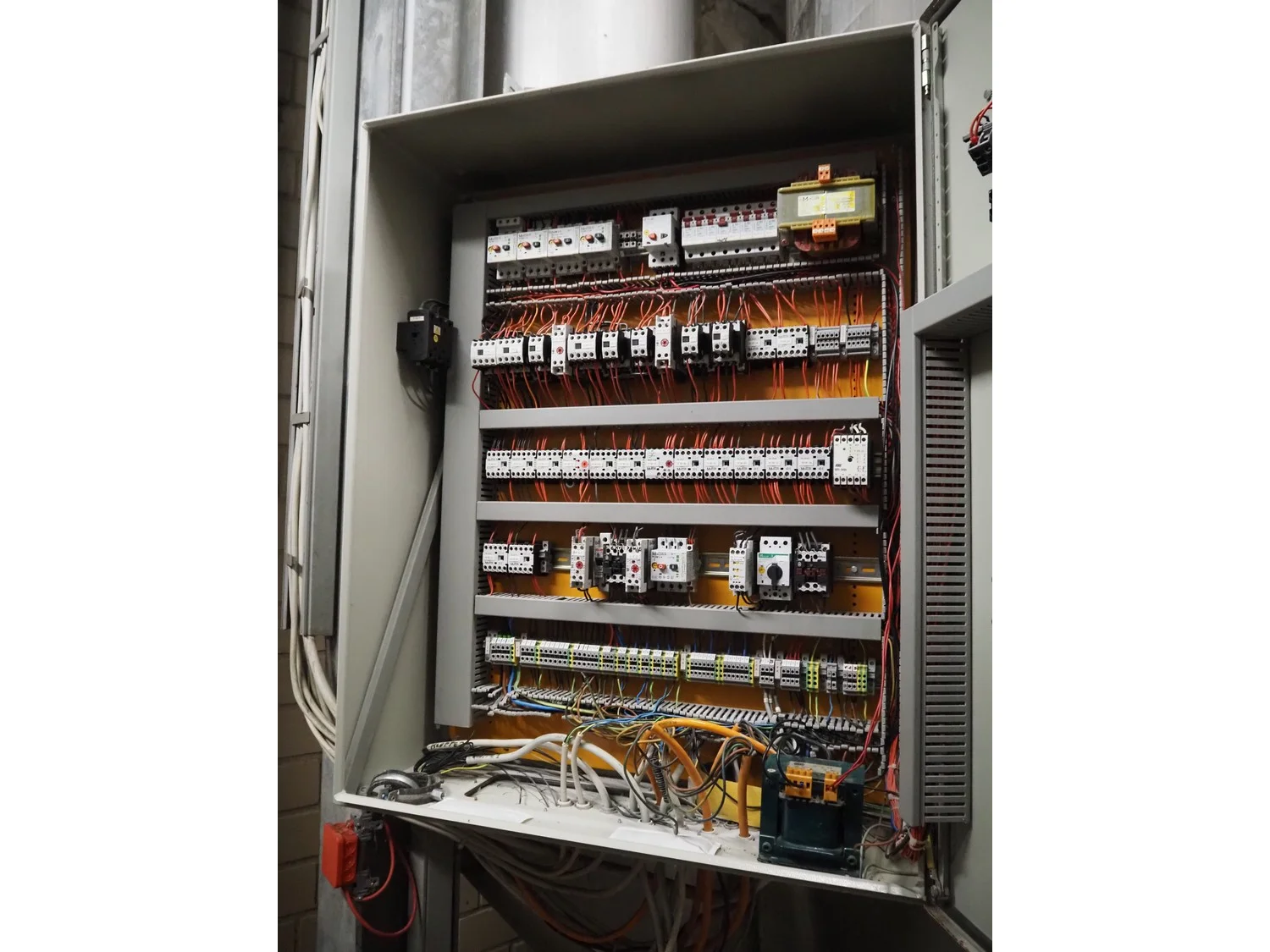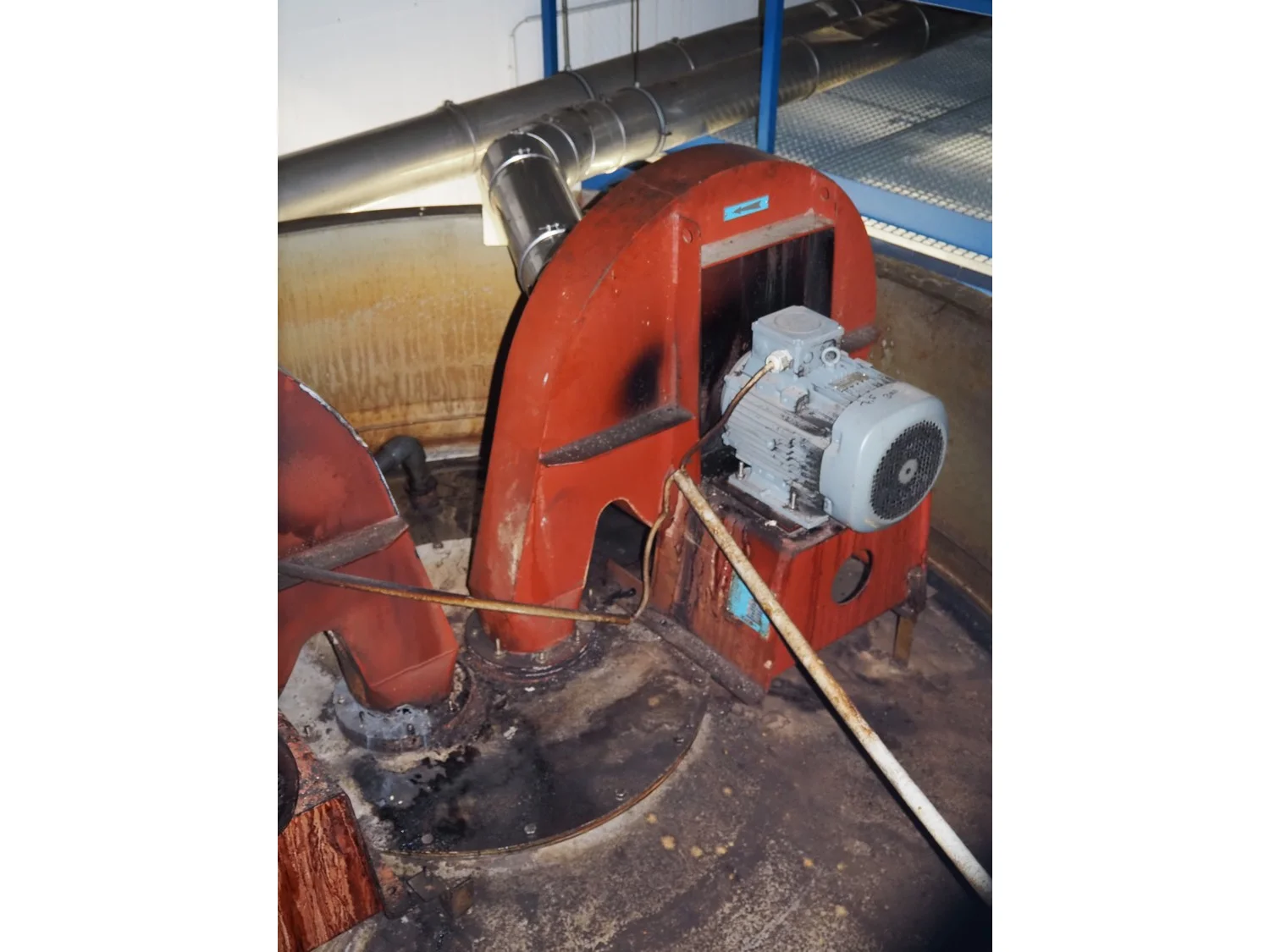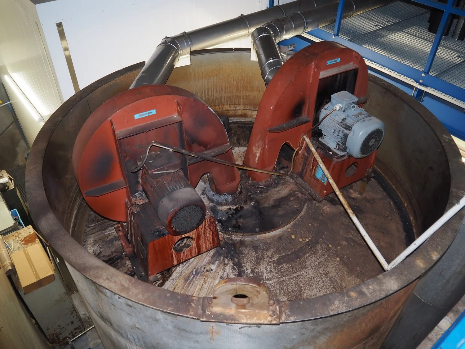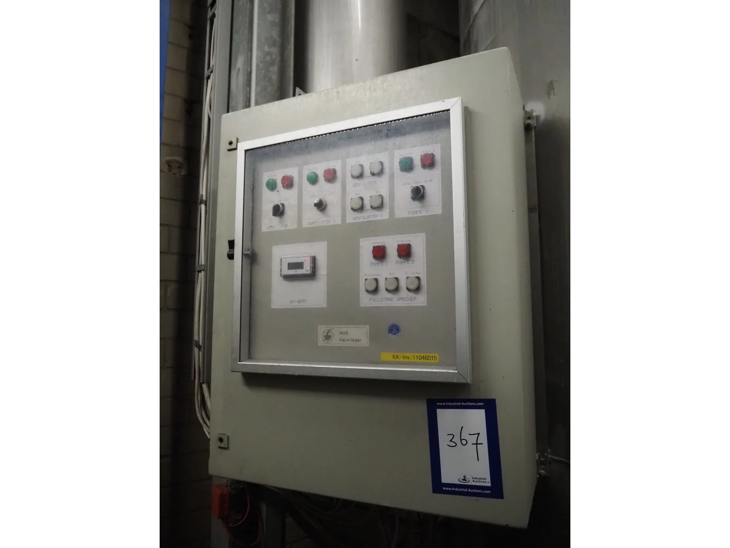 HVS Henniger s/s air filtering tank with 2 blowers and switch cabinet, diameter tank: 2500 mm, height tank: 8150 mm, dimensions switch cabinet: 800 mm x 300 mm x 1000 mm.