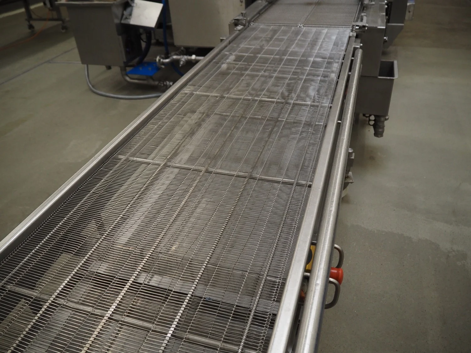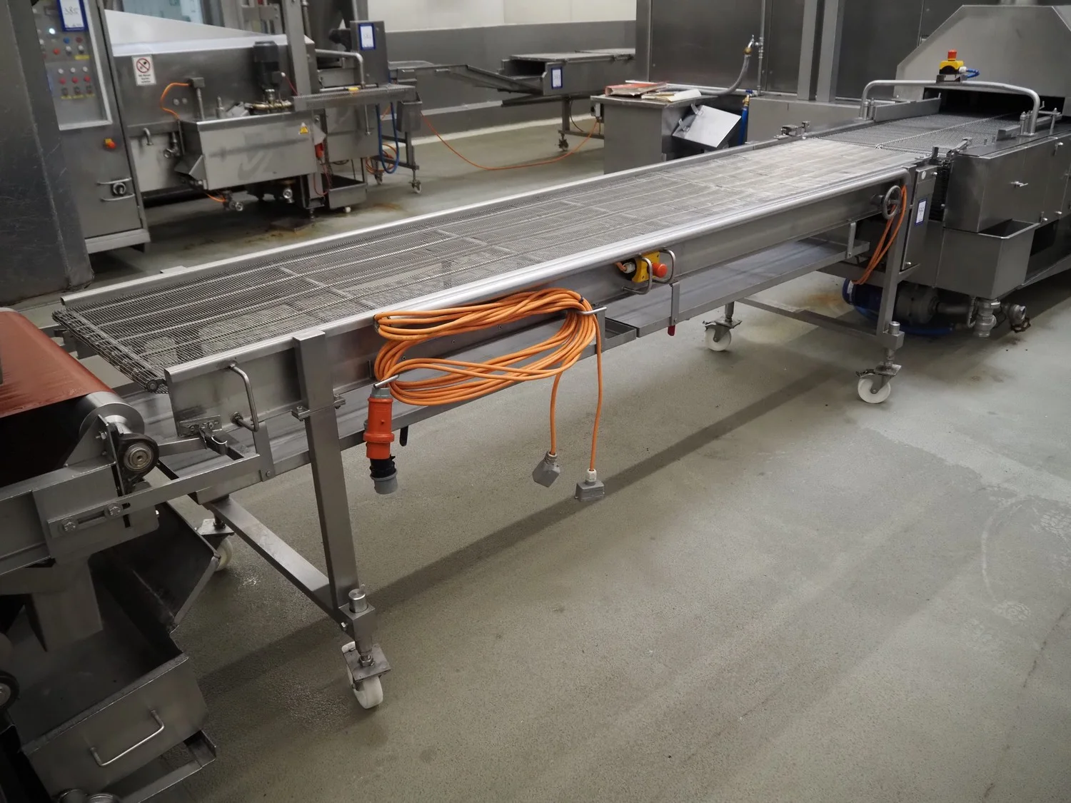 Koppens Machinefabriek B.V. mobile mesh belt, type: TG 3250/600R, machine number: 1078, 380 V, 3 Ph, 50 Hz, 0.18 kW, 120 kg, s/s mesh belt, belt width: 600 mm, total dimensions: 3150 mm x 800 mm x 1000 mm.