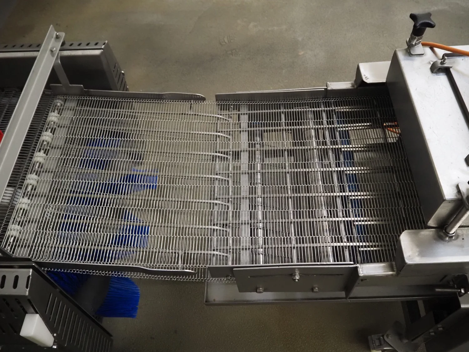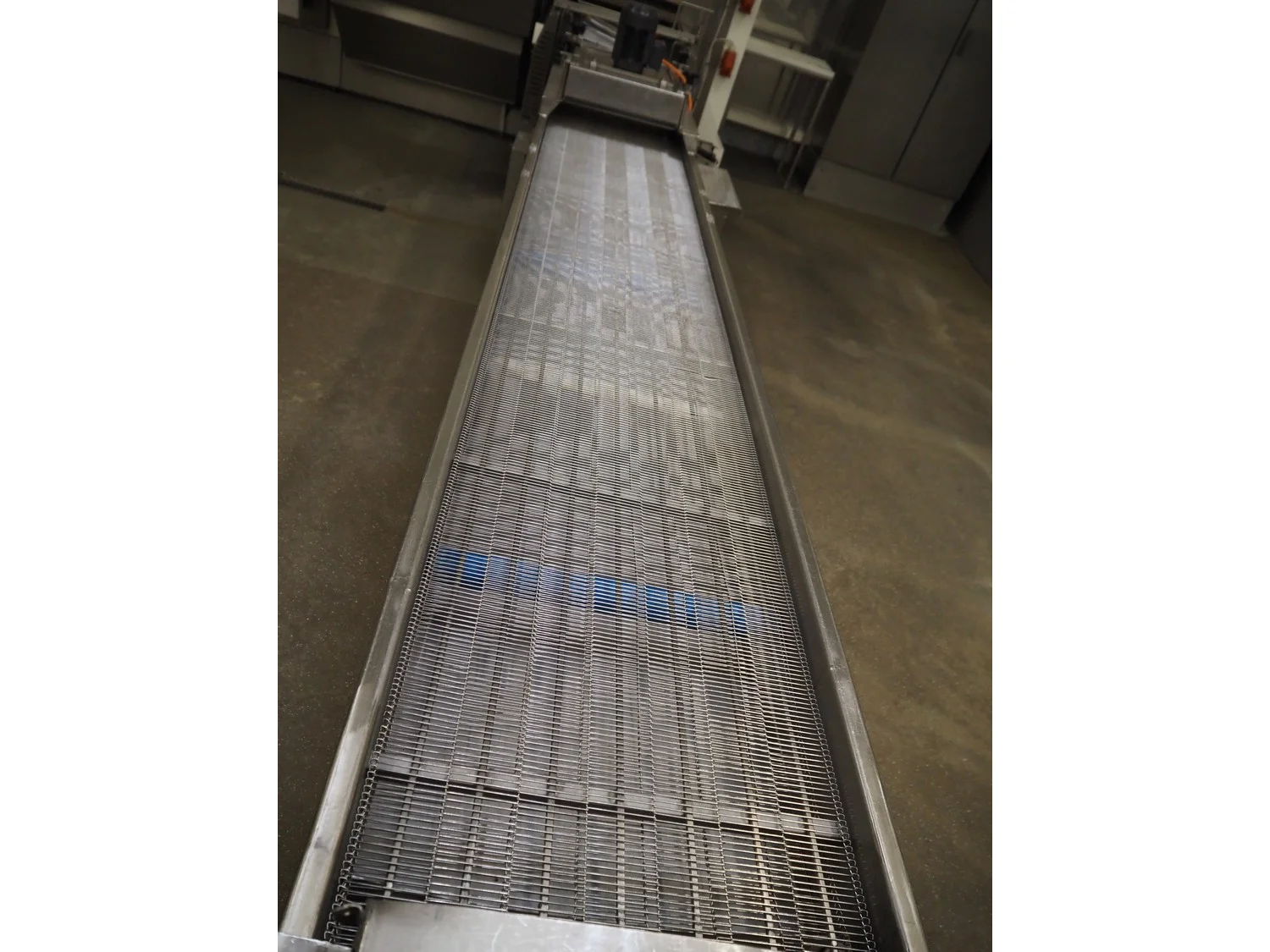 S/s mobile mesh belt with dryer, belt width: 500 mm, total dimensions: 4200 mm x 800 mm x 1250 mm.