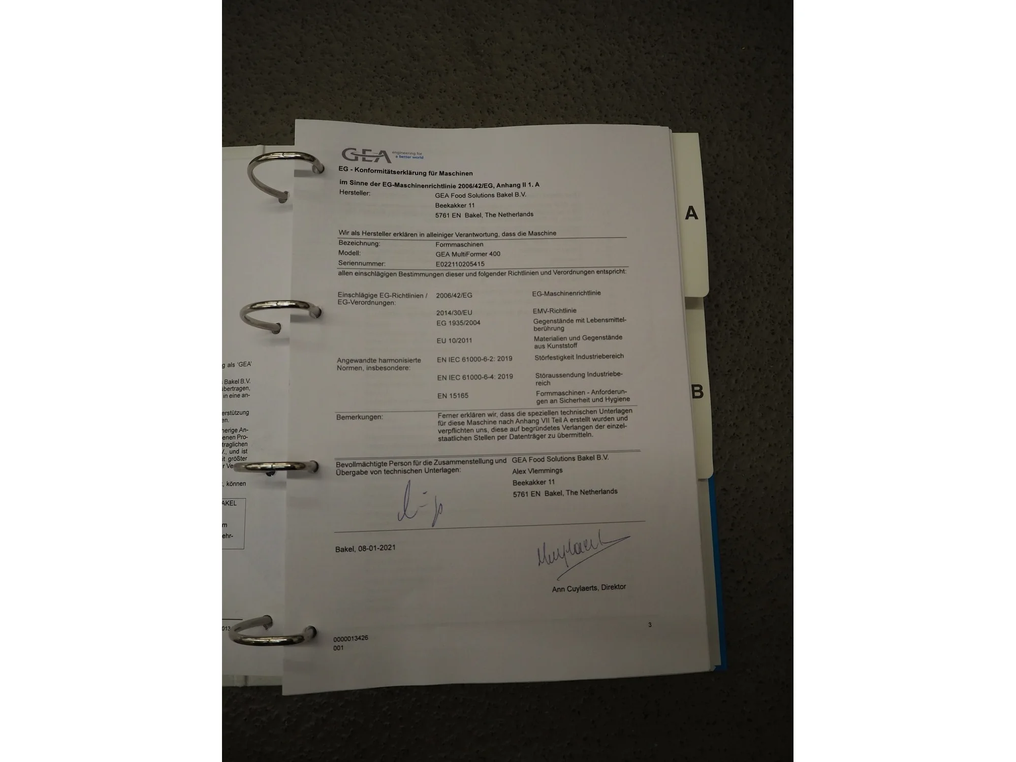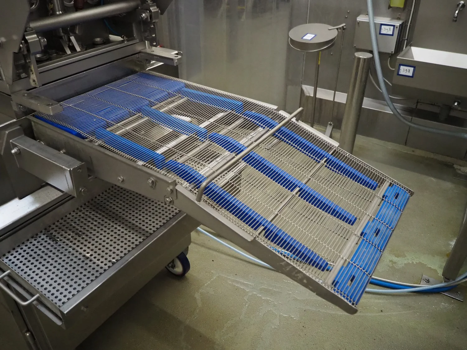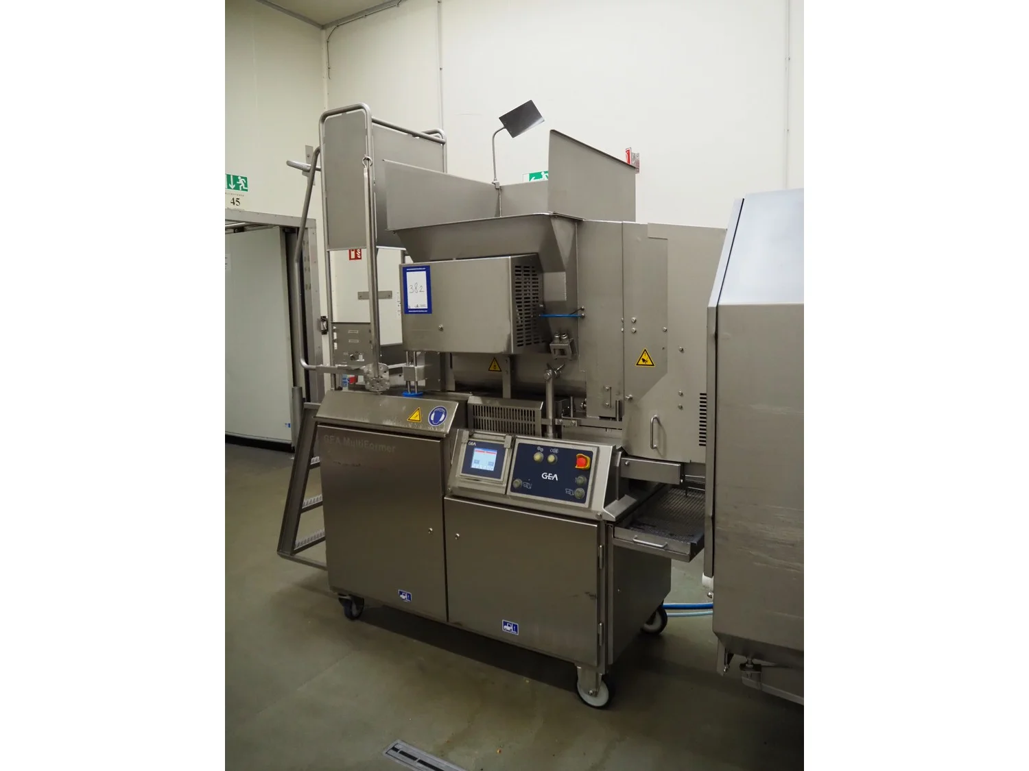 GEA Food Solutions Bakel B.V. forming machine, type: GEA MultiFormer 400, machine number: E022110205415, year of construction: 2021, 380-415 V, 3 Ph, 50 Hz, 15.4 A, 8 kW, s/s mesh belt, belt width: 400 mm, dimensions forming machine: 3100 mm x 1000 mm x 2700 mm, including 2 pallets with forming plates, s/s rack with 2 additional outfeed belts, belt widths: 400 mm, dimensions rack: 1350 mm x 600 mm x 2100 mm, GEA tool trolley, dimensions: 1200 mm x 700 mm x 950 mm.