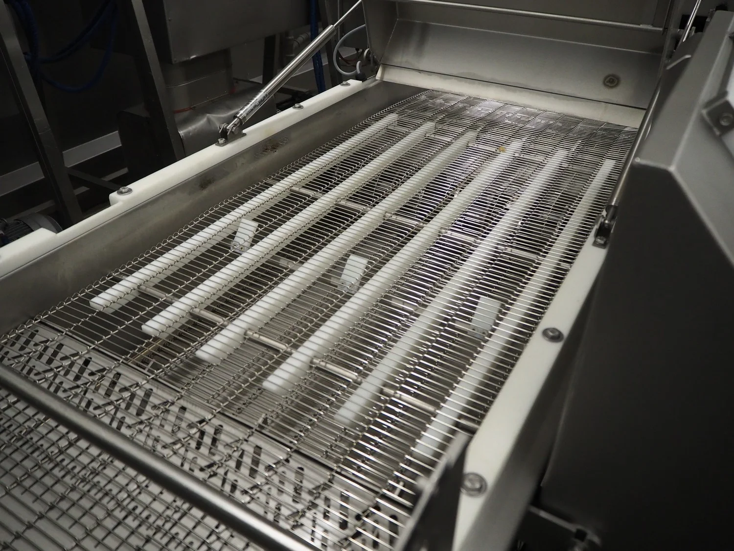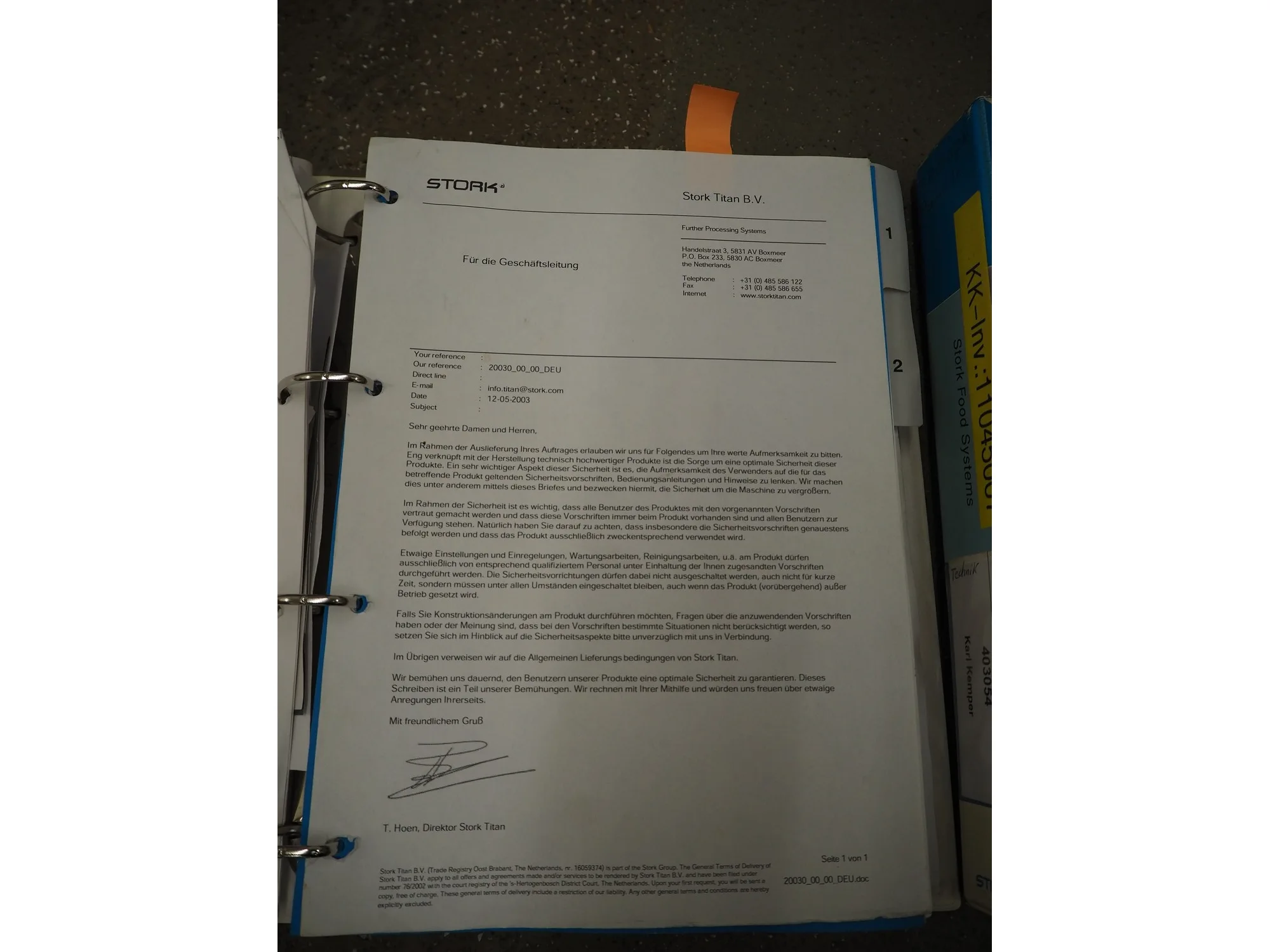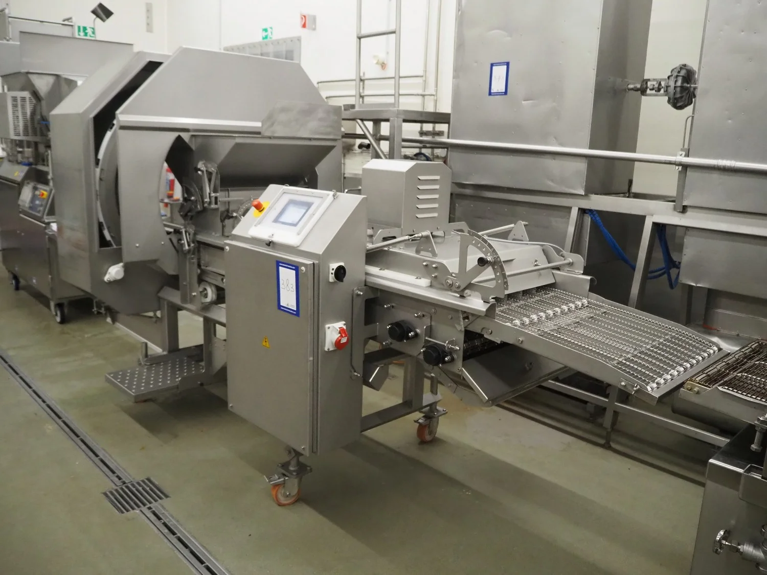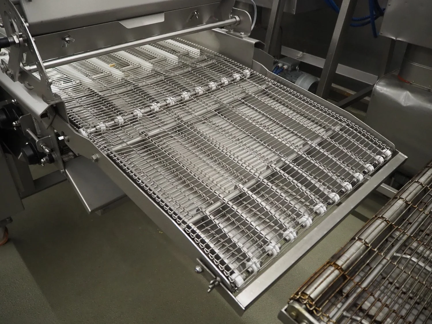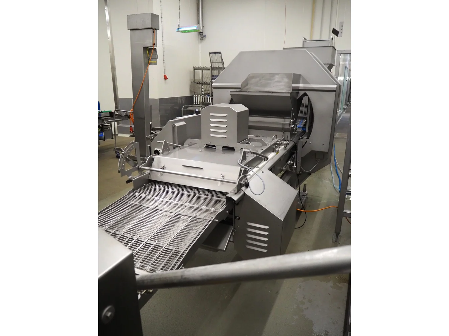 Stork Titan B.V. mobile breading machine, machine: RotoCrumb, model: TRC 630 TD 2112, type: 4780626AA, serial number: 10061097, year of construction: 2007, s/s mesh belt, belt width: 630 mm, total dimensions: 3600 mm x 1600 mm x 2100 mm.