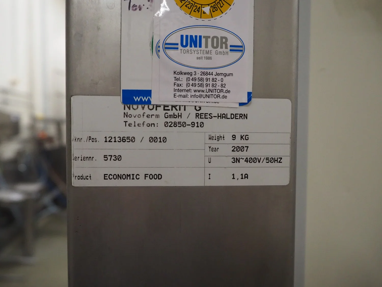 Novoferm GmbH electric shutter door, product: Economic Food, serial number: 5730, year of construction: 2007, 400 V, 3 Ph, 50 Hz, 1.1 A, dimensions door: 1700 mm x 3000 mm.