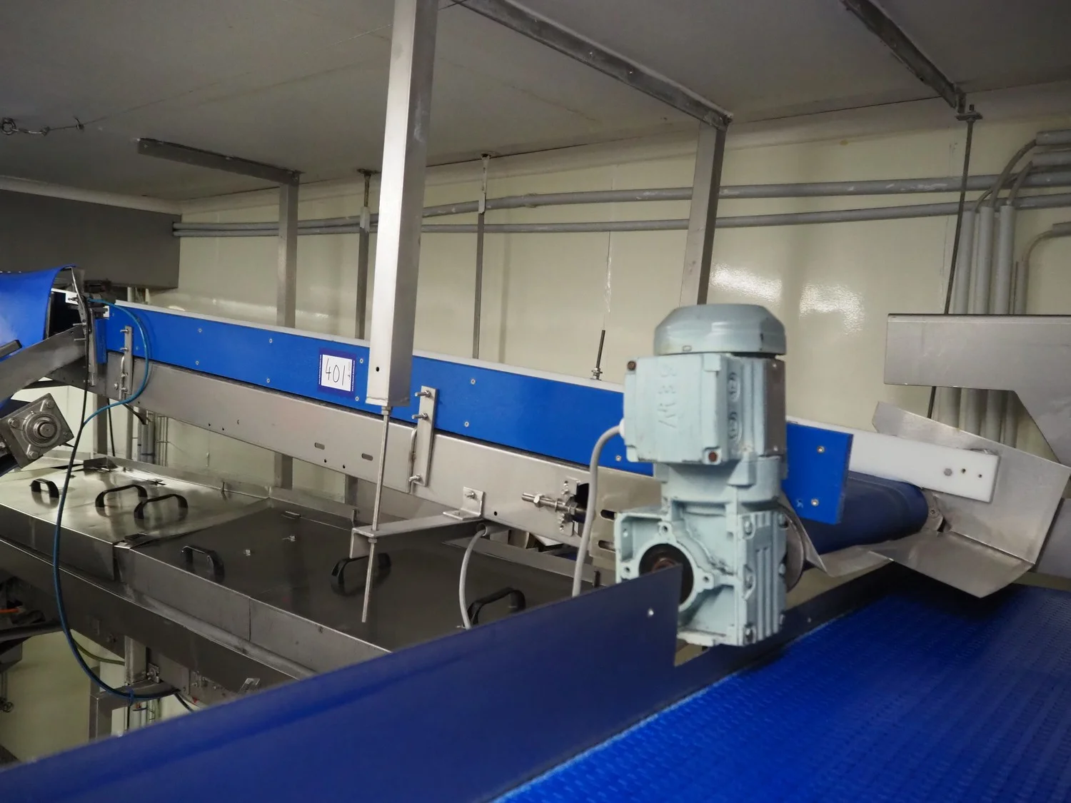 Transport belt, s/s frame, plastic belt, belt width: 500 mm, total dimensions: 4200 mm x 750 mm x 400 mm.