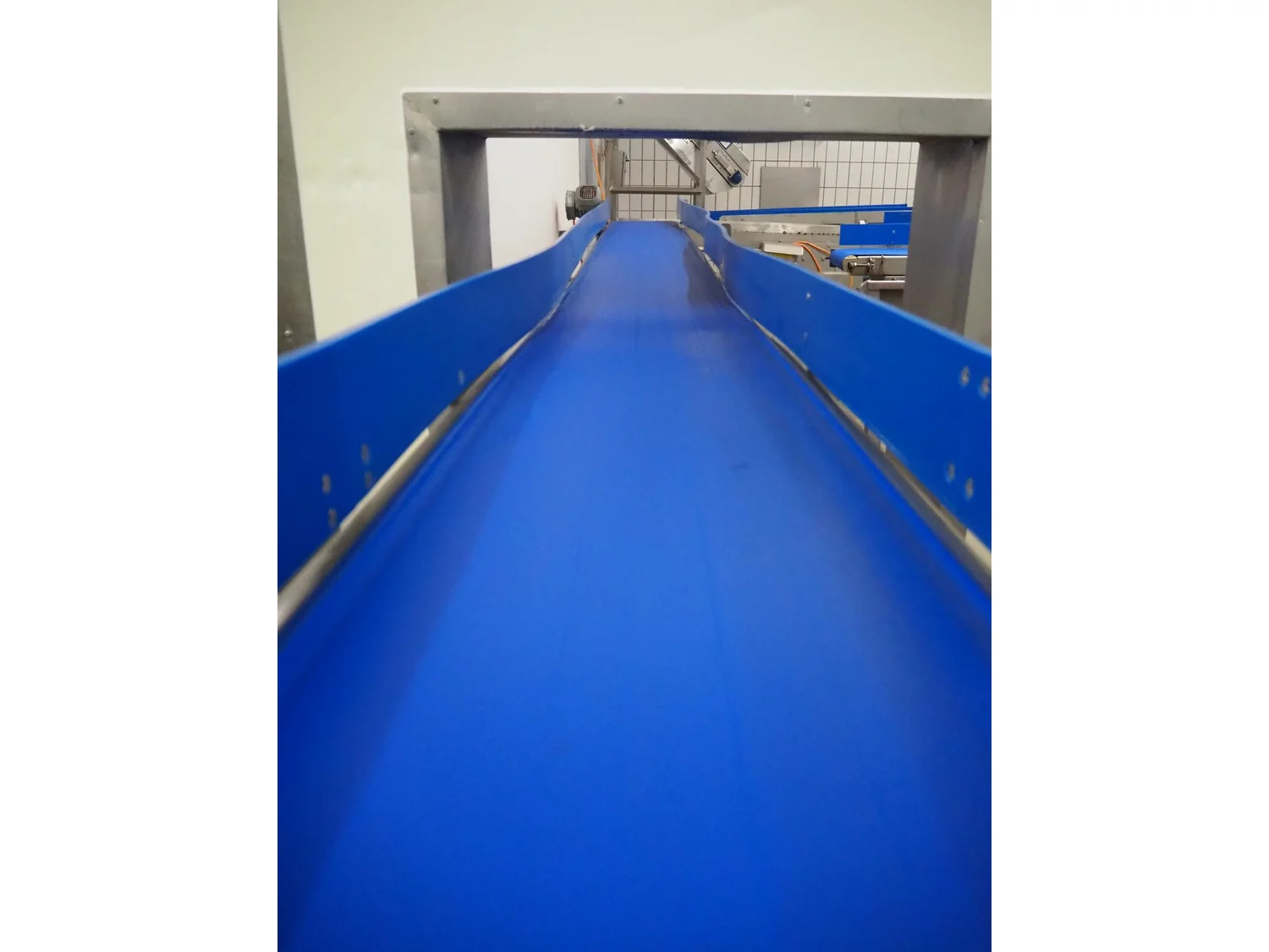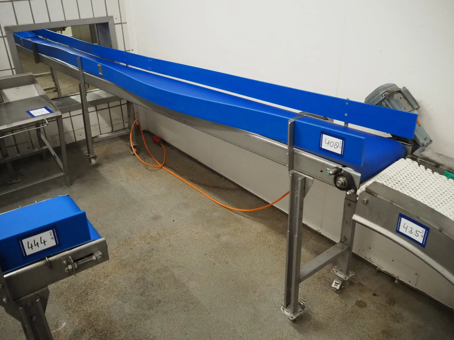 Mobile transport belt, s/s frame, plastic belt, belt width: 340 mm, total dimensions: 5160 mm x 480 mm x 1000 mm.
