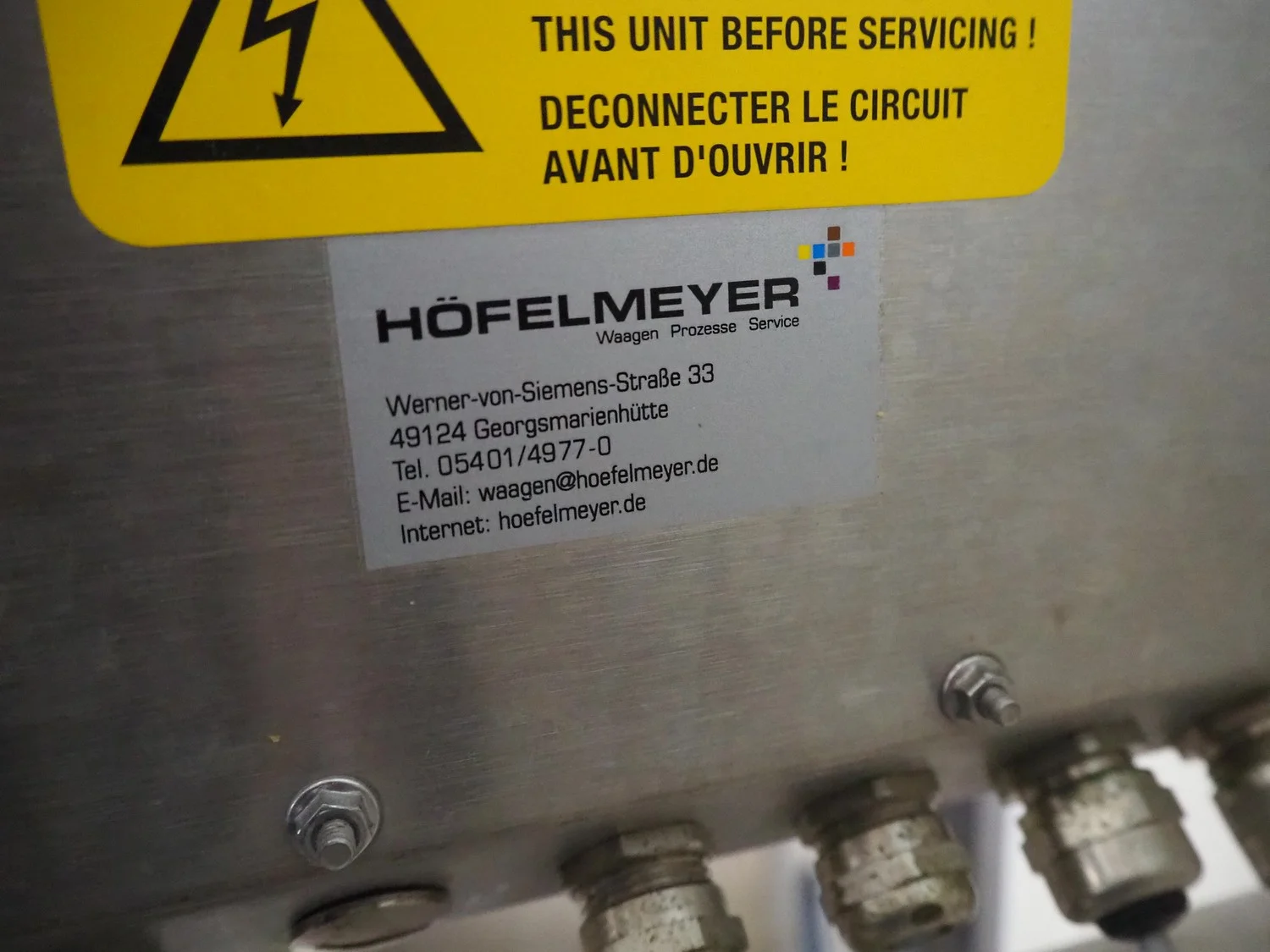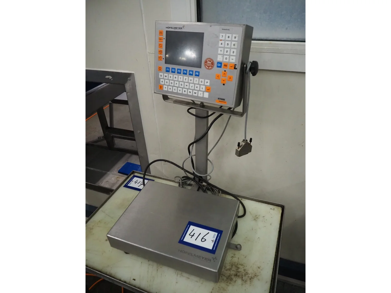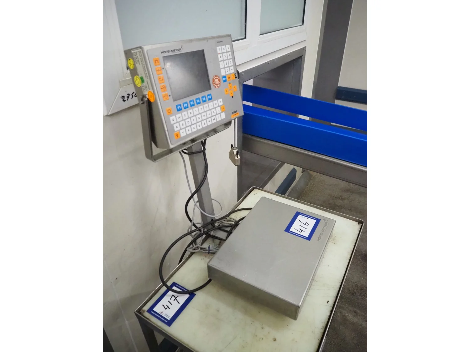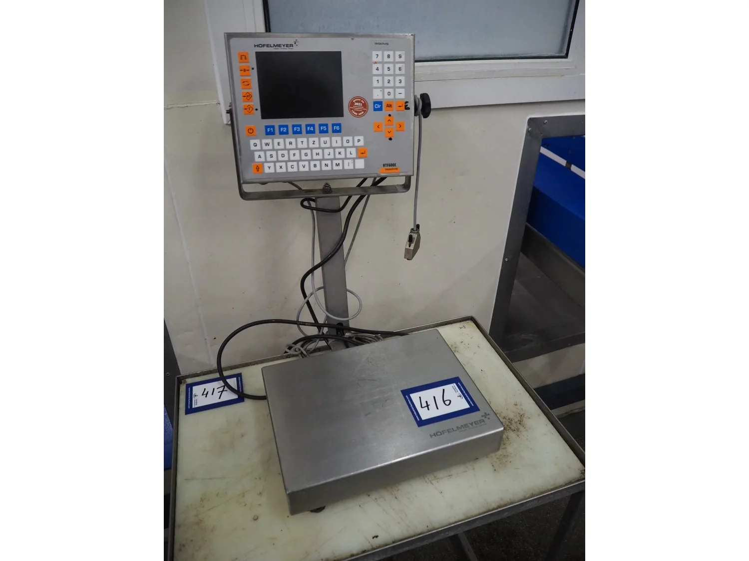 Höfelmeyer weighing scale, type: HTF600E, serial number: 1301092, 230 V, 50/60 Hz, dimensions scale: 320 mm x 240 mm, total dimensions: 350 mm x 390 mm x 560 mm.