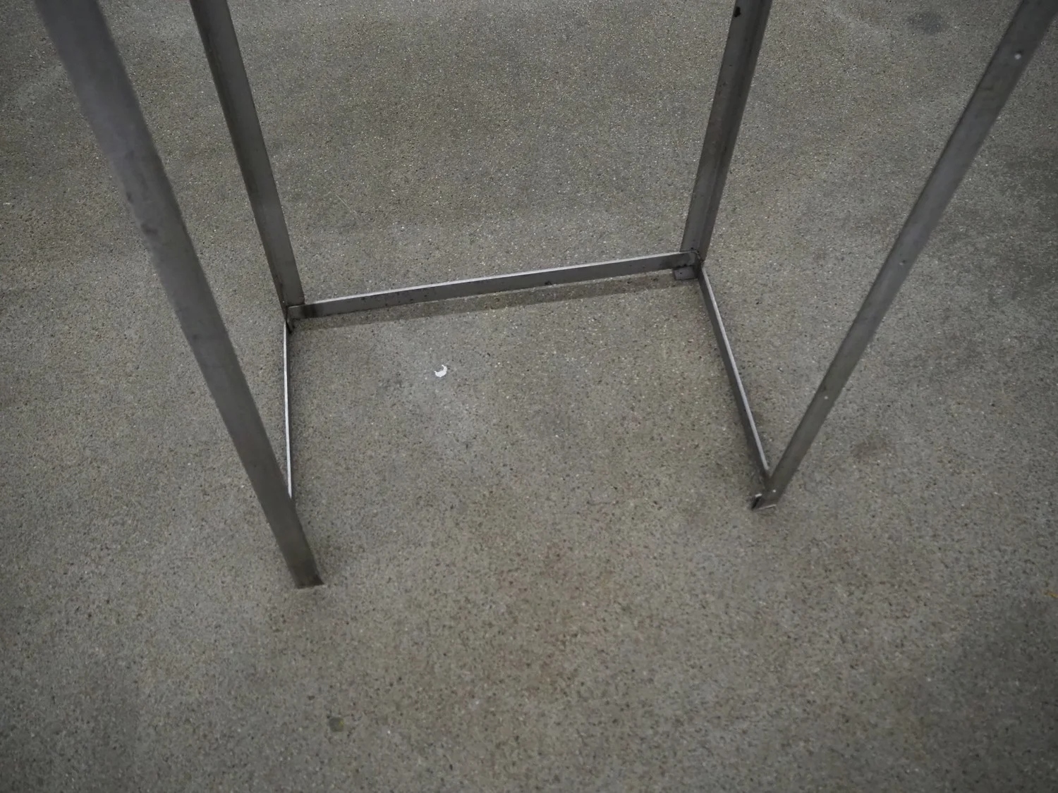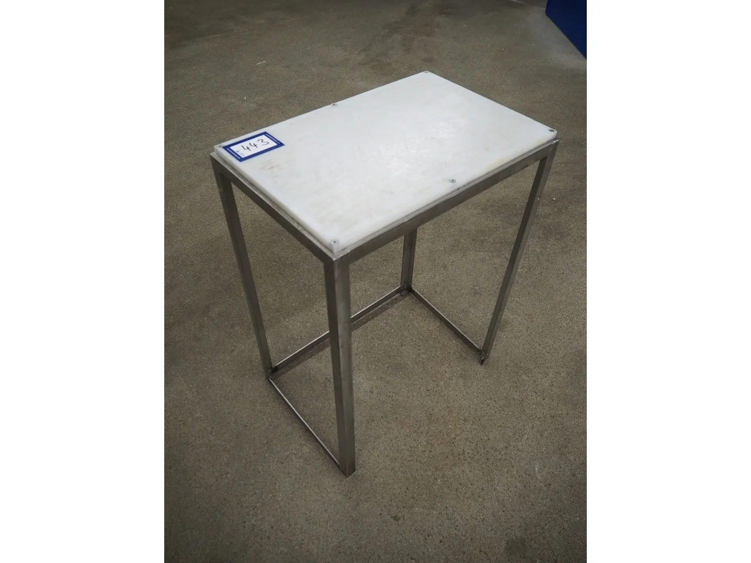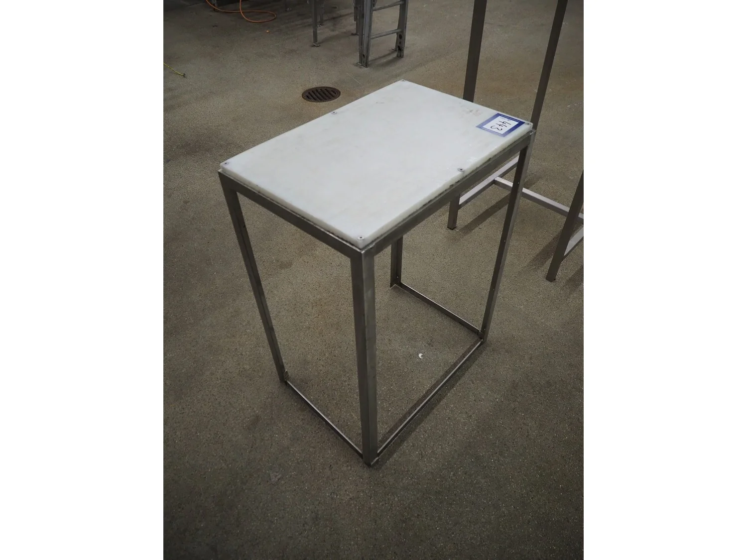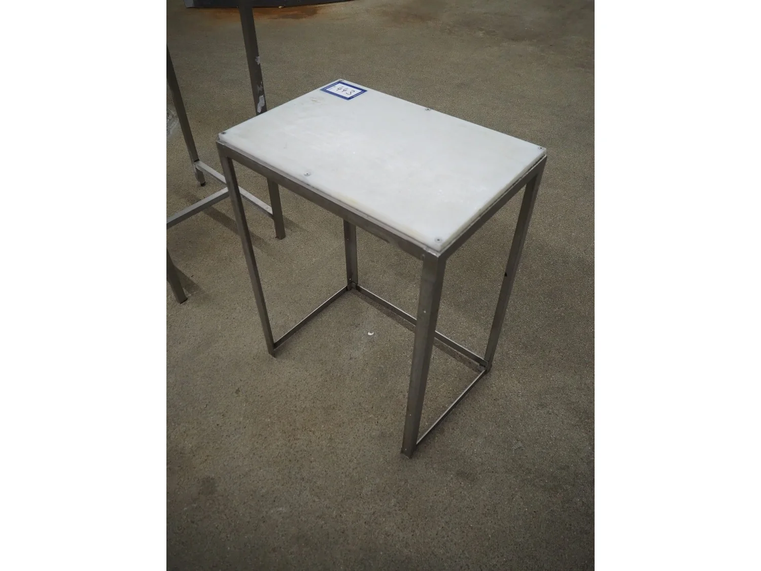 S/s table with plastic worktop, dimensions: 620 mm x 420 mm x 820 mm.