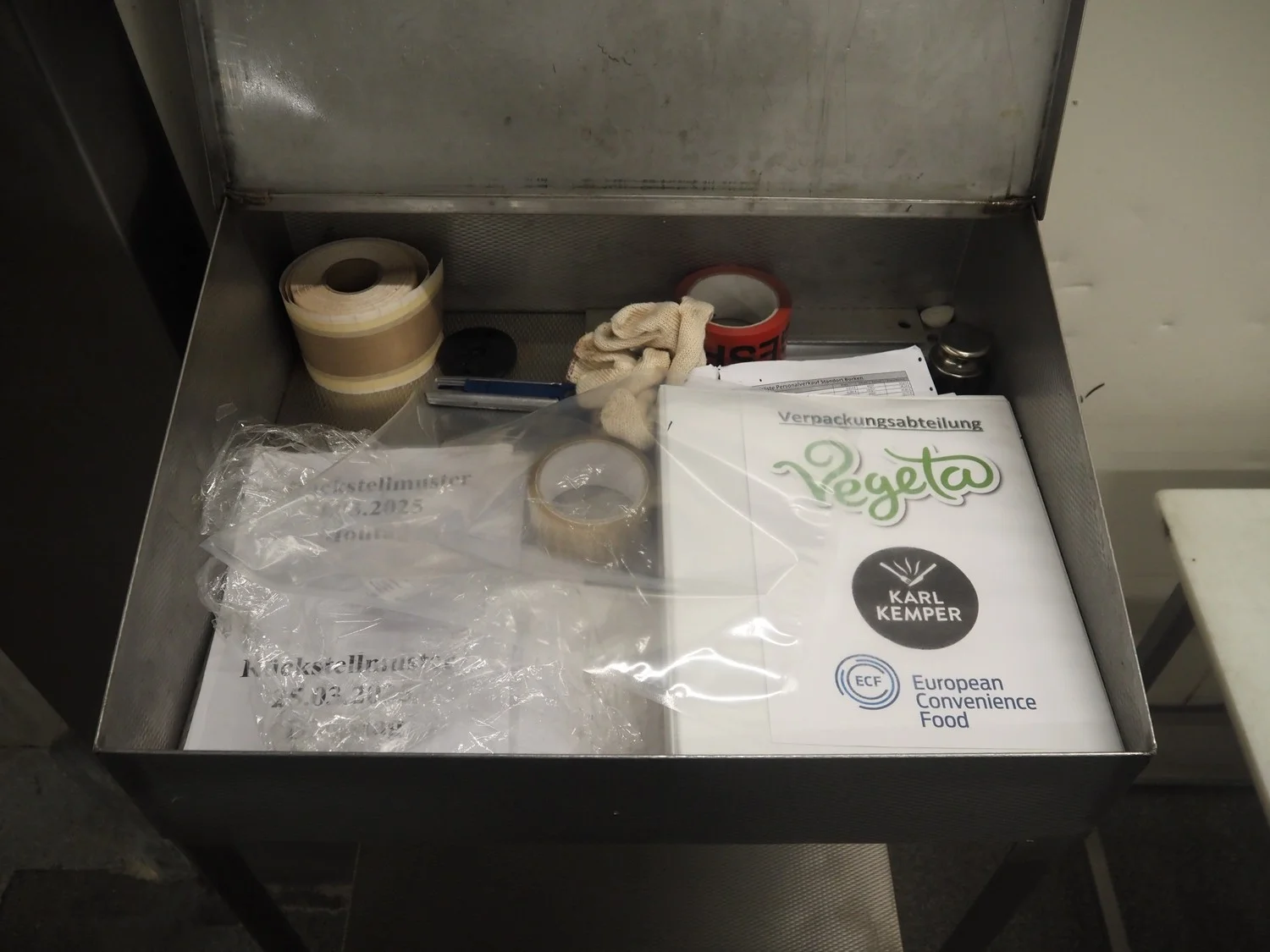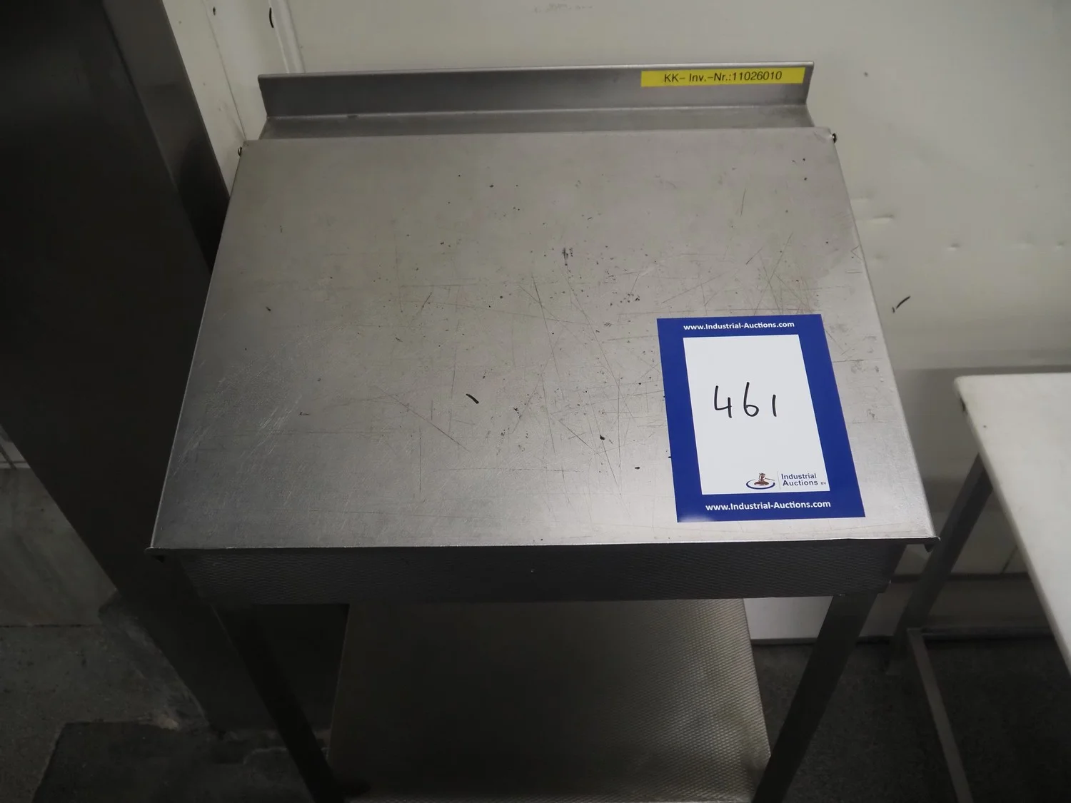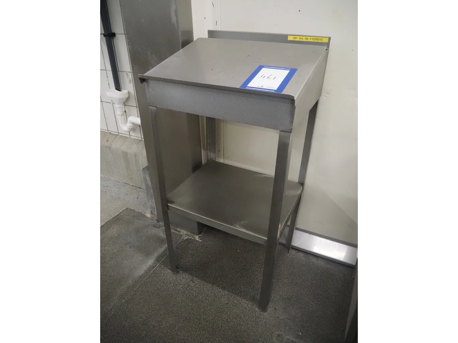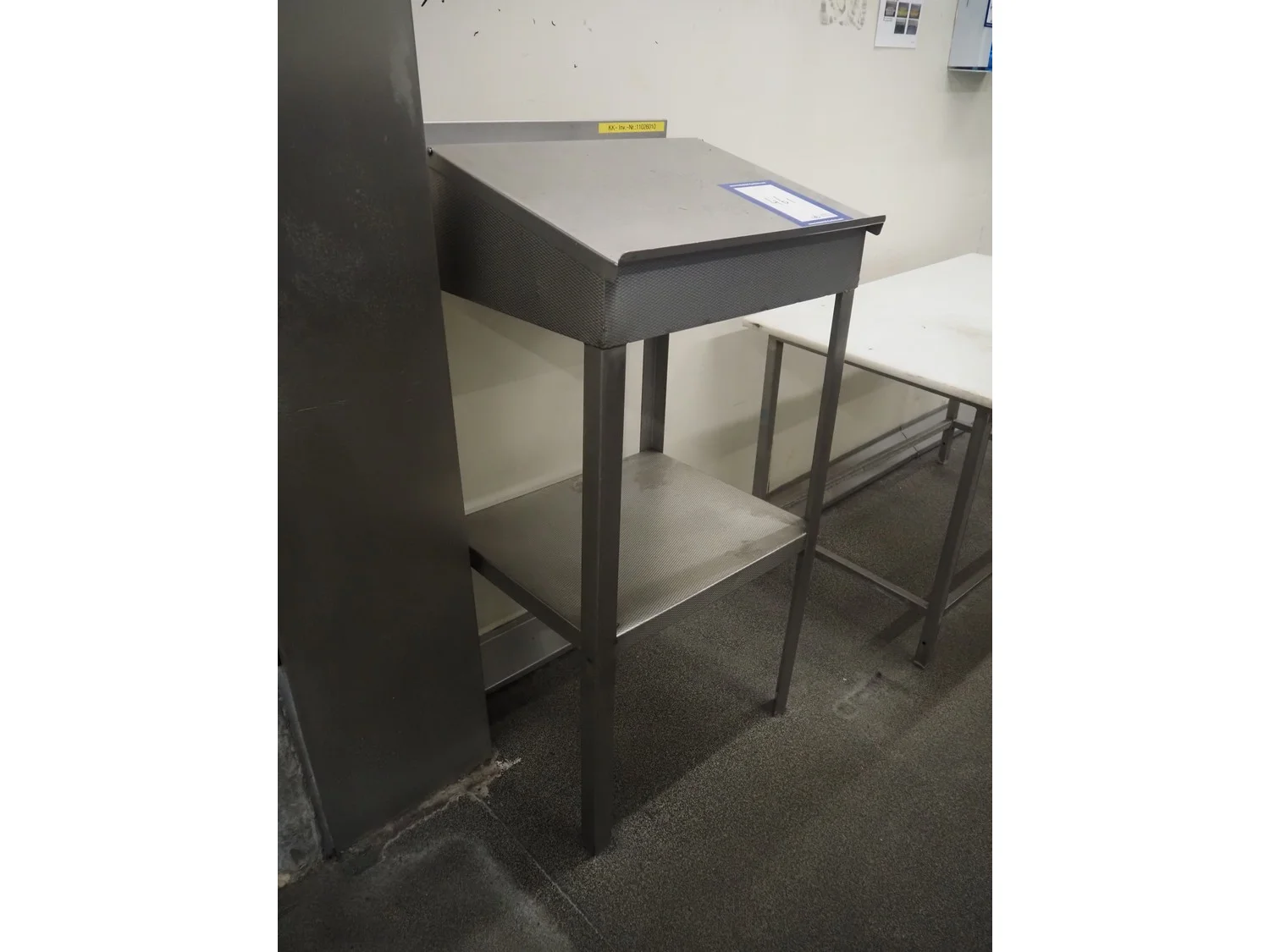 S/s writing desk, inside dimensions: 500 mm x 600 mm x 180 mm, total dimensions: 540 mm x 610 mm x 1235 mm. Including content.