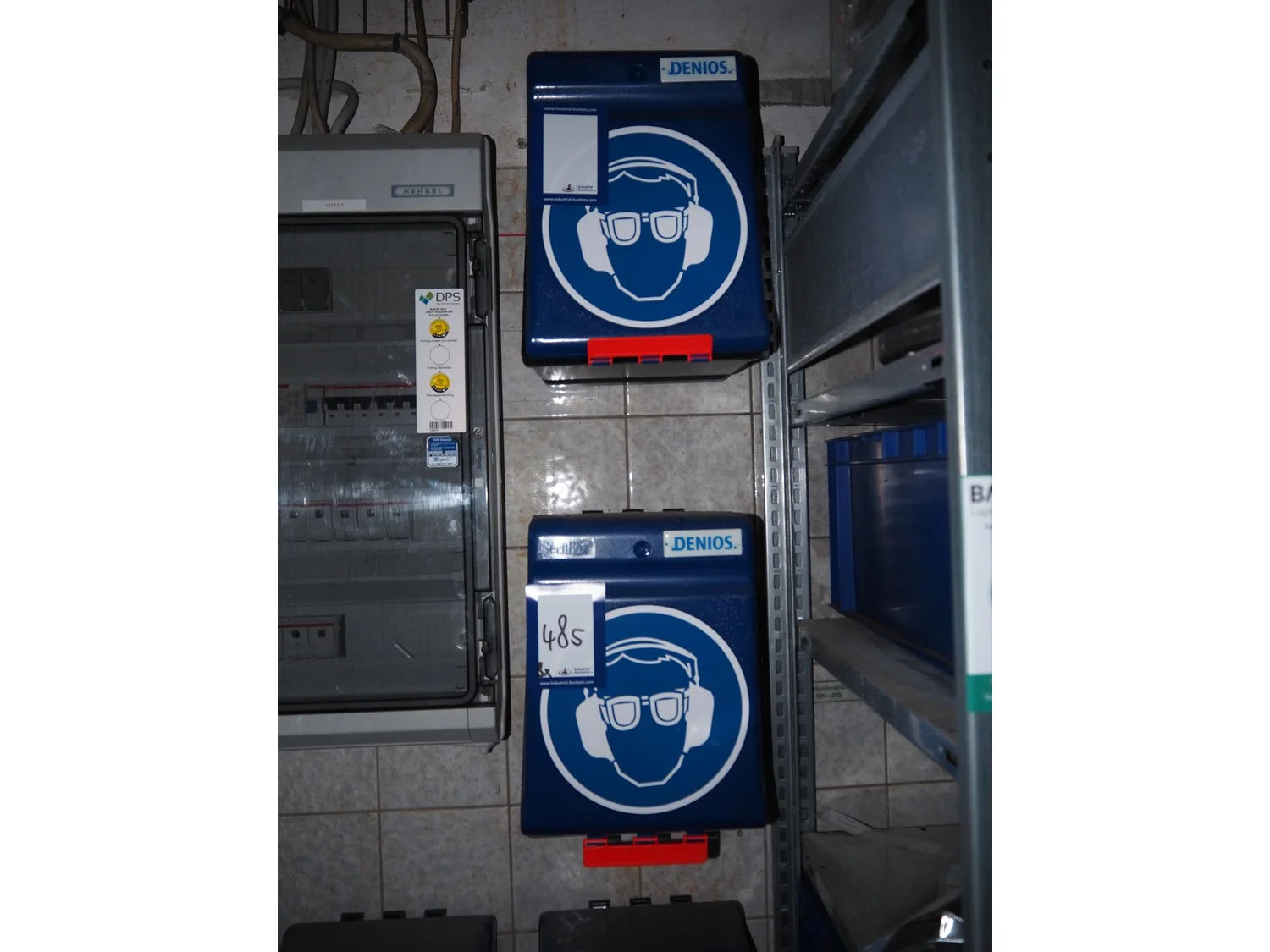8 Denios plastic eye and ear protection cabinet, dimensions: (6x) 220 mm x 200 mm x 310 mm.