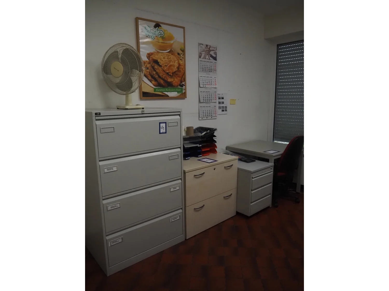 Office inventory, consisting of: (3x) office tables, (2x) cabinets and drawers.