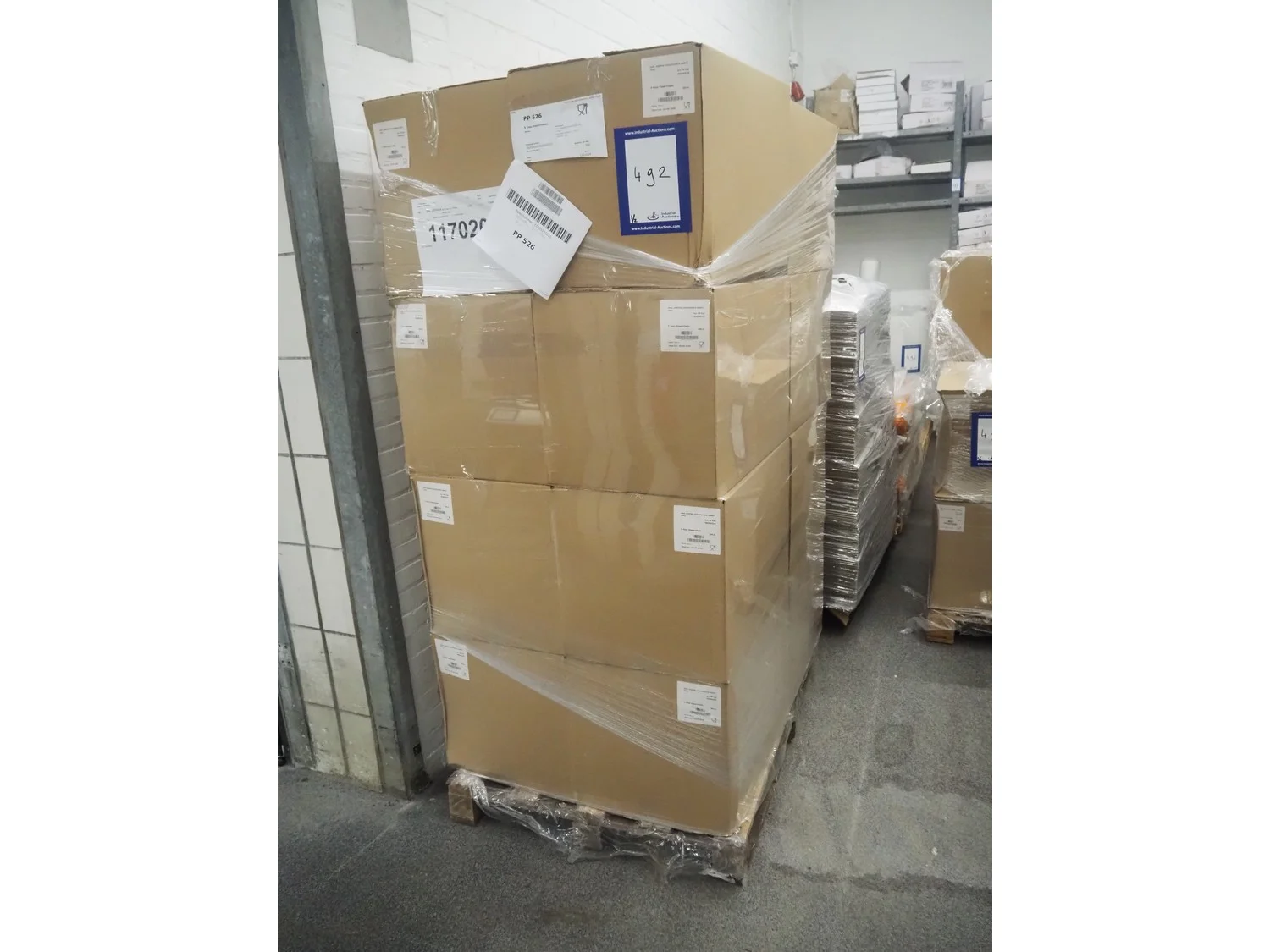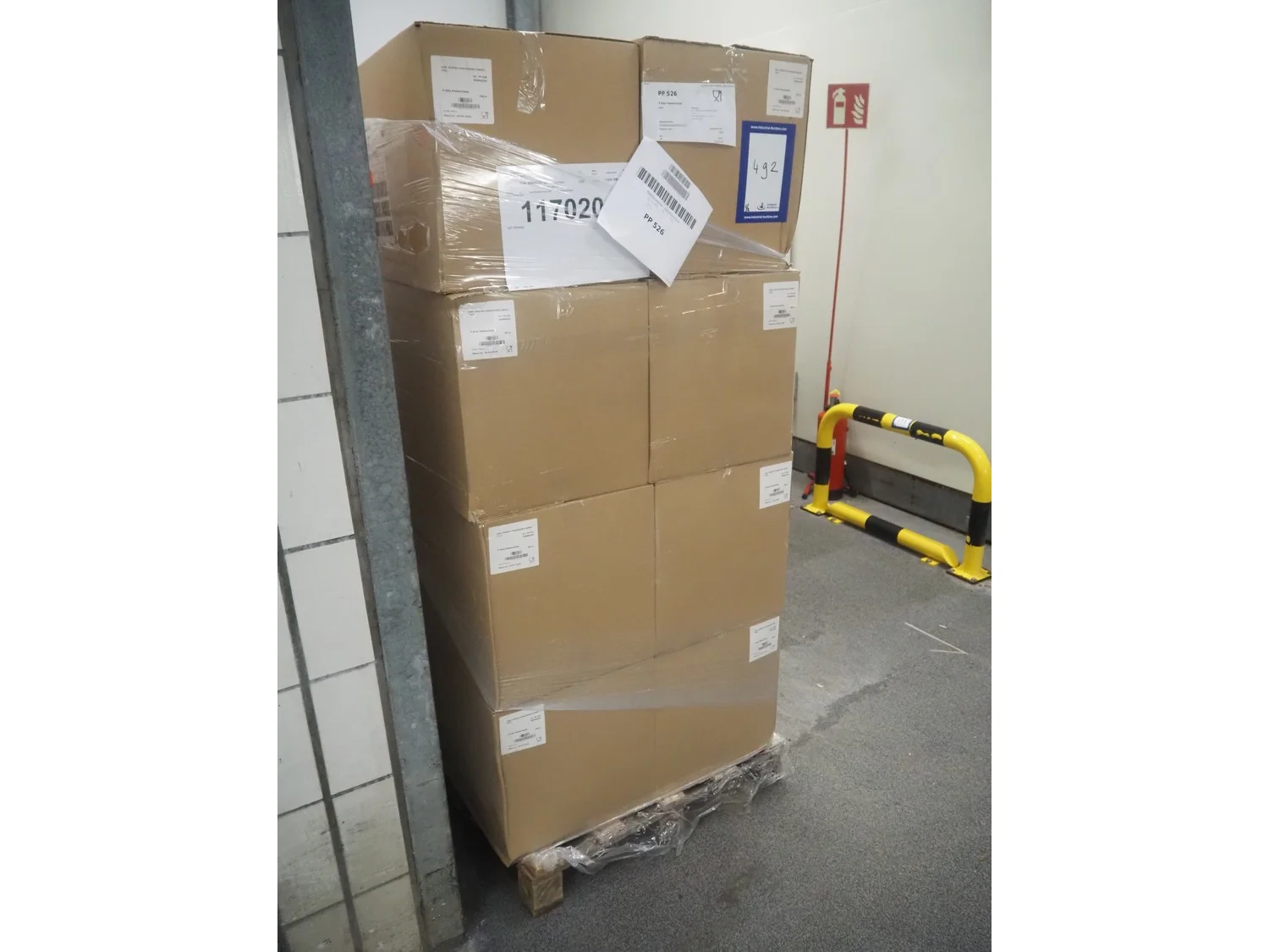2 pallets with plastic cups, 26 boxes, each box: 396 pieces, each plastic cup dimensions: 275 mm x 130 mm x 55 mm, total dimensions: (1x) 1200 mm x 800 mm x 1810 mm, (1x) 1200 mm x 800 mm x 1420 mm.