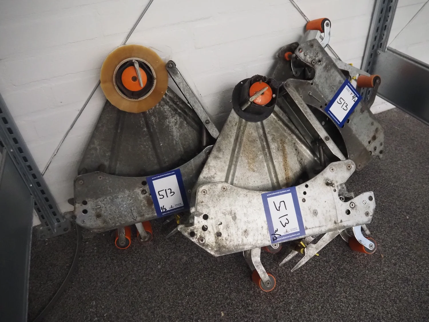 3 Soco System steel tapers for box closing machine, dimensions: (3x) 400 mm x 100 mm x 480 mm.