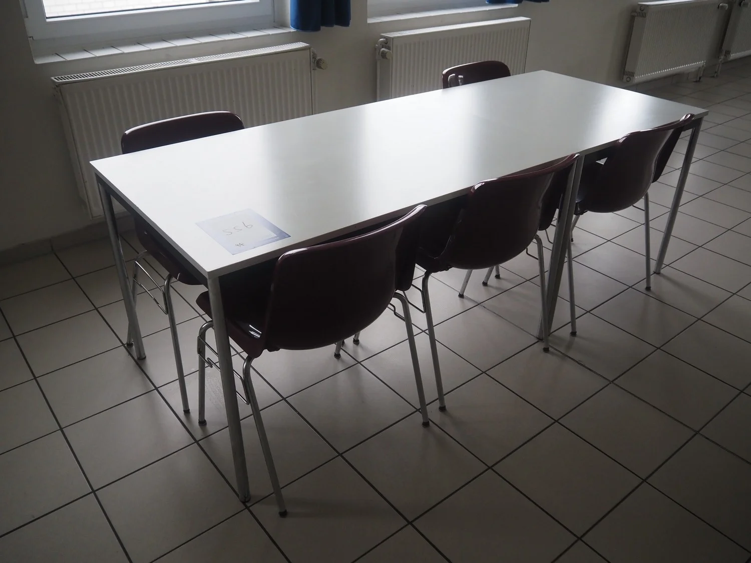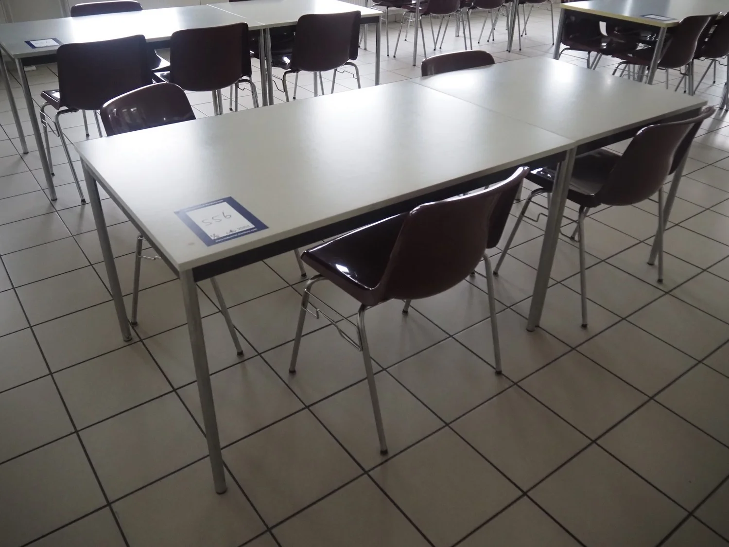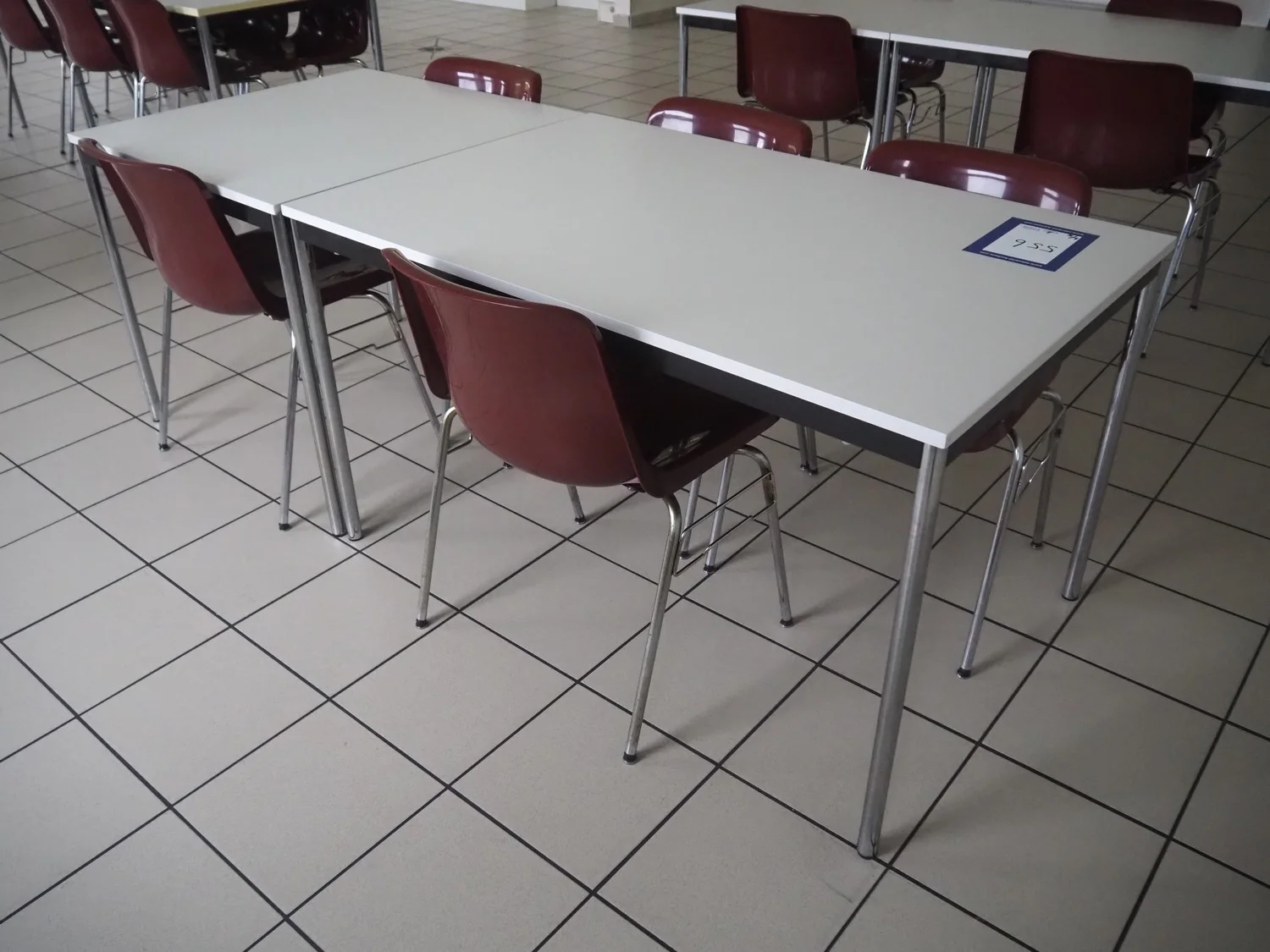 10 tables with 29 chairs, table dimensions: (6x) 1200 mm x 800 mm x 720 mm, (4x) 800 mm x 800 mm x 720 mm.