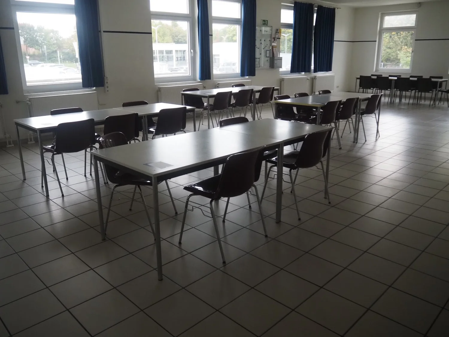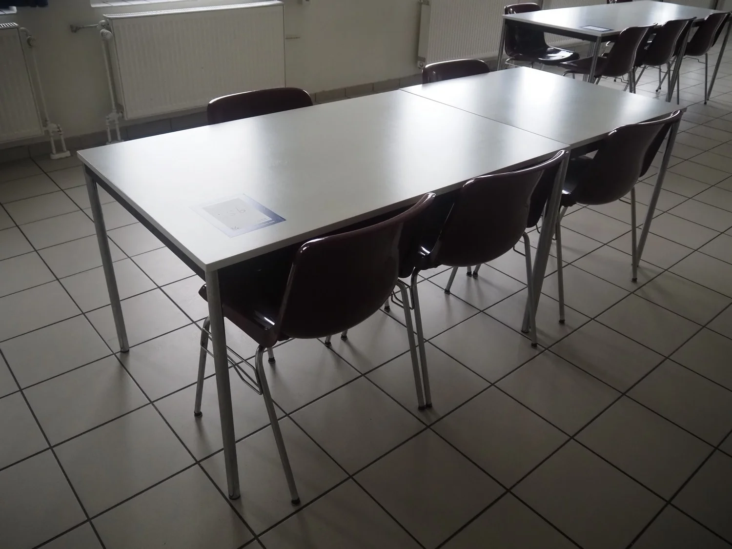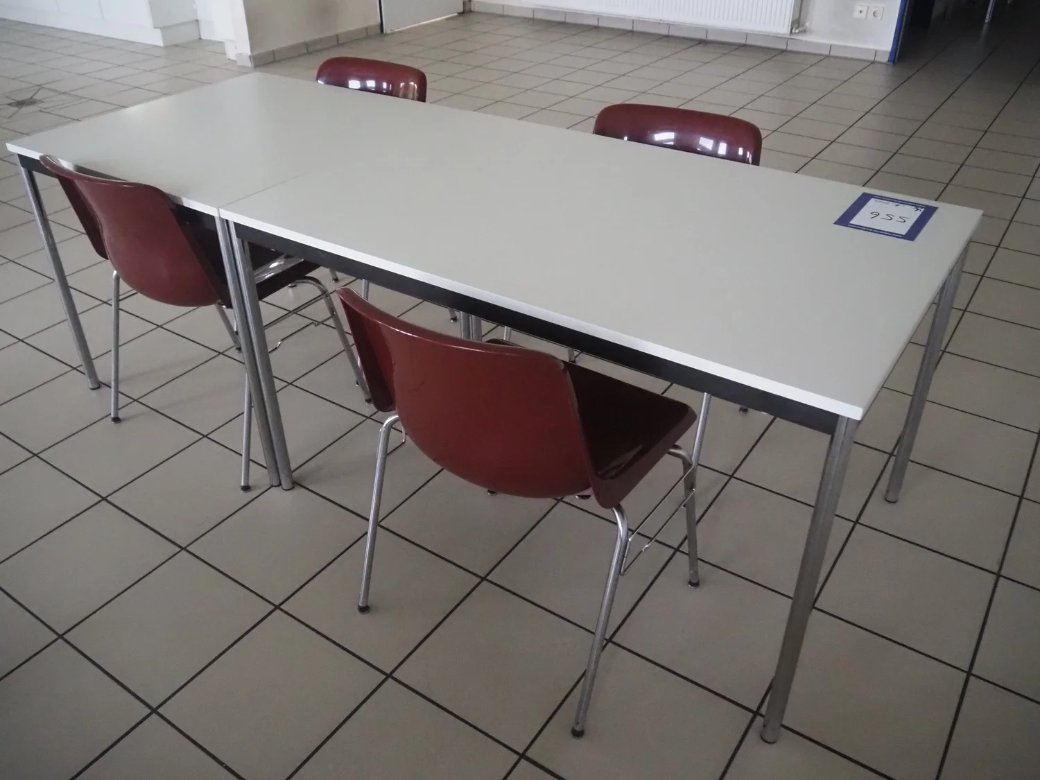 10 tables with 29 chairs, table dimensions: (6x) 1200 mm x 800 mm x 720 mm, (4x) 800 mm x 800 mm x 720 mm.