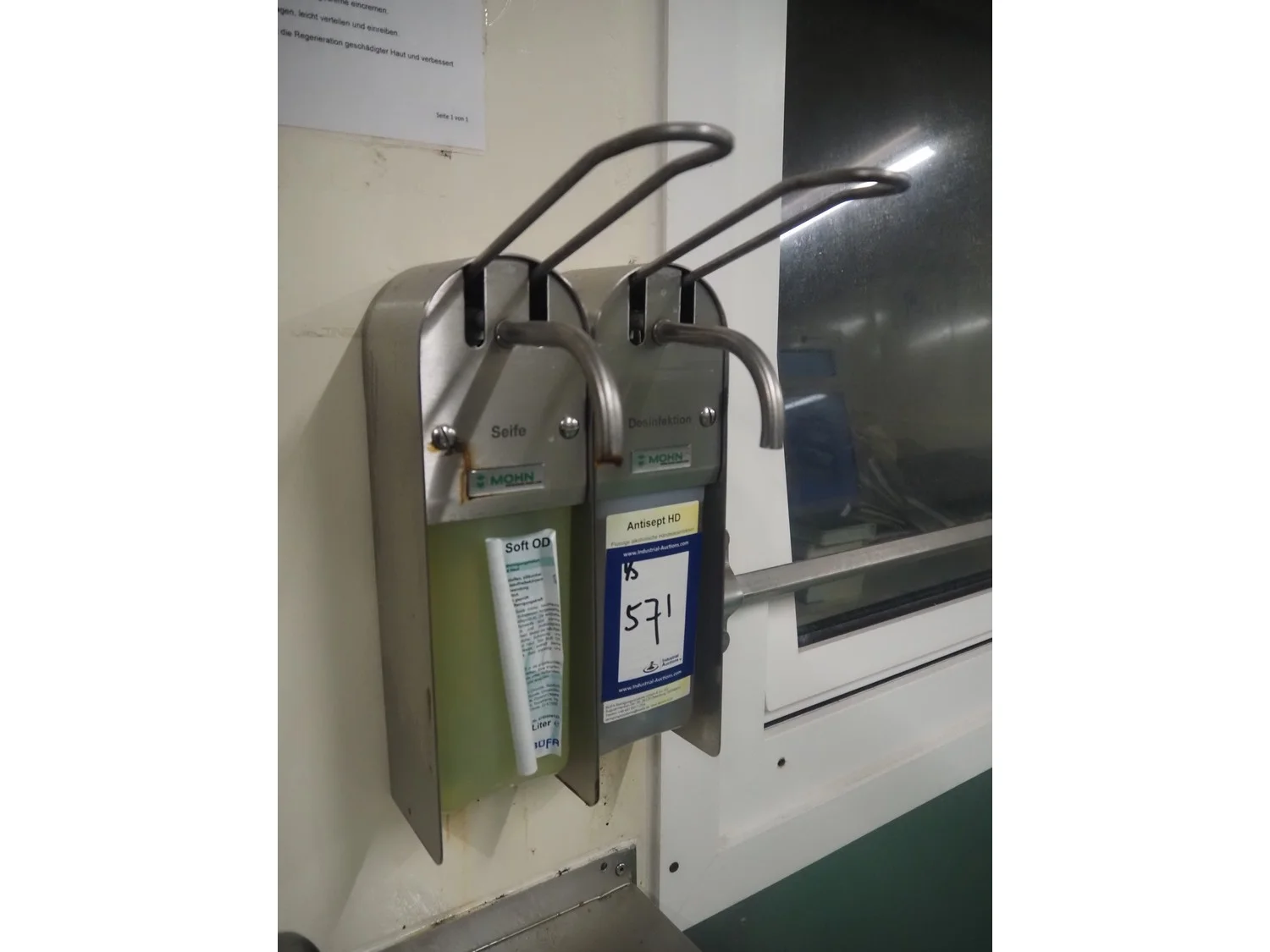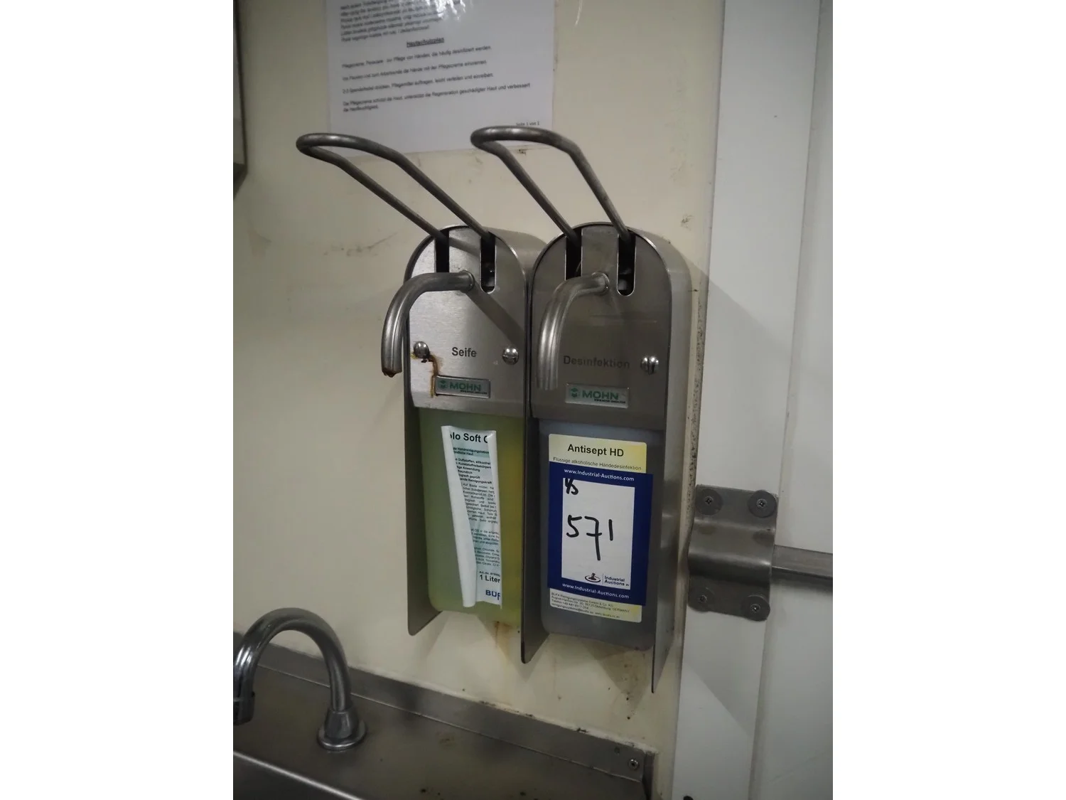 Nieros s/s sink, knee control, dimensions: 500 mm x 450 mm x 700 mm, s/s paper dispenser, dimensions: 280 mm x 250 mm x 580 mm, 2 s/s soap dispensers.