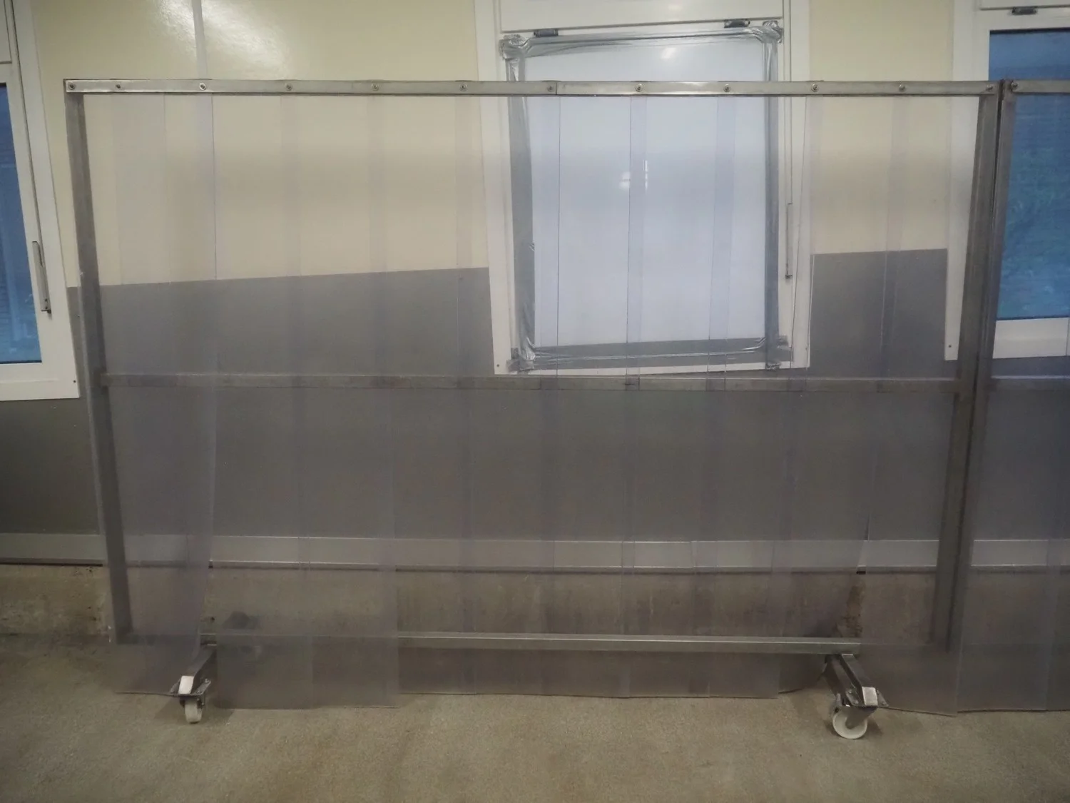 S/s mobile screen with plastic curtains, dimensions: 4000 mm x 550 mm x 1940 mm.