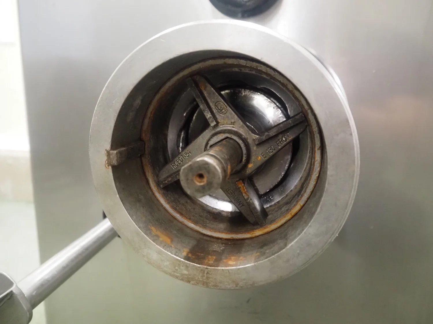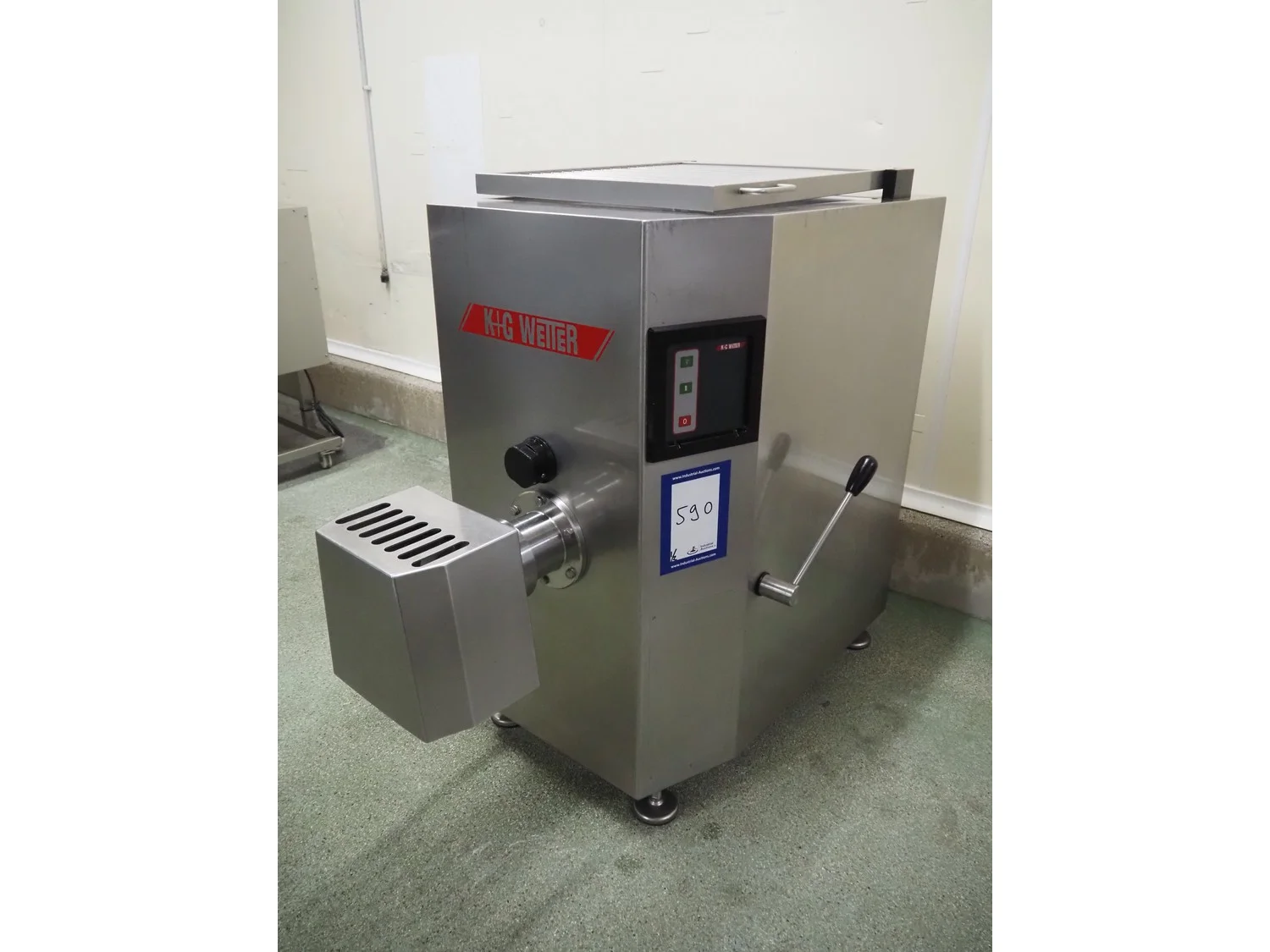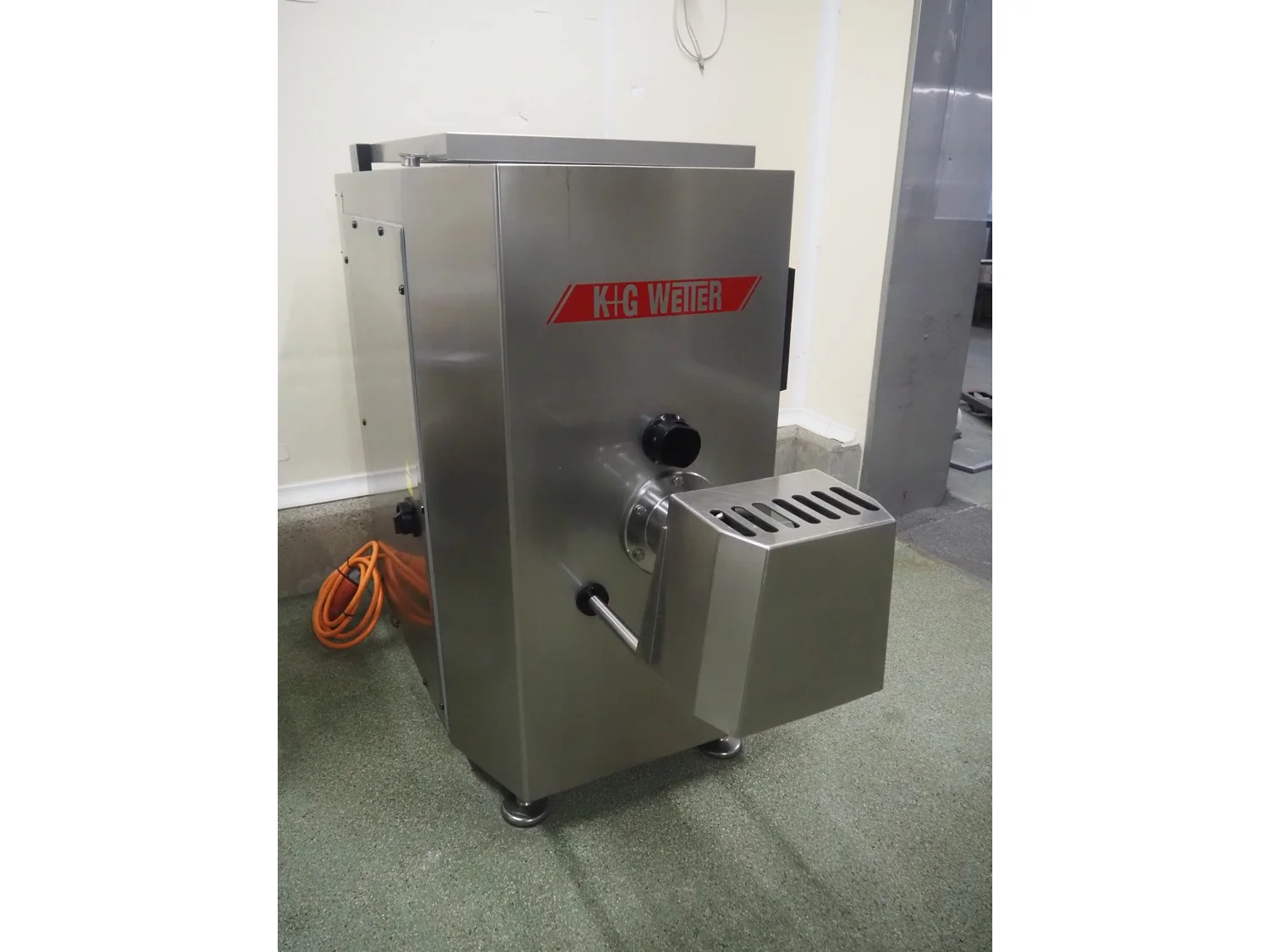 K+G Wetter grinder, type: AW E 130, machine number: 404/1062, year of construction: 2012, 400 V, 3 Ph, 50 Hz, 20 A, 9 kW, plate diameter: 130 mm, total dimensions: 1500 mm x 800 mm x 1300 mm. Including crate with plates and knifes.