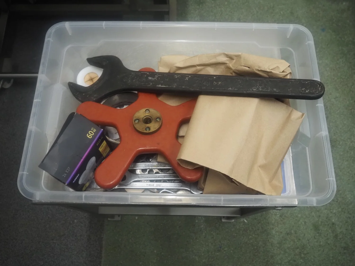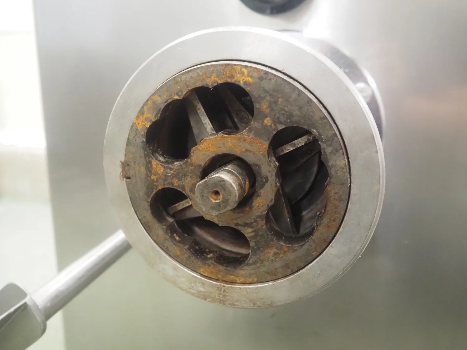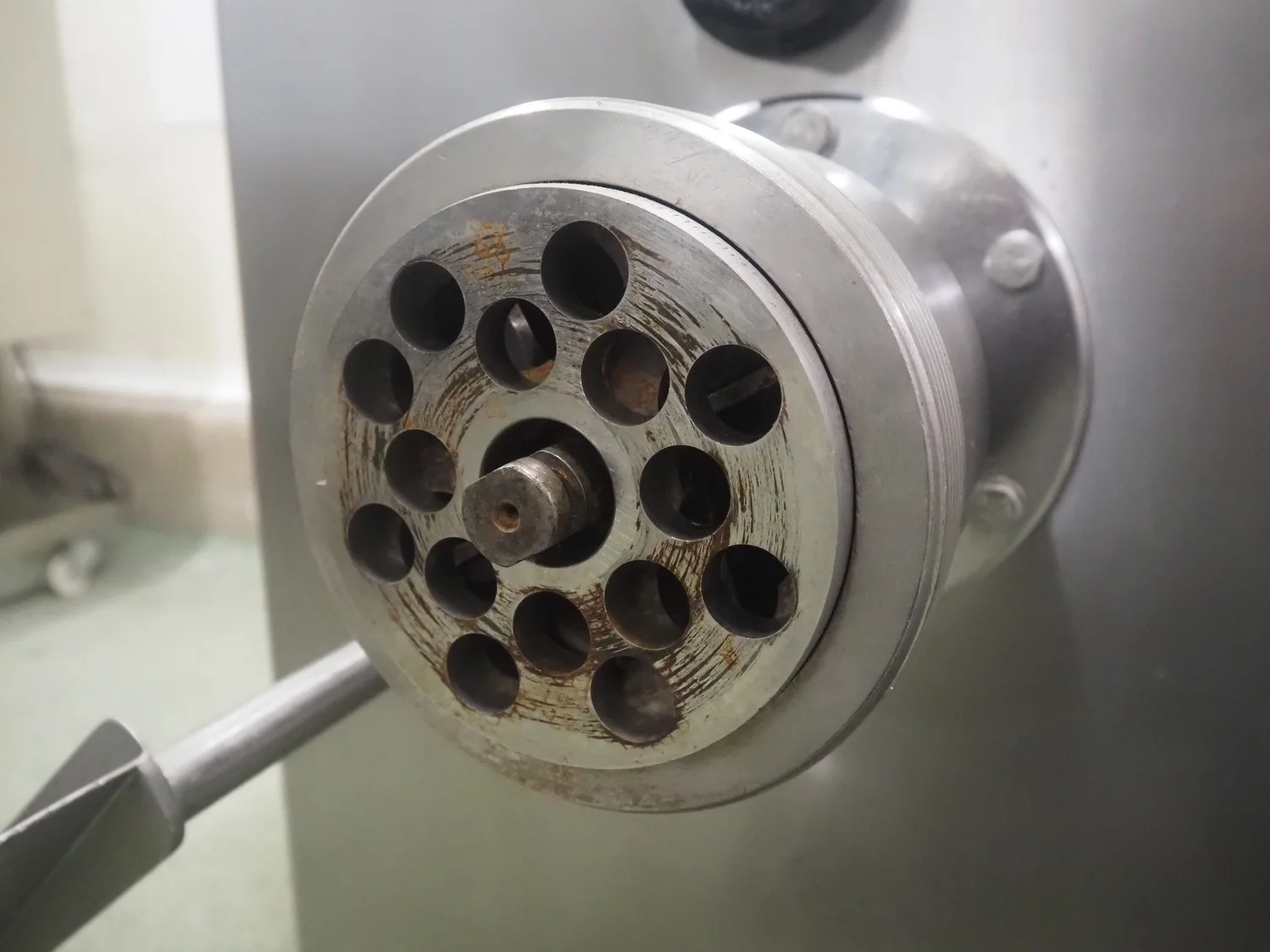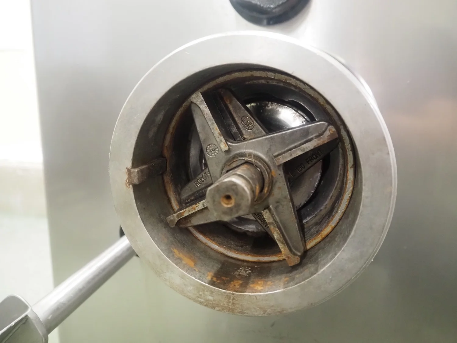 K+G Wetter grinder, type: AW E 130, machine number: 404/1062, year of construction: 2012, 400 V, 3 Ph, 50 Hz, 20 A, 9 kW, plate diameter: 130 mm, total dimensions: 1500 mm x 800 mm x 1300 mm. Including crate with plates and knifes.