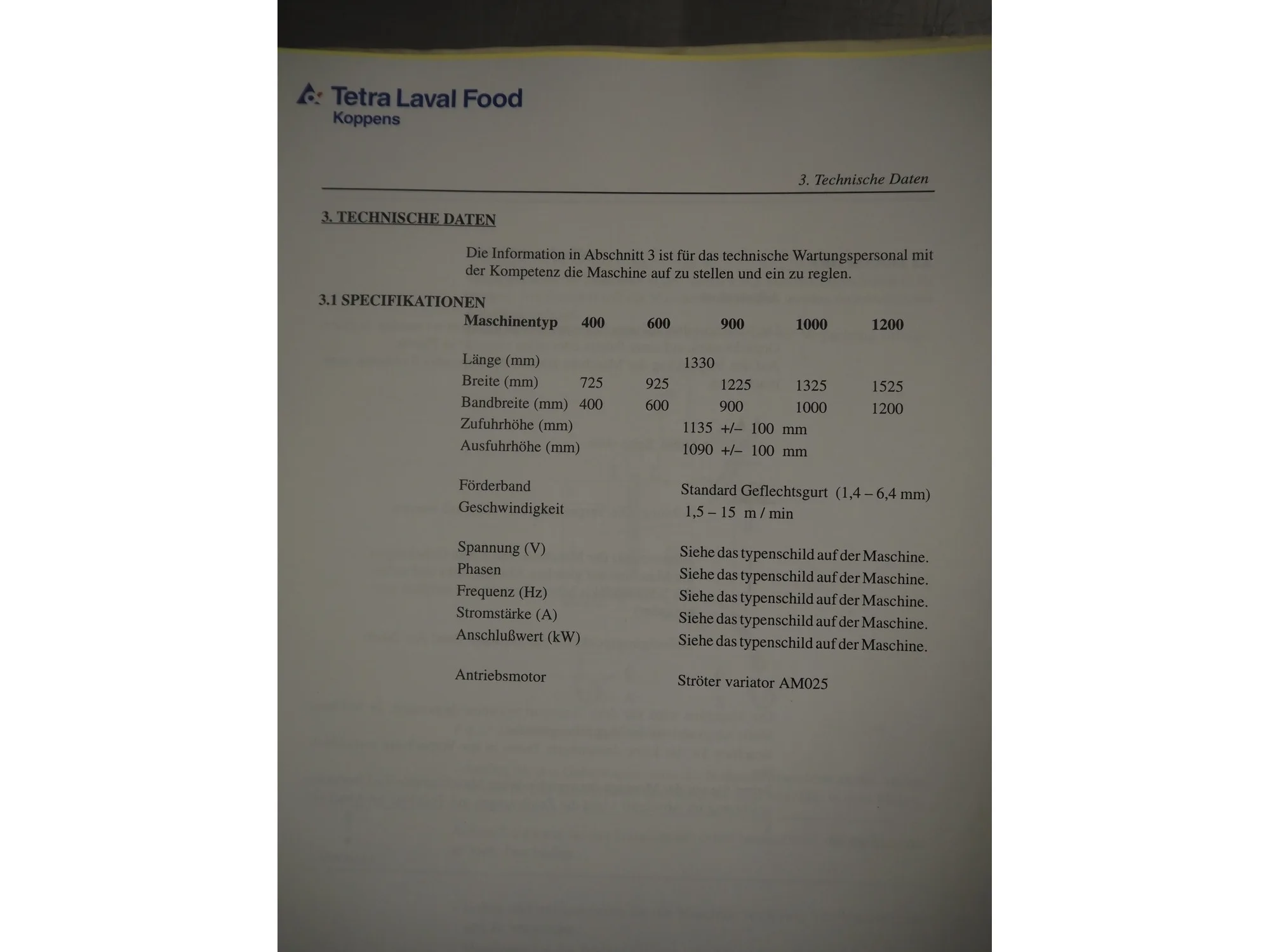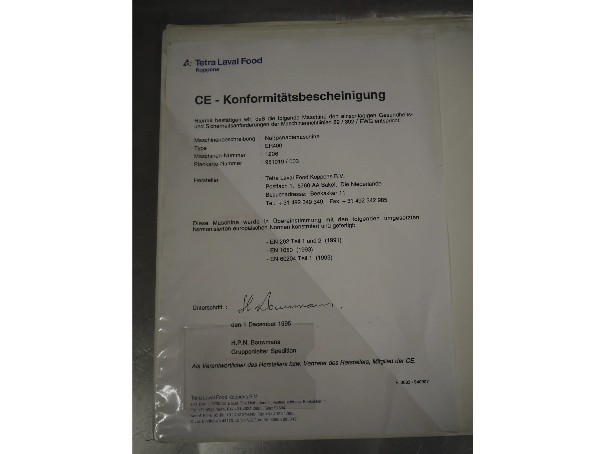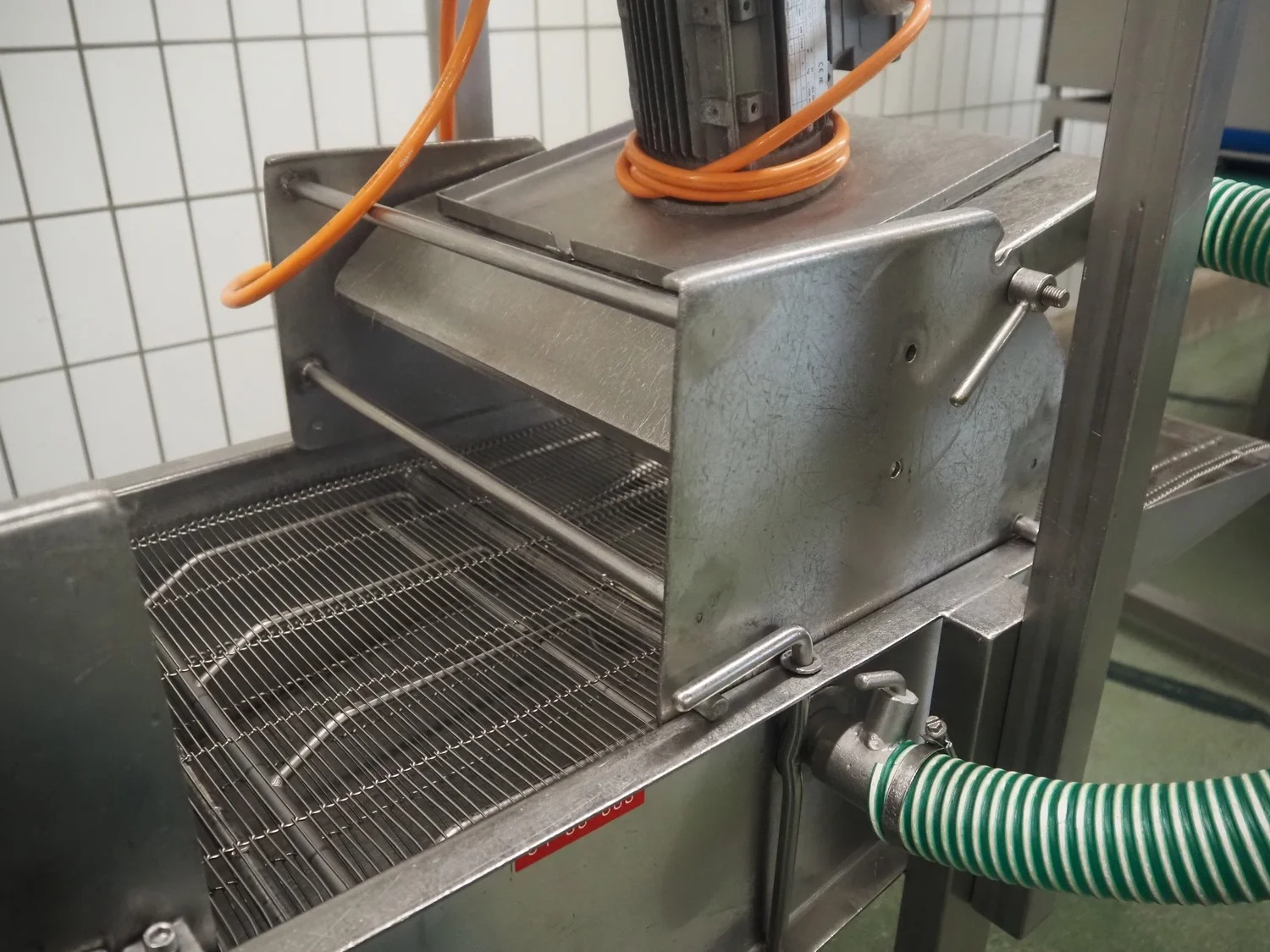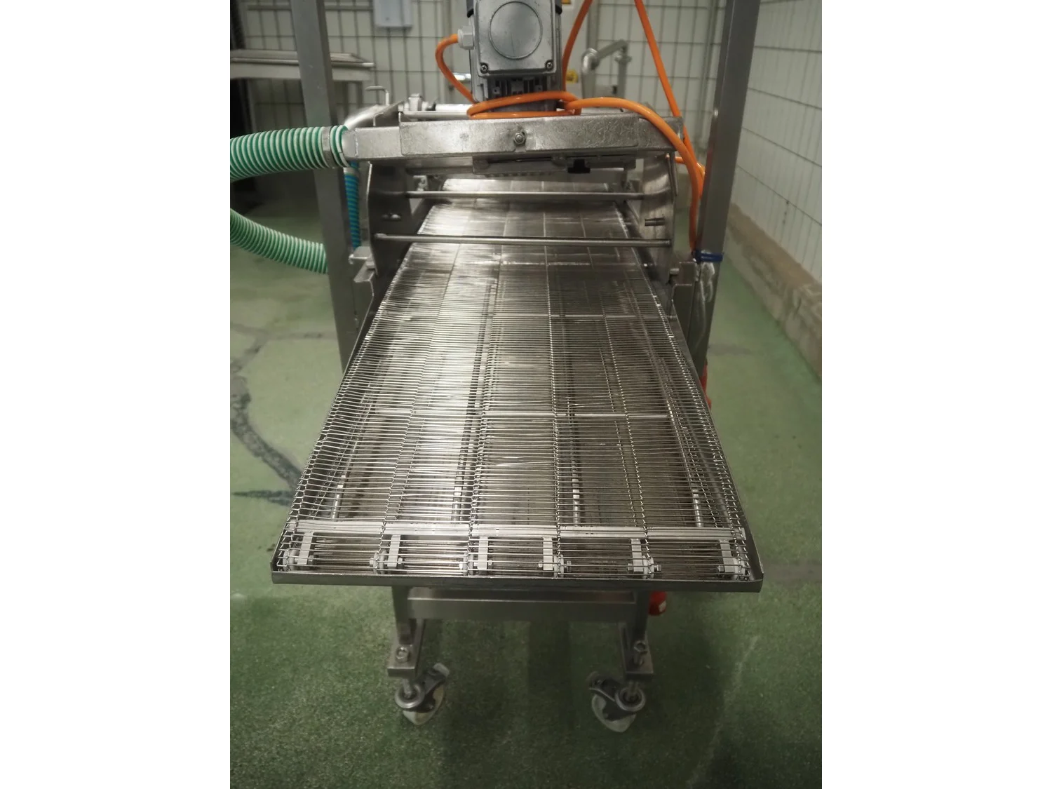 Koppens Machinefabriek B.V. mobile coating machine, type: ER400, number: 1206, year of construction: 1995, s/s mesh belt, belt width: 400 mm, total dimensions: 1800 mm x 700 mm x 2050 mm.