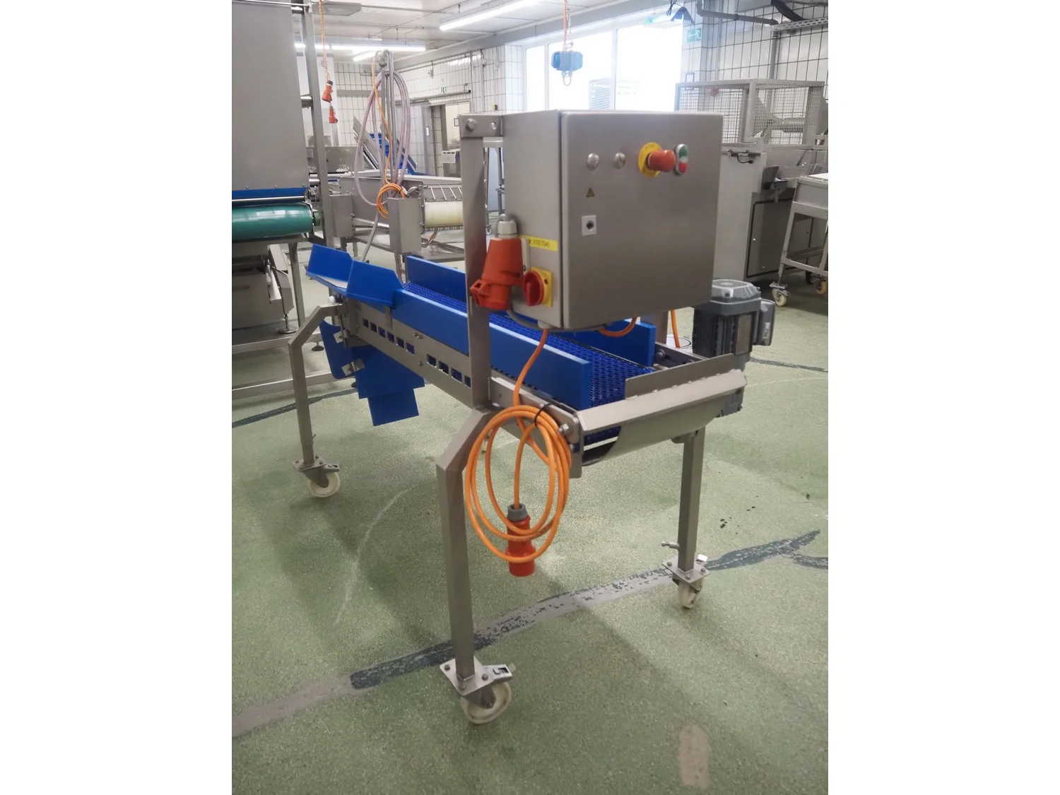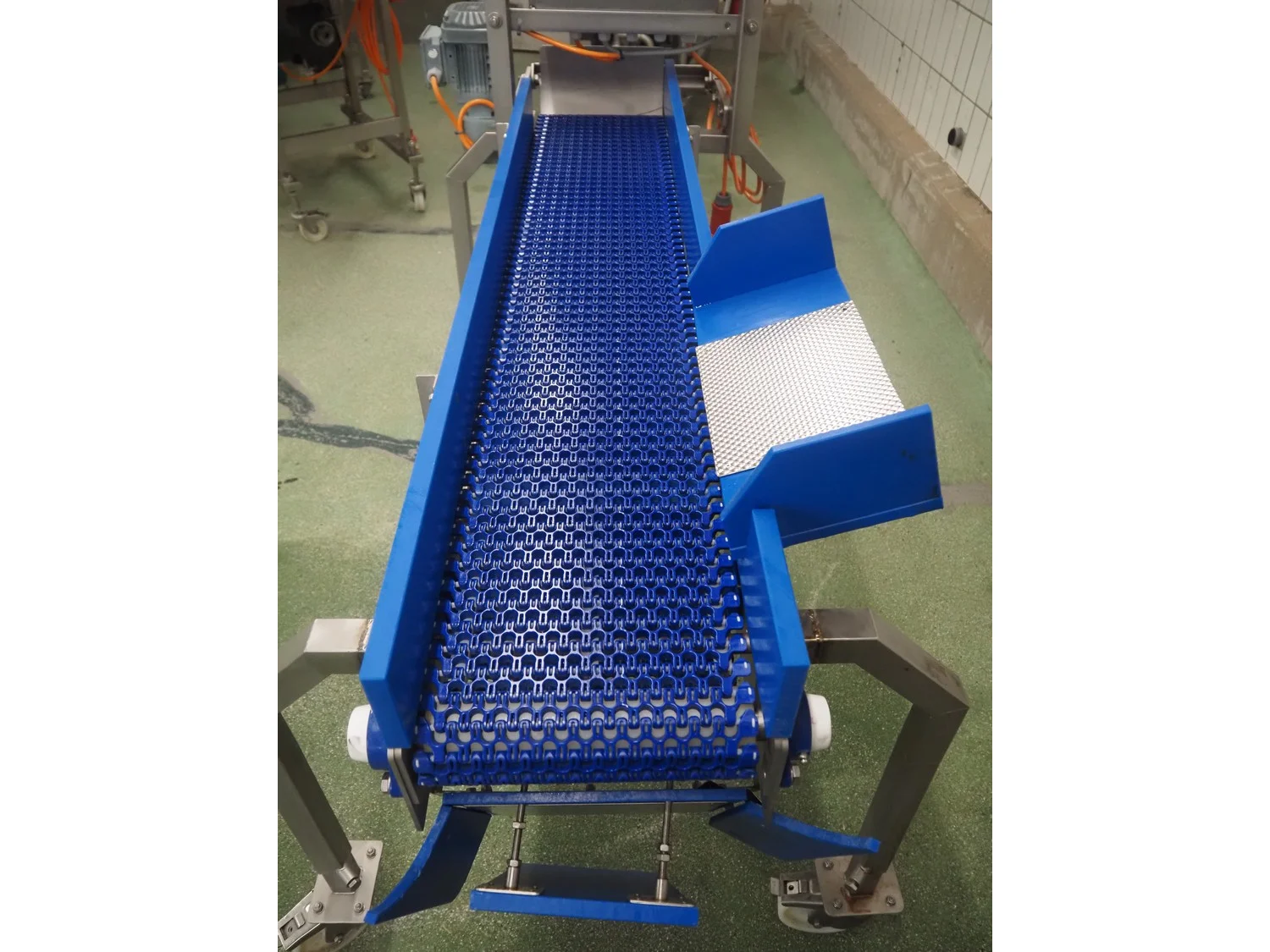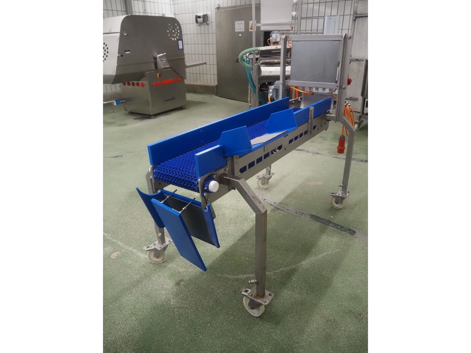 Mobile transport belt, s/s frame, plastic mesh belt, belt width: 290 mm, total dimensions: 1800 mm x 900 mm x 1400 mm.