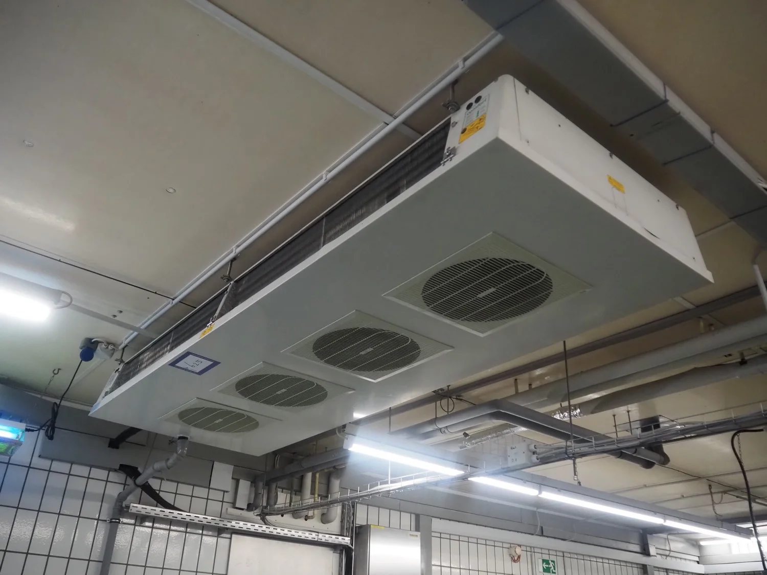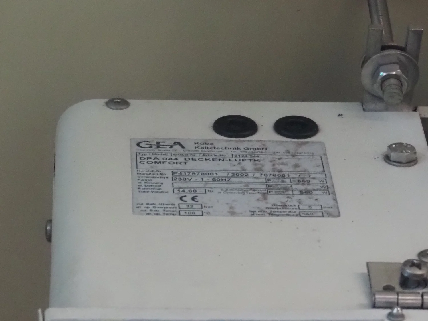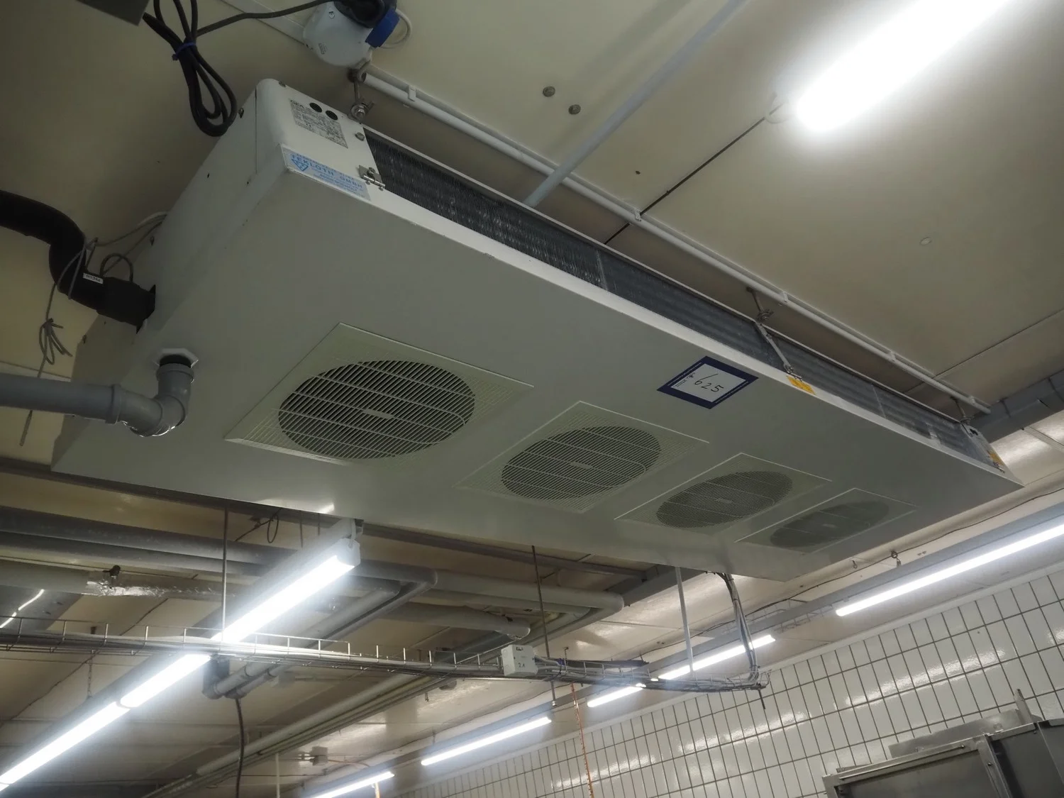 GEA Küba Kältetechnik GmbH evaporator, 4 fans, type/model: DPA 044 DECKEN-LUFTK COMFORT, article number: 2124.044, year of construction: 2002, 230 V, 1 Ph, 50 Hz, volume: 14.60 liter, dimensions: 2600 mm x 900 mm x 250 mm.