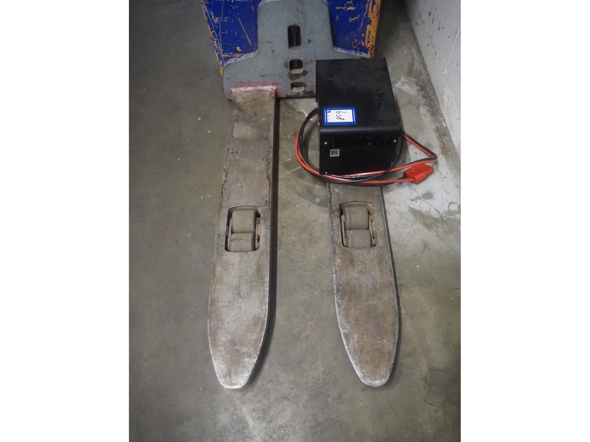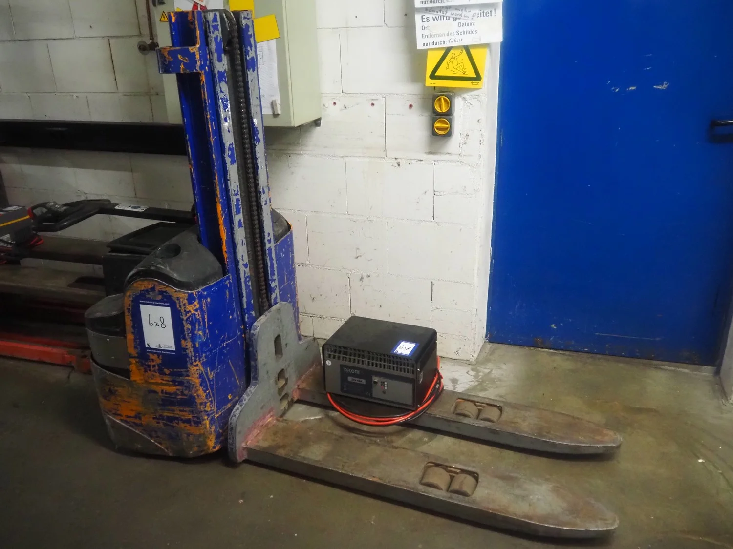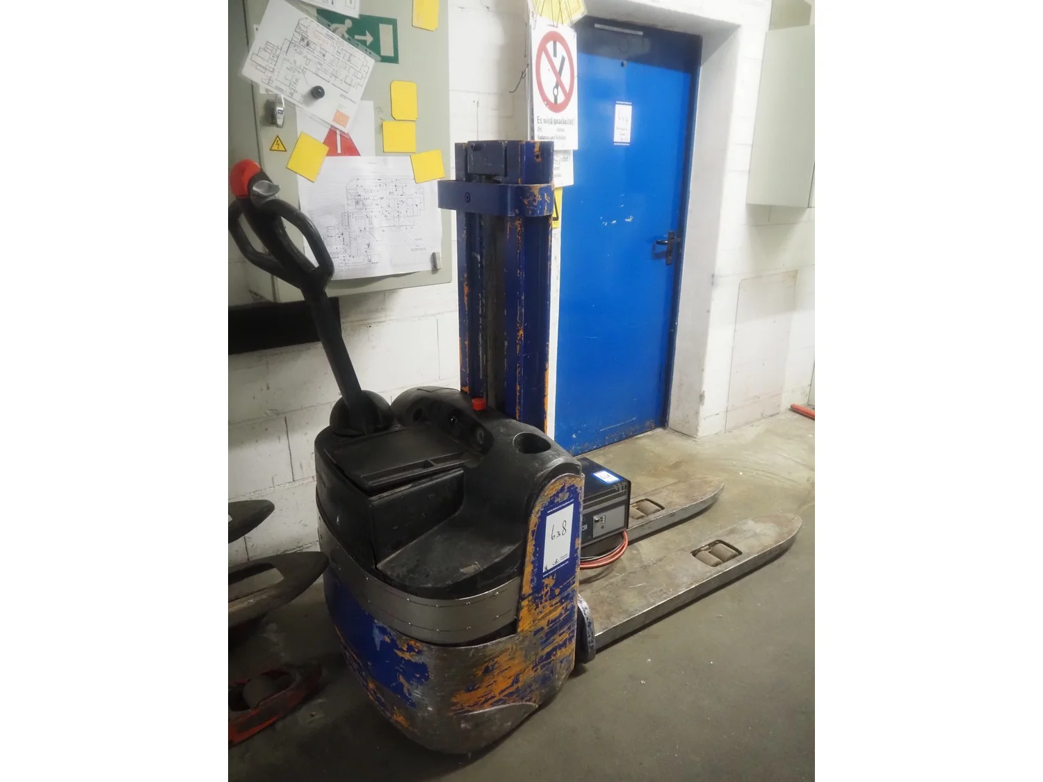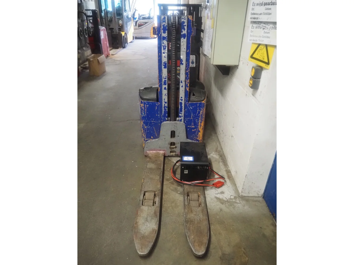 Still electrical pallet lifter, fork length: 1200 mm, total dimensions: 1820 mm x 740 mm x 1400 mm. Including Tricom battery charger, type: E 230 G 24/40 Wa.