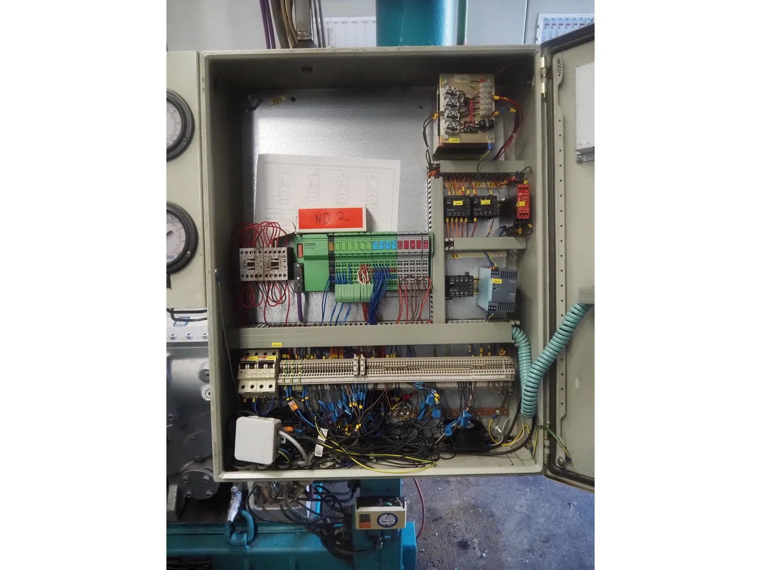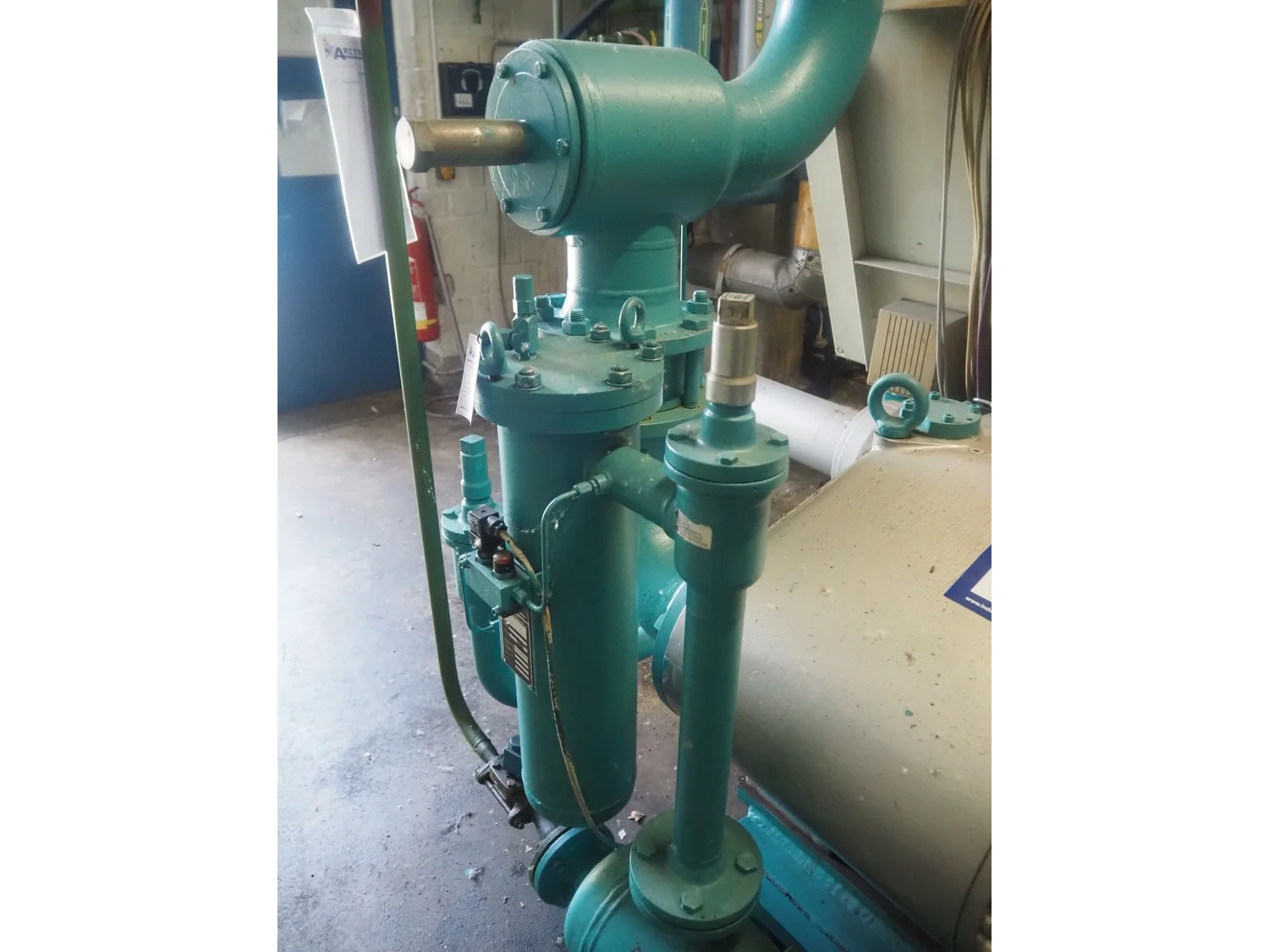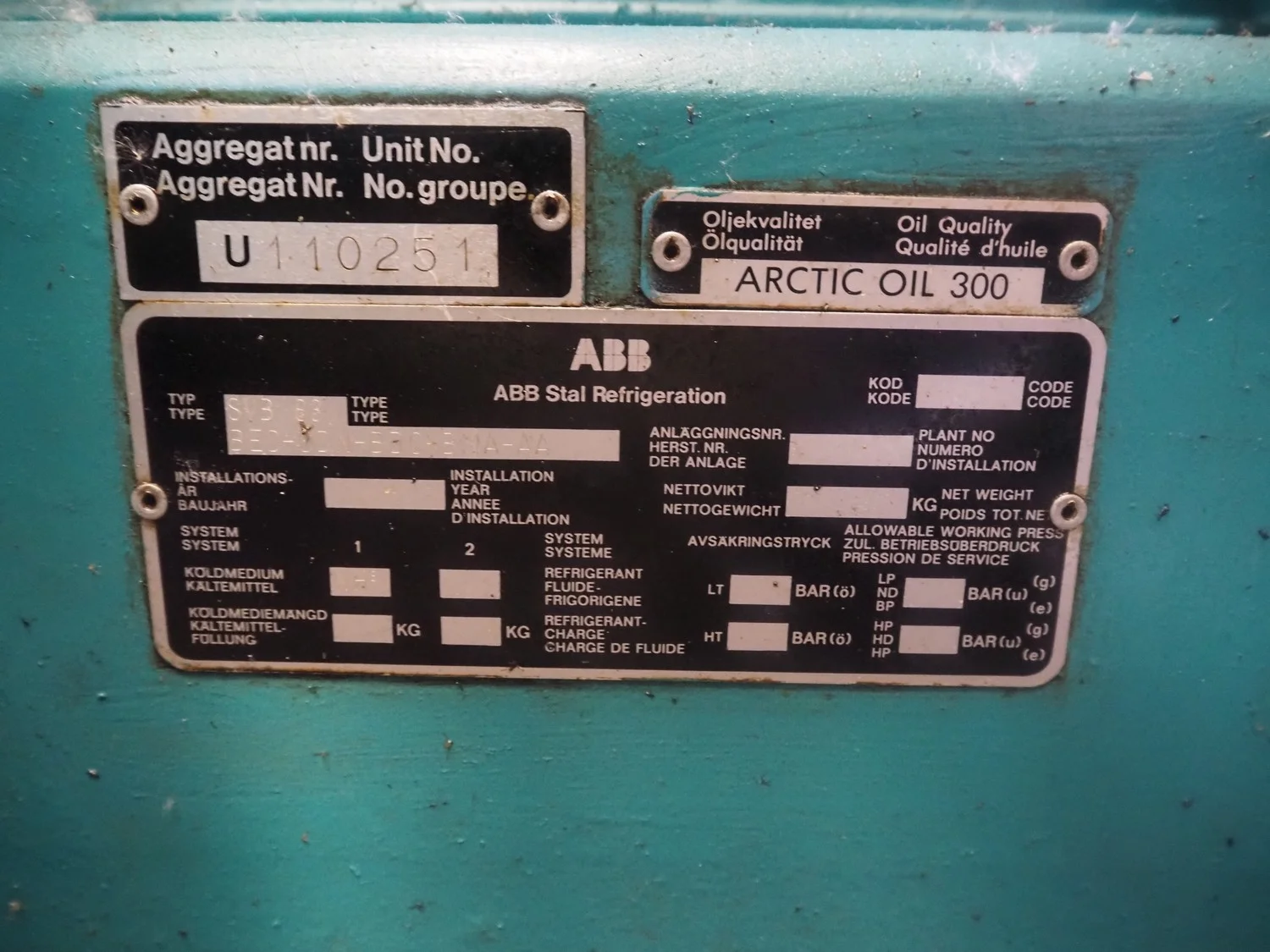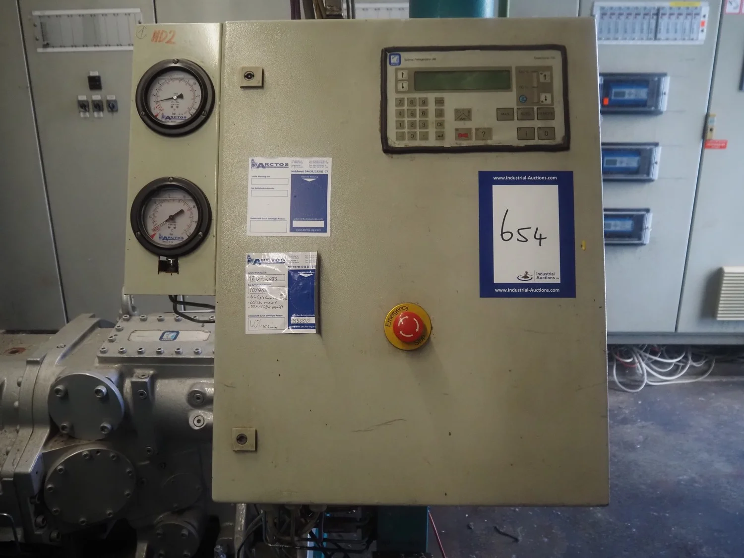 Sabroe screw cooling compressor, type: SAB 83, number: 129957, year of construction: 2004, volume: 1603 m³ per hour, refrigerant: R717 / NH3, nominal speed: 3600 U/min, dimensions: 3900 mm x 1250 mm x 2150 mm.