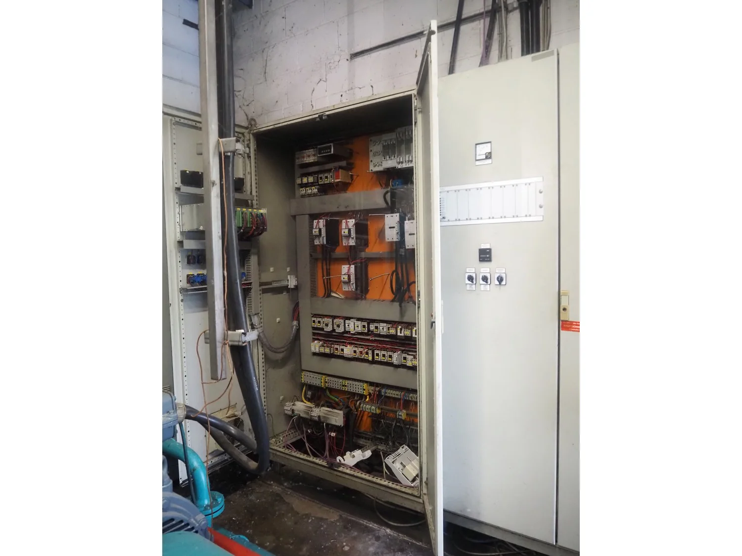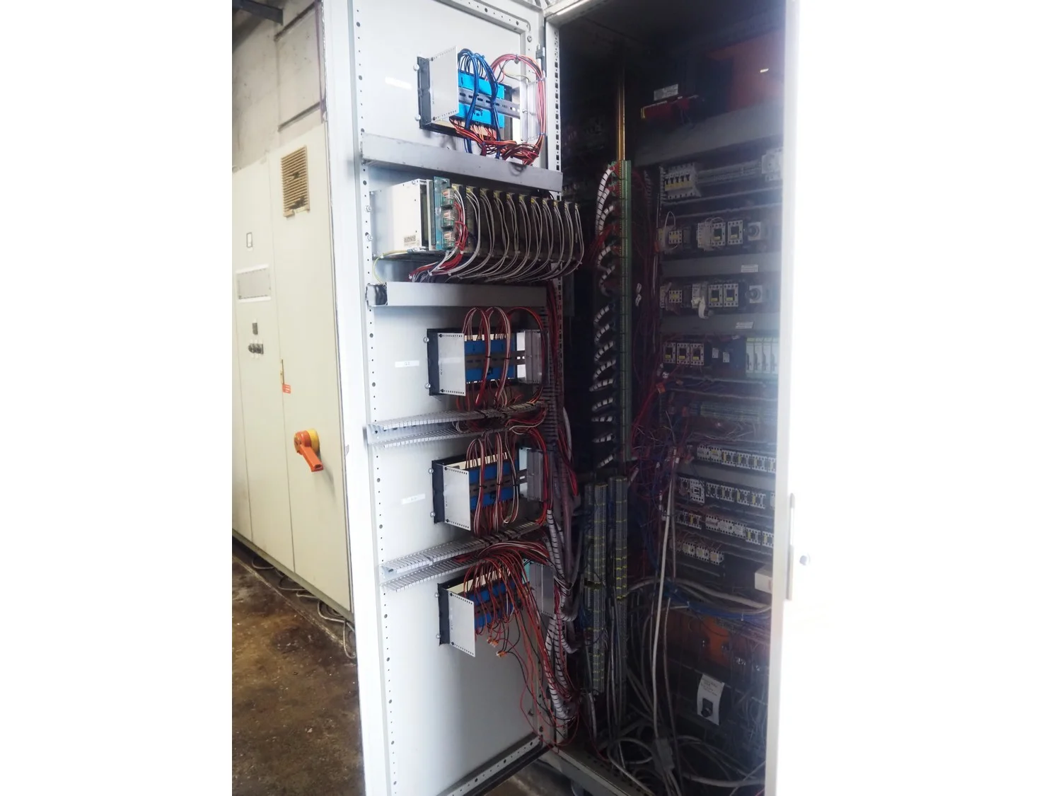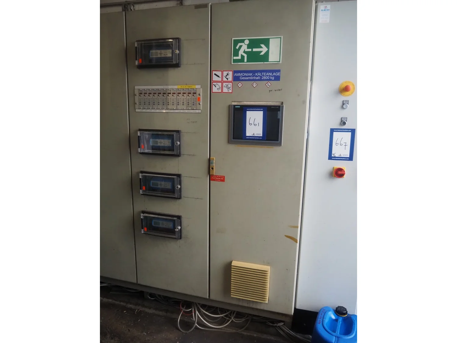Switch cabinet for complete cooling installation with Siemens HMI control panel, dimensions: 4800 mm x 630 mm x 2200 mm.