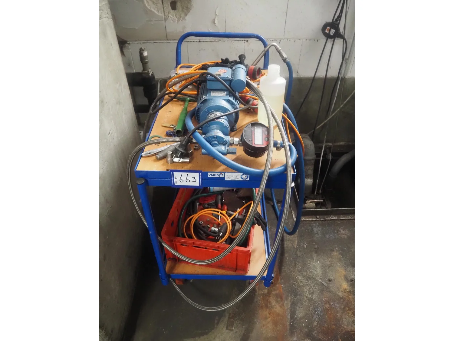 Linn-Pumpen GmbH flexible impeller pump on steel trolley, dimensions trolley: 980 mm x 500 mm x 1000 mm.