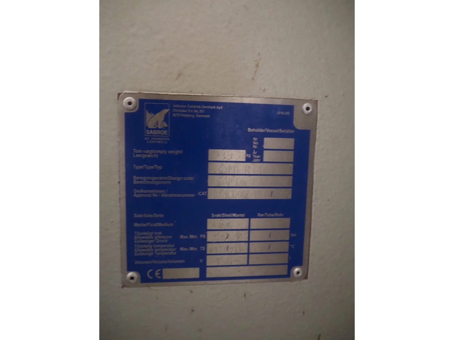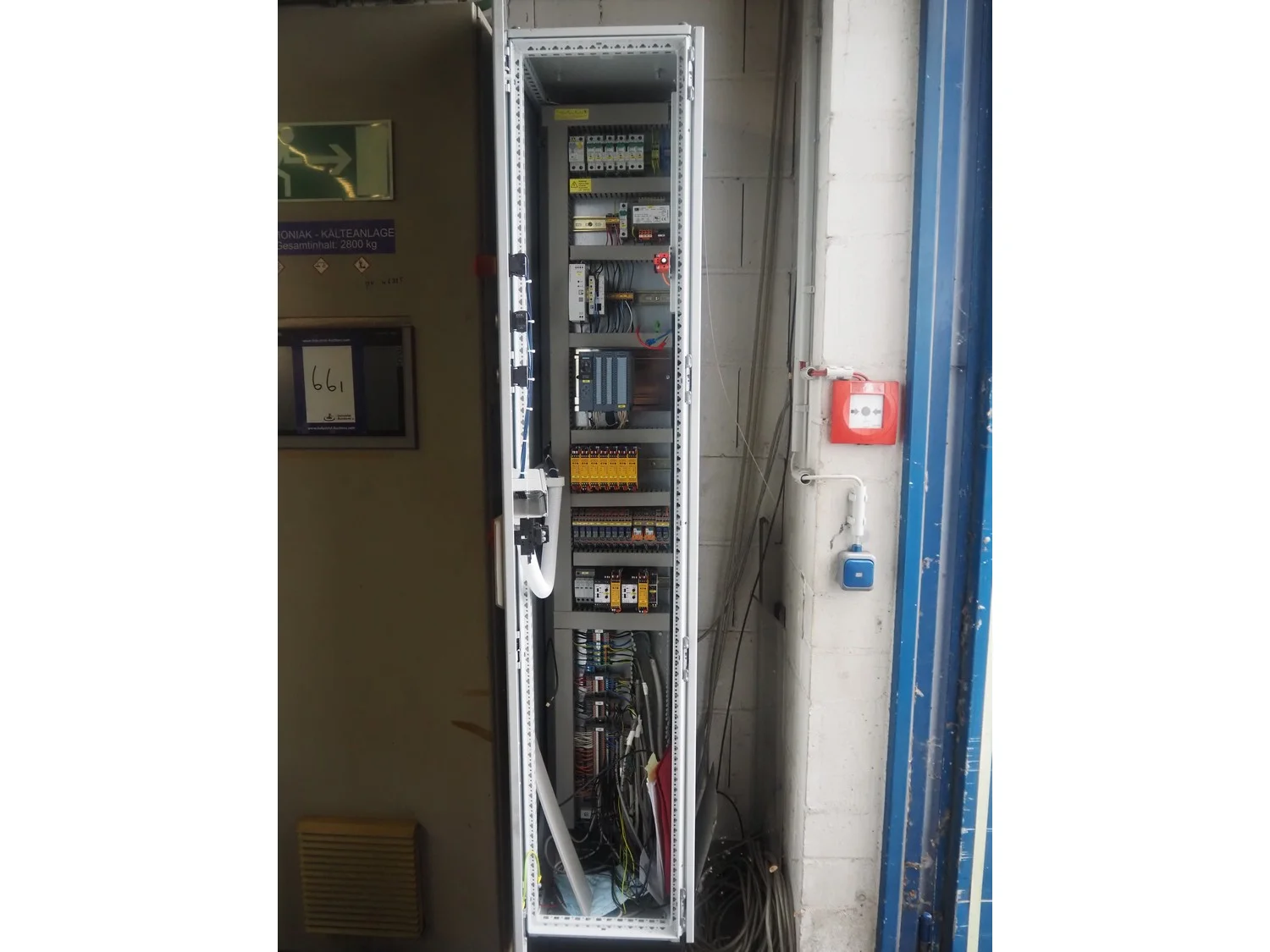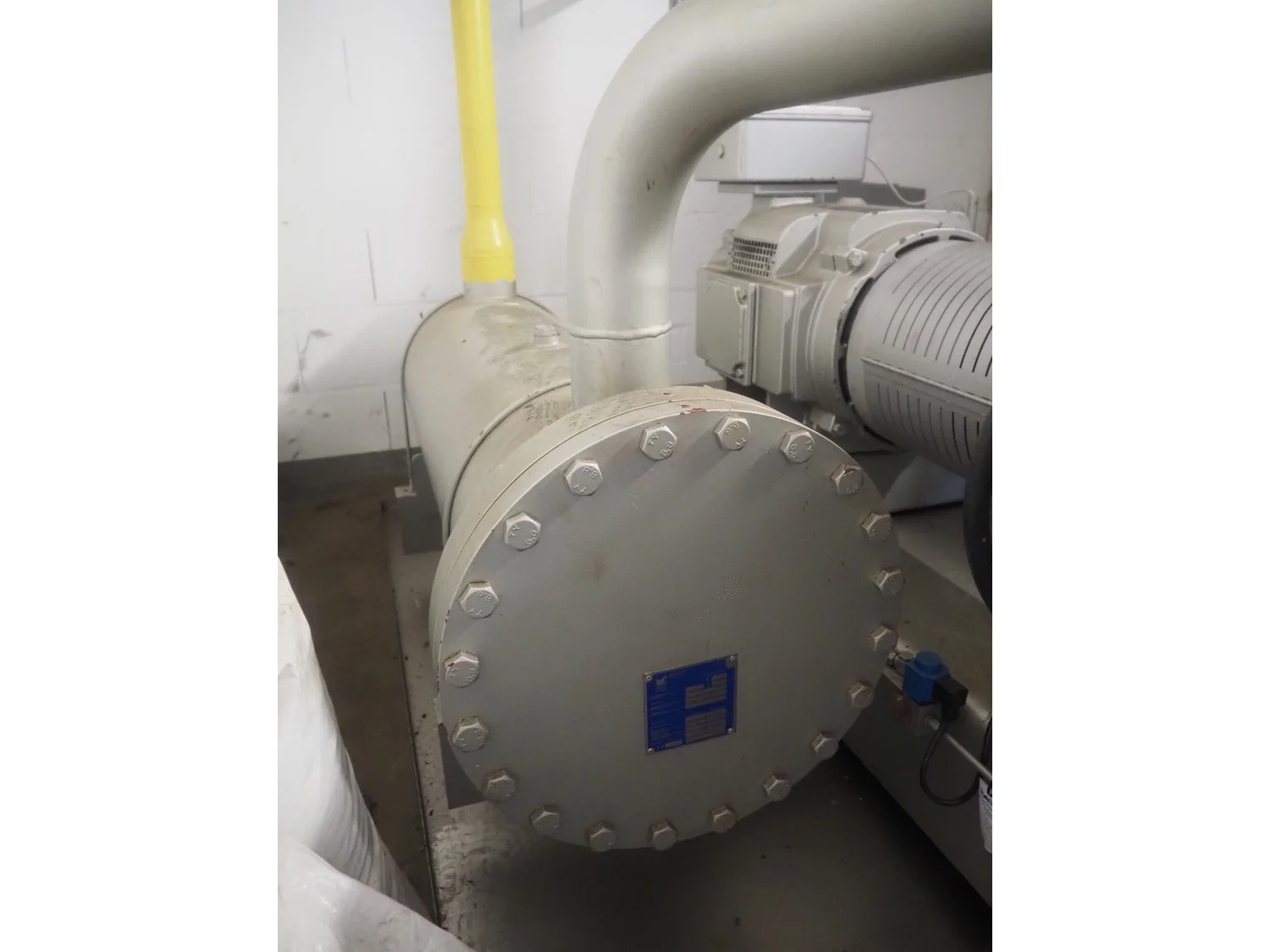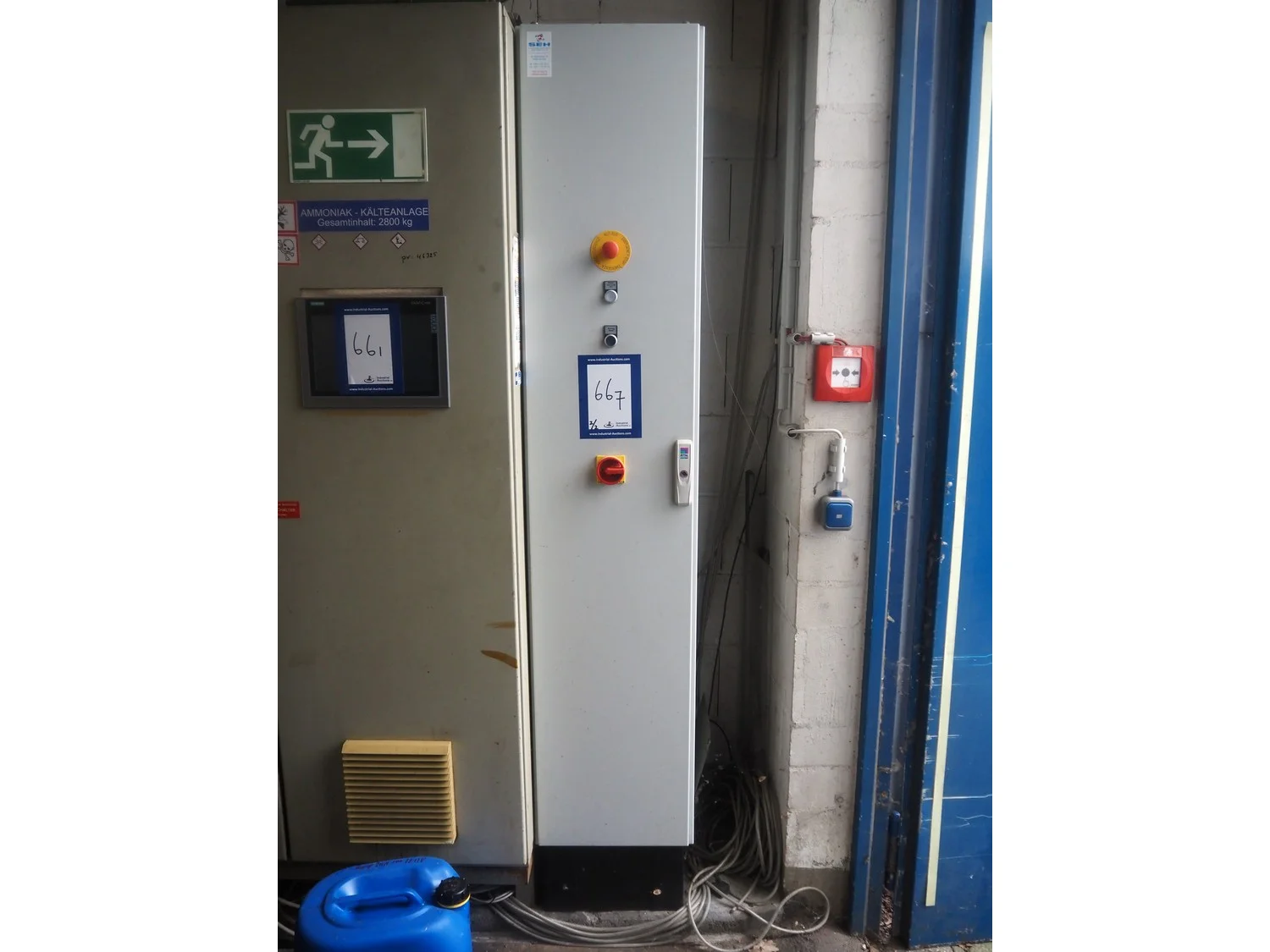 Sabroe reciprocating piston cooling compressor, type: SMC112L, number: 164069, year of construction: 2019, speed: 1500 m³ per hour, volume: 848 m³ per hour, refrigerant: R717, dimensions: 3350 mm x 1300 mm x 1520 mm. Switch cabinet, dimensions: 500 mm x 410 mm x 2180 mm.