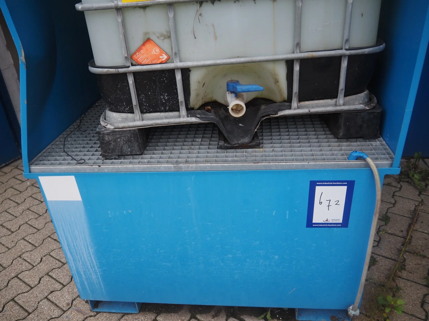 Steel drip tray, dimensions: 1360 mm x 1300 mm x 2250 mm. Without IBC tank.