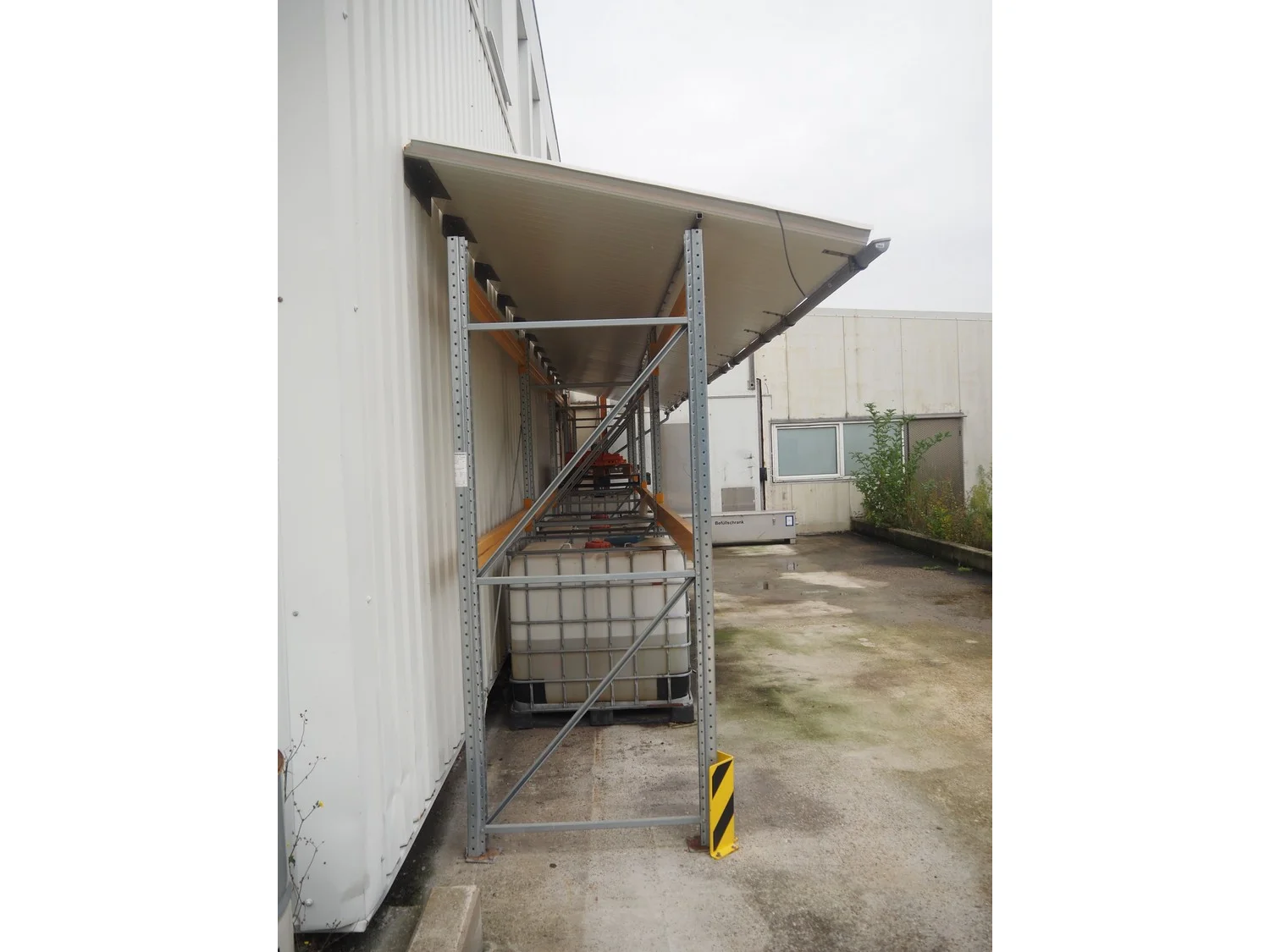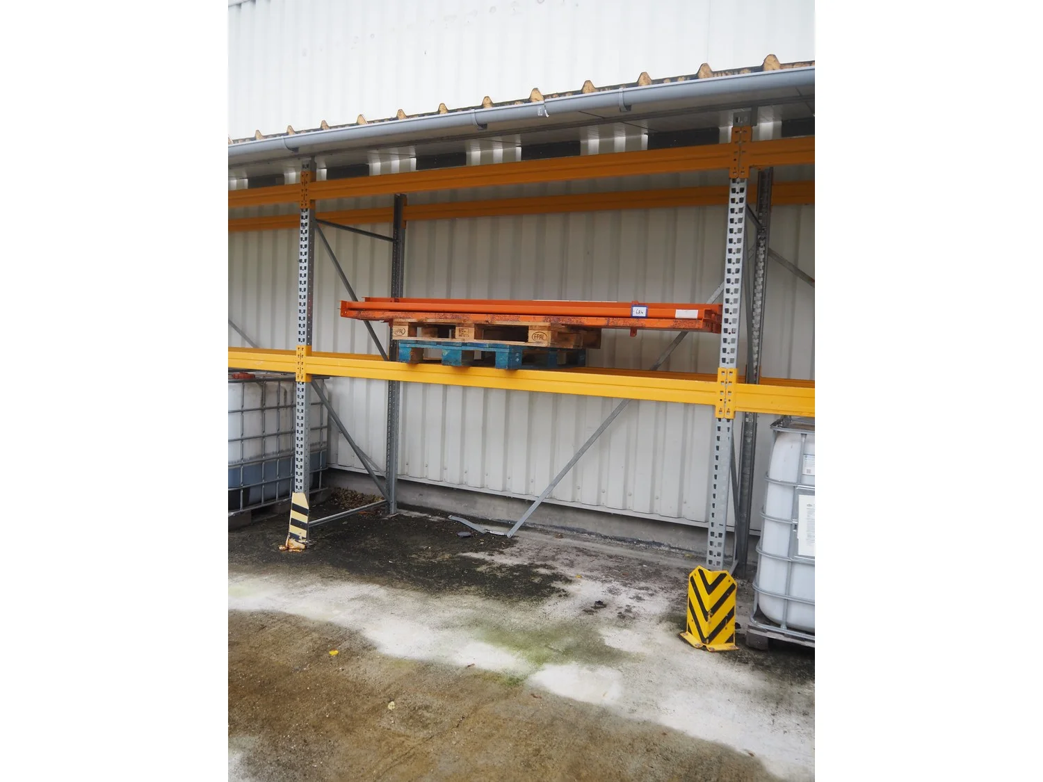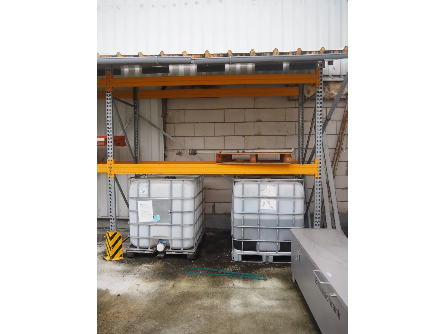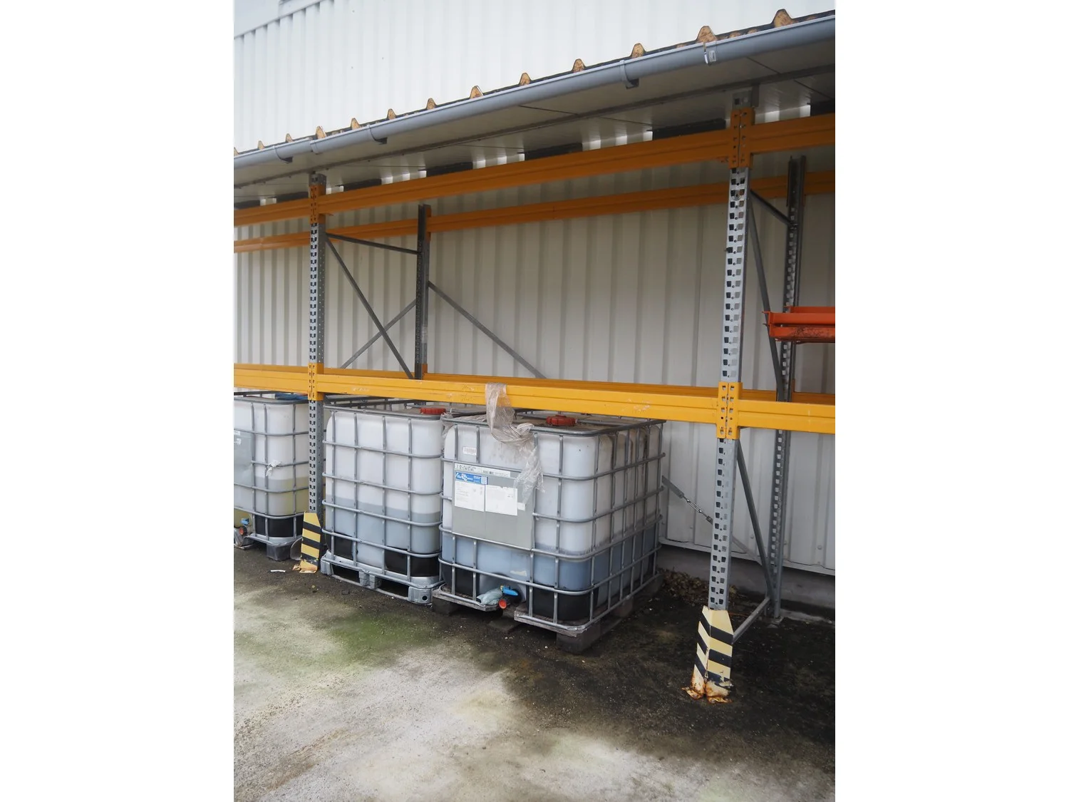 Jungheinrich steel pallet rack, type: S, number: 1112017504, year of construction: 2007, consisting of: 5 uprights, dimensions: (5x) 1100 mm x 90 mm x 2700 mm, 16 beams, beam length: (16x) 2880 mm, total dimensions: 11620 mm x 1100 mm x 2700 mm. IBC tanks not included.