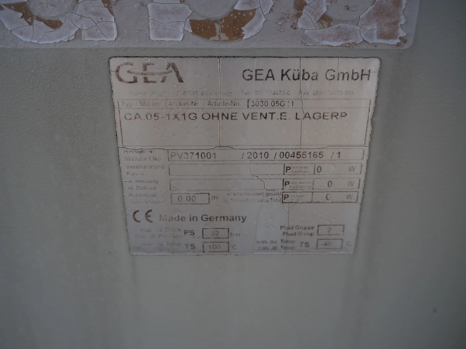 GEA Küba Kältetechnik GmbH roof condenser, type: CA.05-1X1G OHNE VENT .E. LAGERP, number: 3030.05G11, year of construction: 2010, 1 fans, dimensions: 1400 mm x 900 mm x 930 mm.