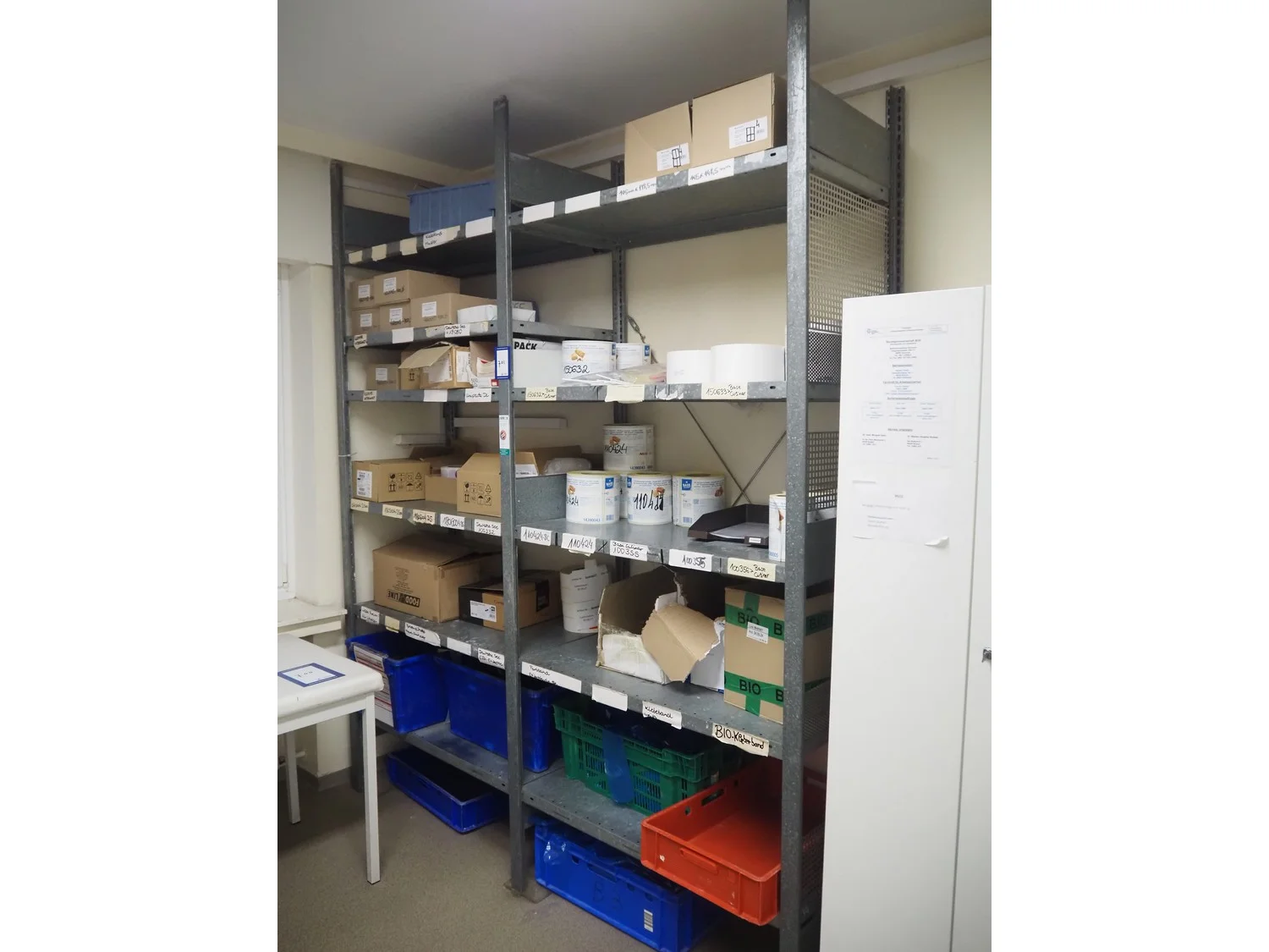 Barrex Lagertechnik GmbH galvanized rack, 6 floors, dimensions: 2070 mm x 550 mm x 2500 mm. Including printed and unprinted labels.