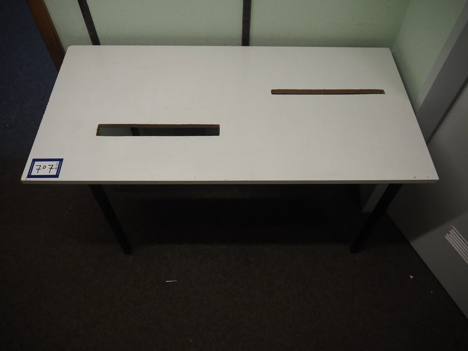 Steel table with wooden top, dimensions: 1300 mm x 650 mm x 740 mm.