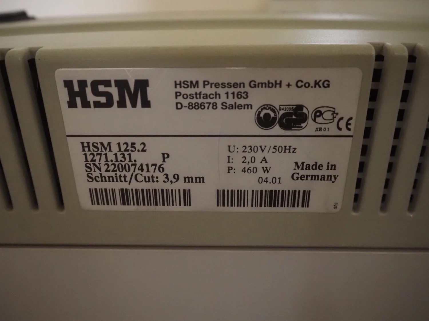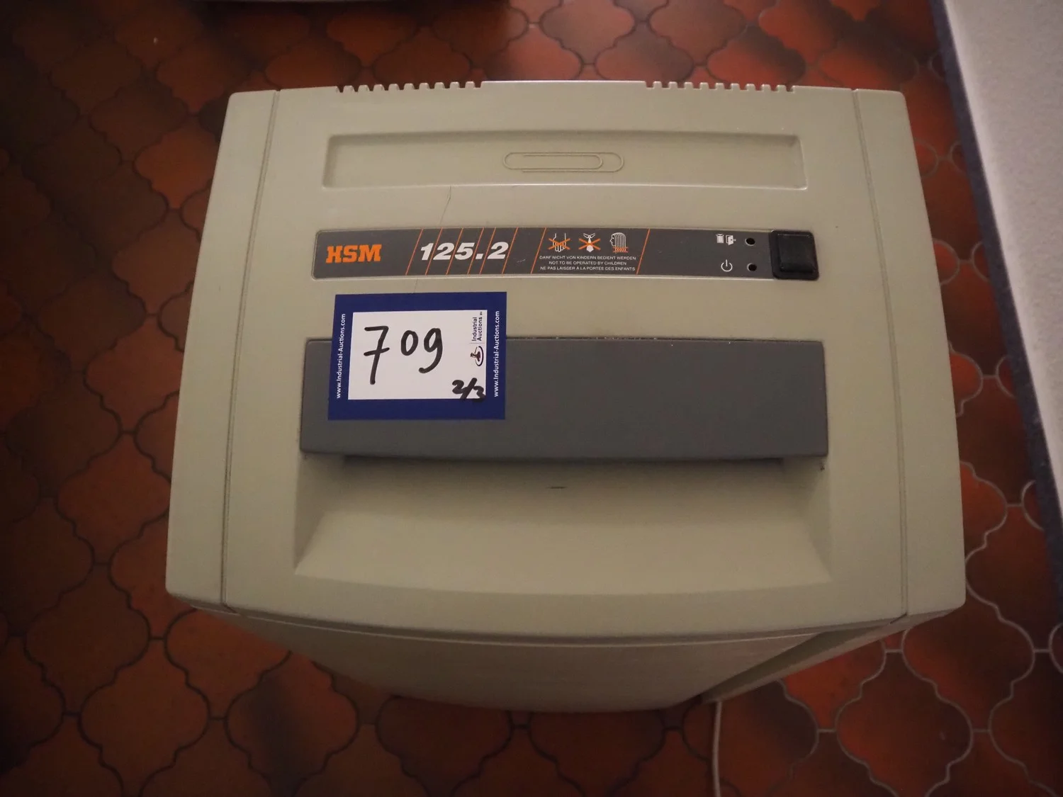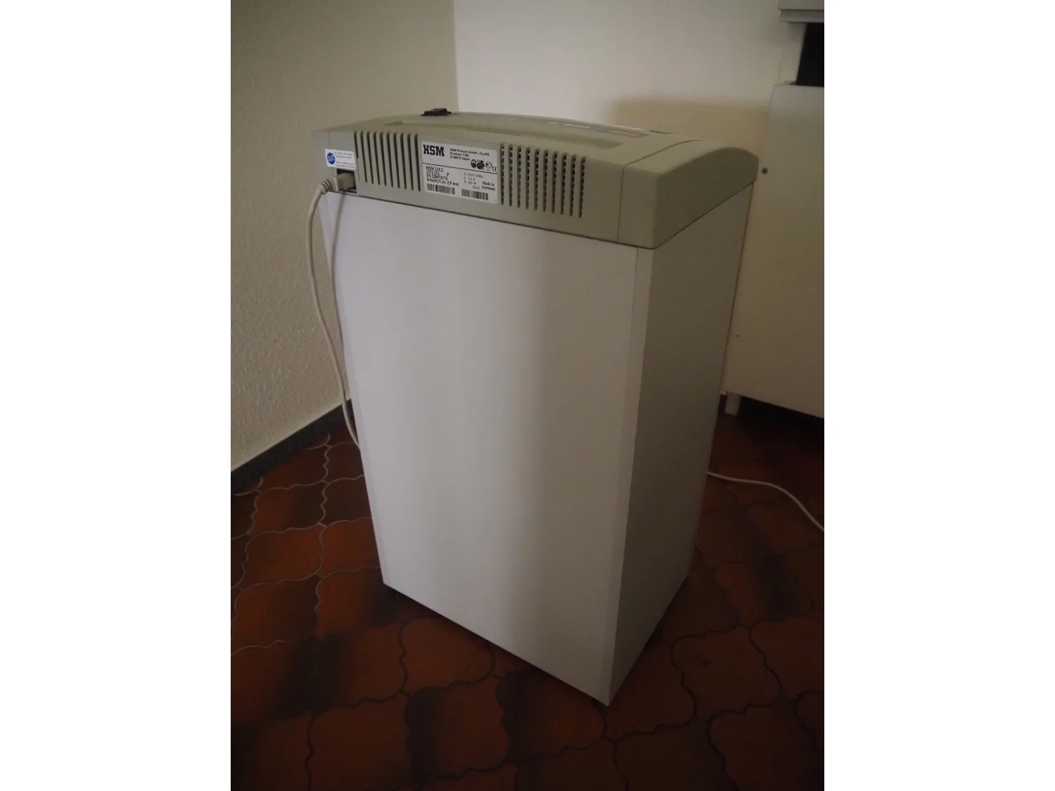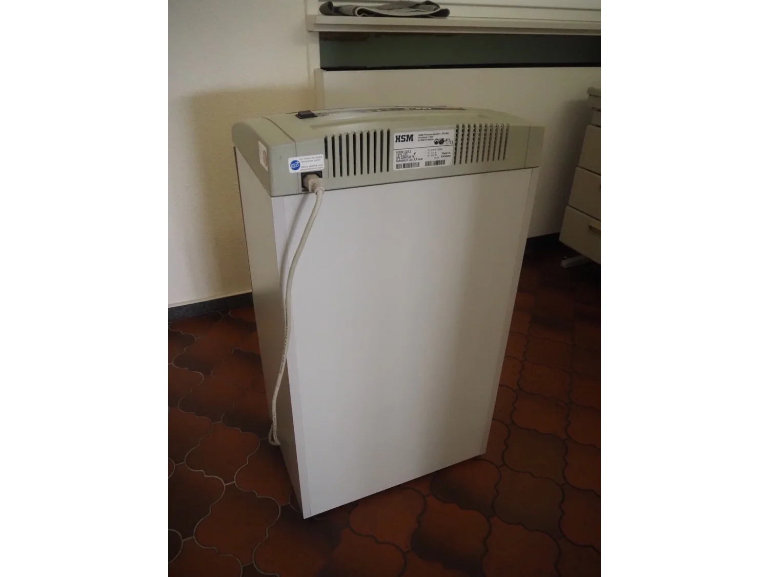Office inventory, among others: office table, dimensions: 1600 mm x 800 mm x 710 mm, HSM shredder, model: HSM 125.2, serial number: 220074176, 230 V, 50 Hz, 2 A, 460 W, cut: 3.9 mm, dimensions: 440 mm x 350 mm x 770 mm, board, dimensions: 900 mm x 10 mm x 1200 mm.