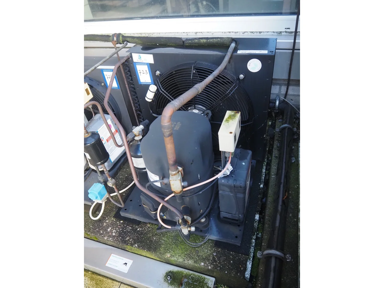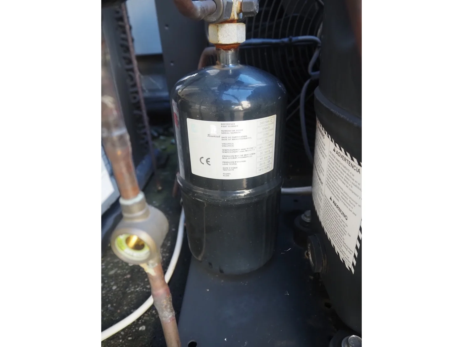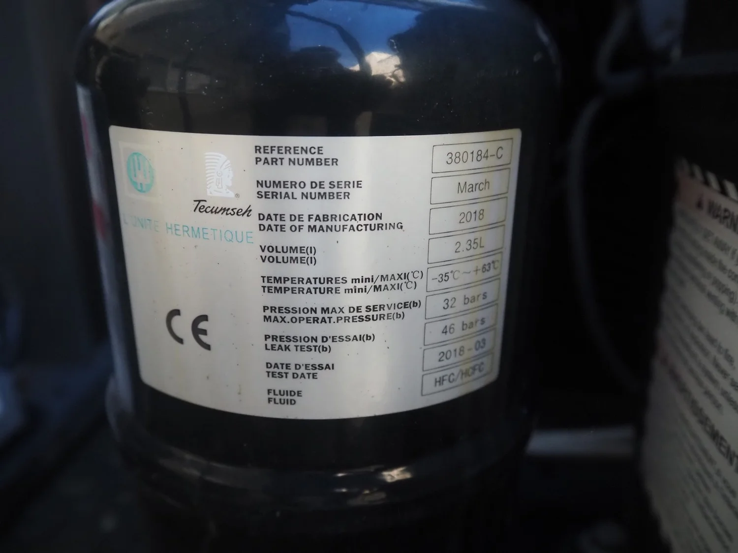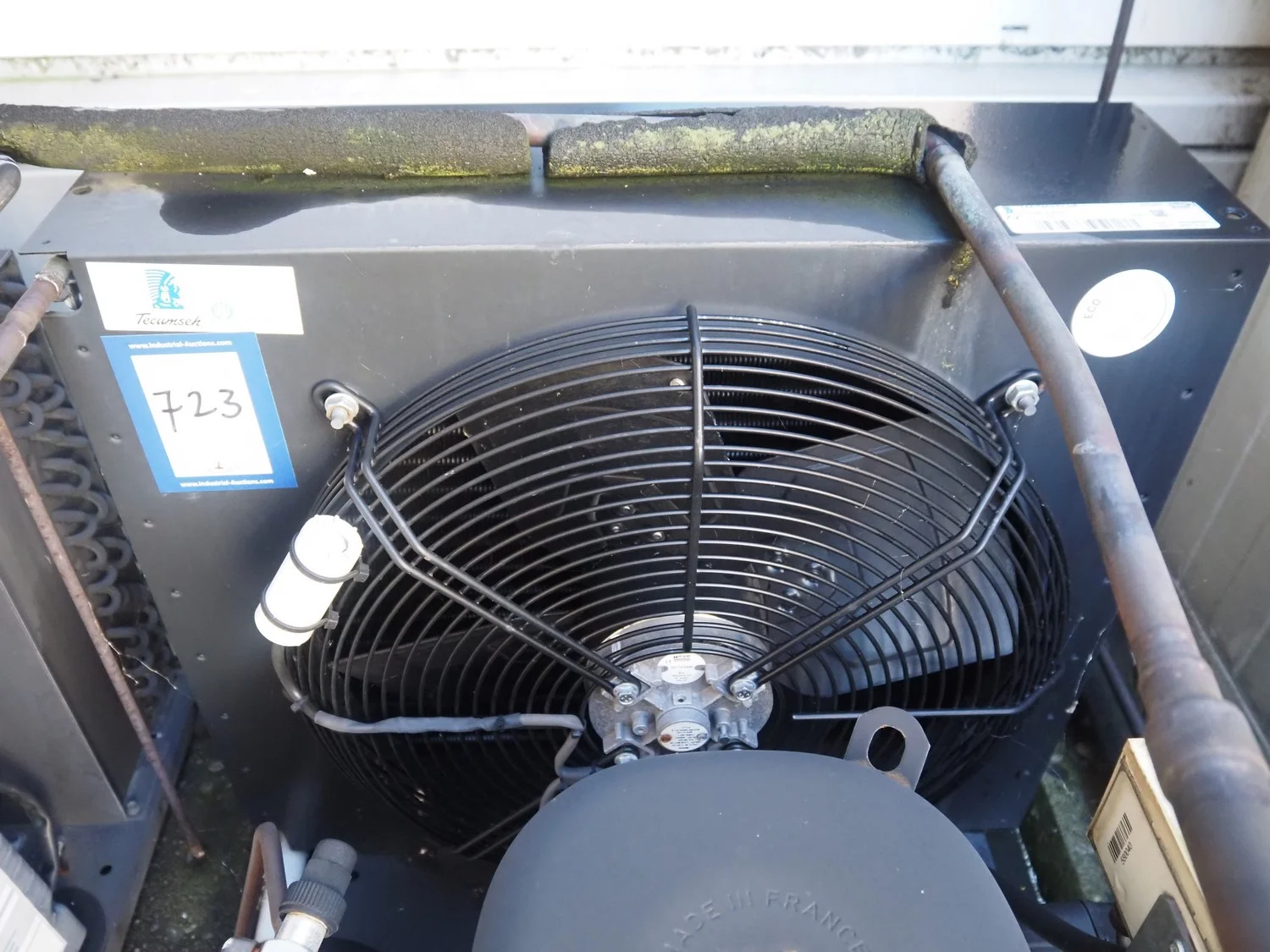 Tecumseh cooling compressor, model: TAGT4537Y HR, serial number: 18G24 141717 3H80730211, 400/440 V, 3 Ph, 50/60 Hz, 6.03/7 A, refrigerant: R-513A, dimensions: 600 mm x 600 mm x 540 mm.