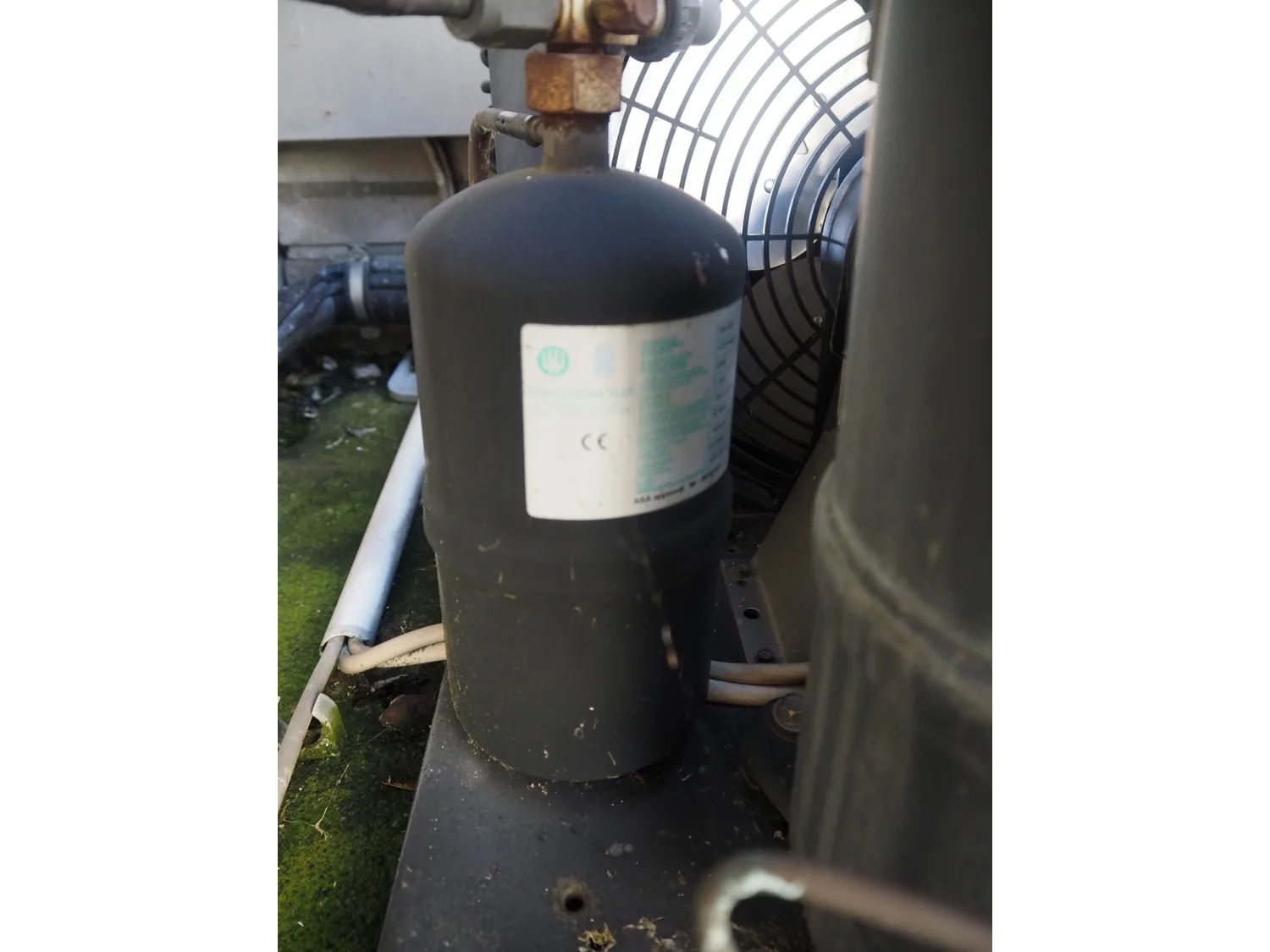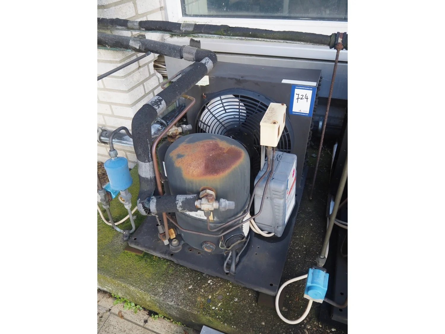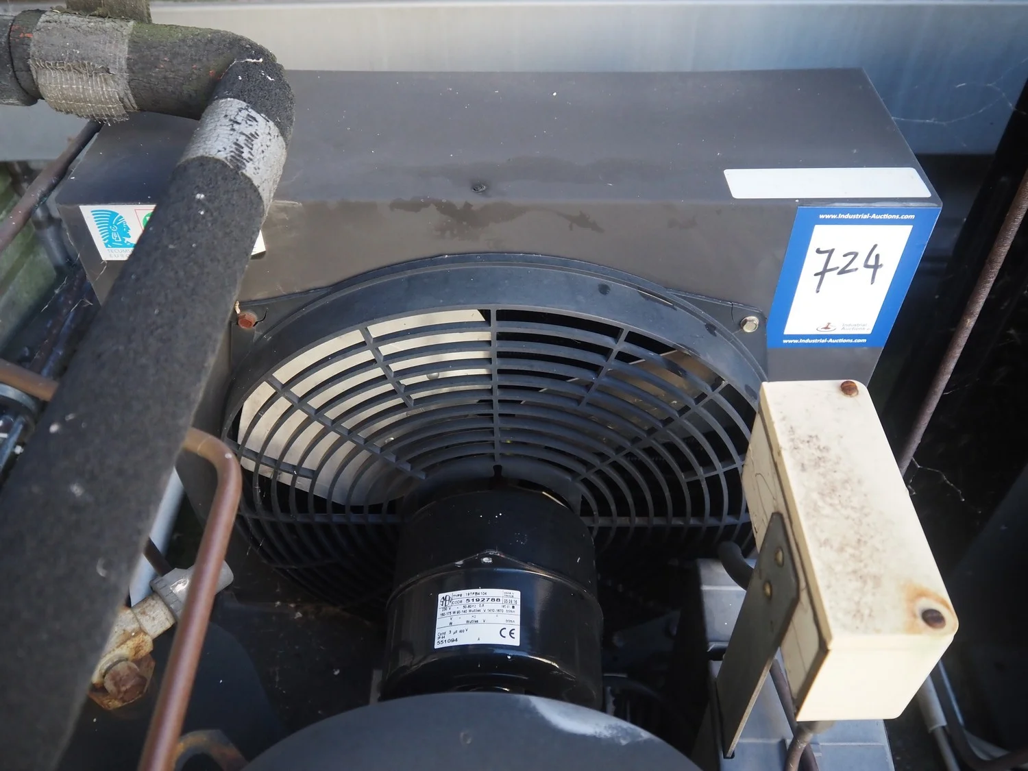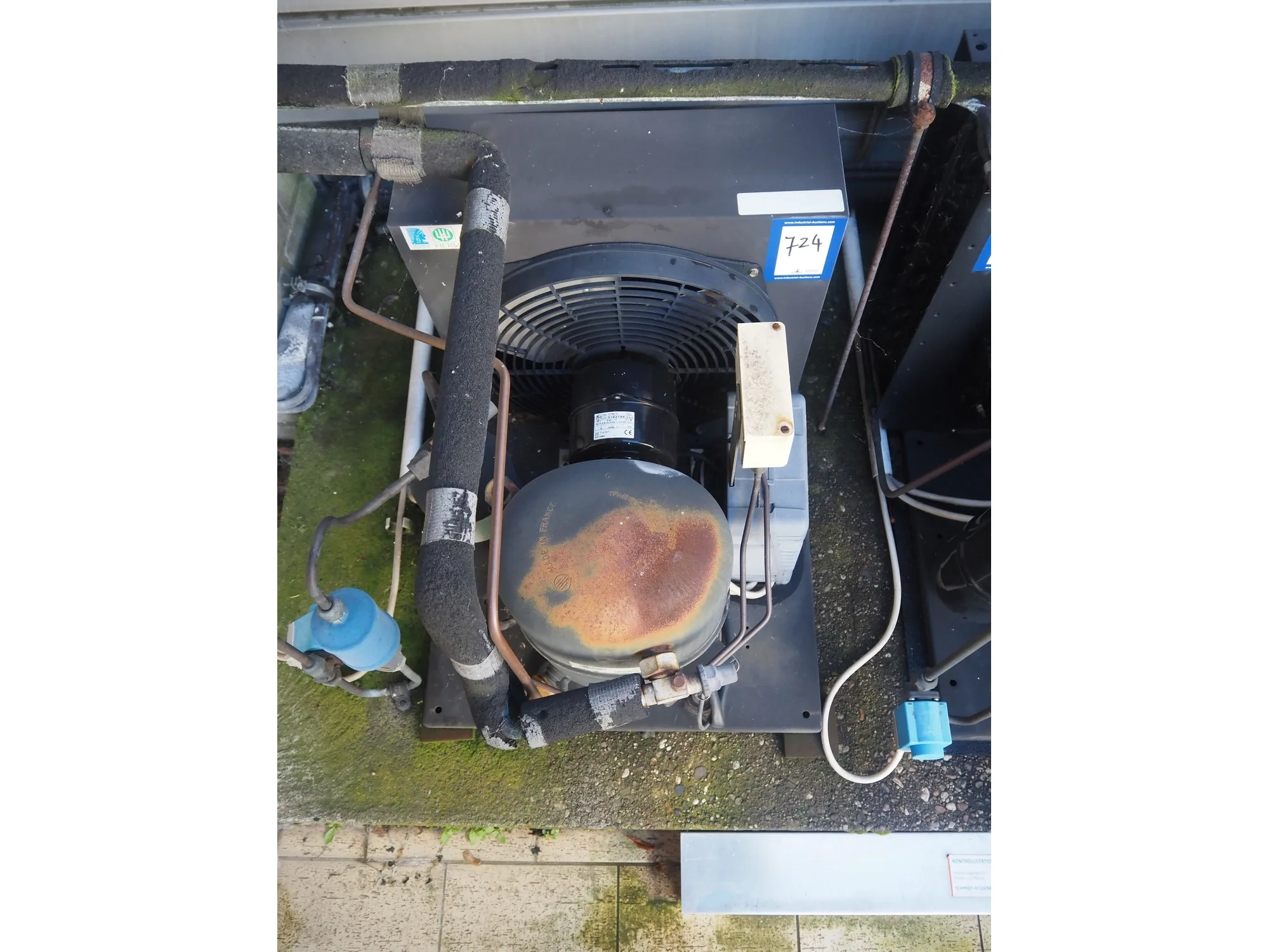 Tecumseh cooling compressor, model: TFH4518Y, serial number: 7566630100, 400/440 V, 3 Ph, 50/60 Hz, 3.3/3.4 A, refrigerant: R-134A, dimensions: 600 mm x 480 mm x 450 mm.