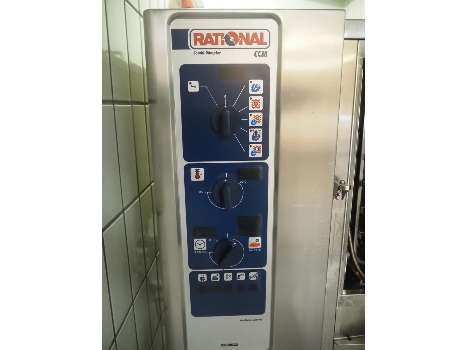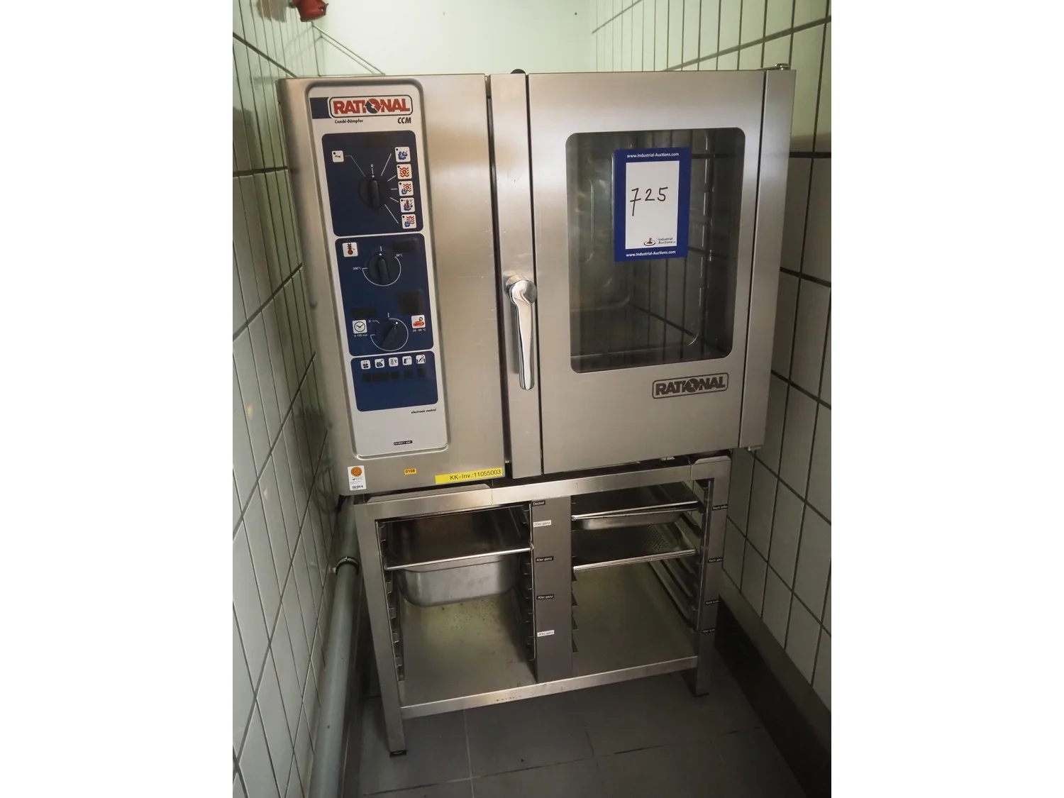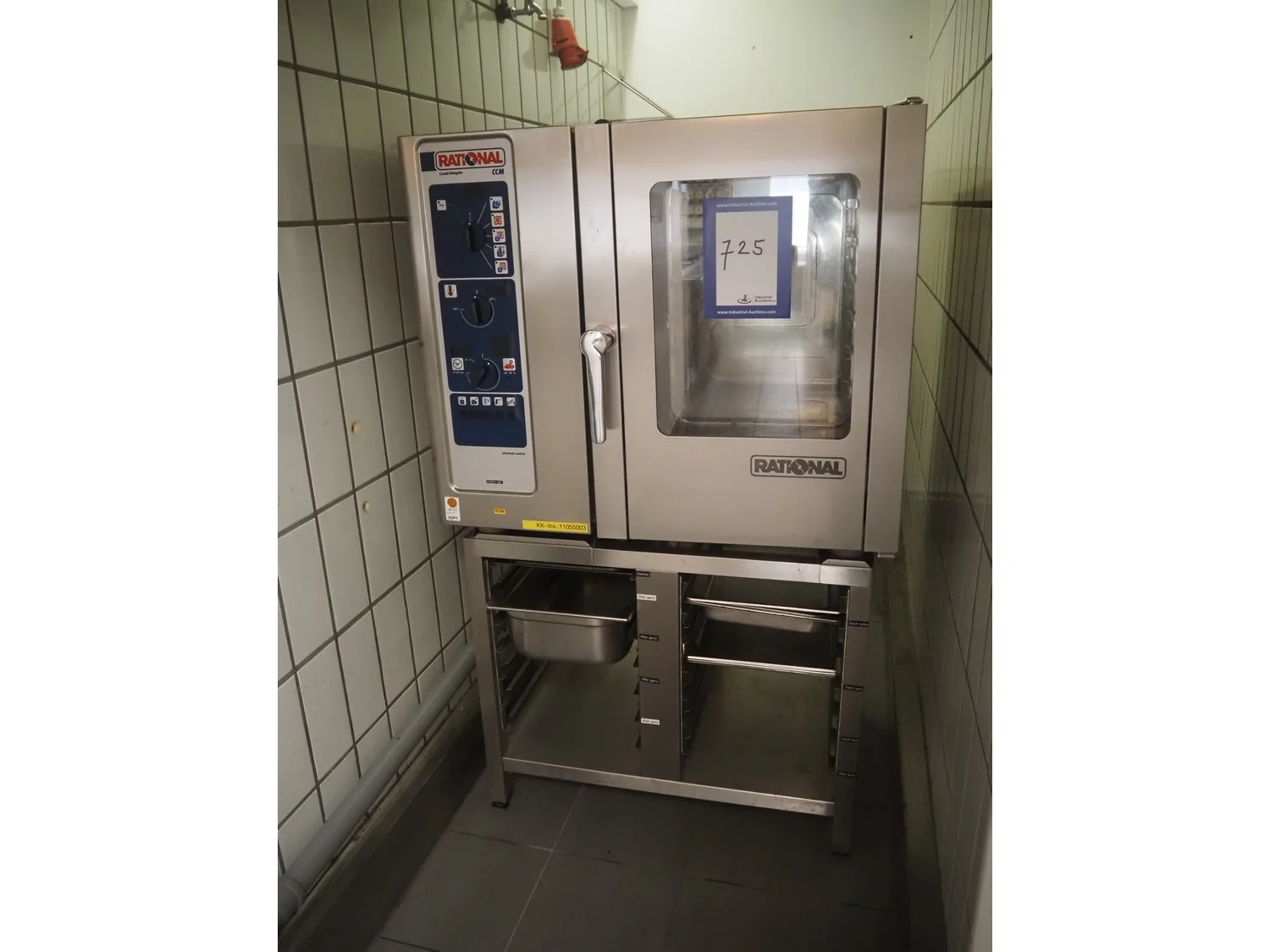 Rational combi steamer, 6 floors, floor dimensions: 540 mm x 330 mm, total dimensions: 900 mm x 760 mm x 1550 mm.