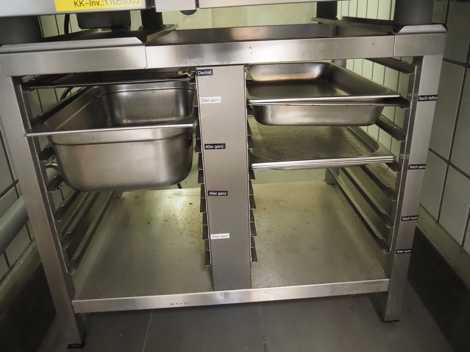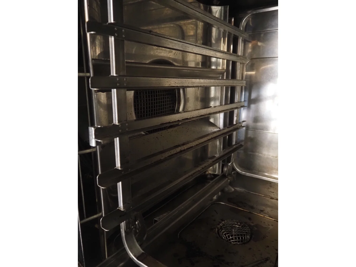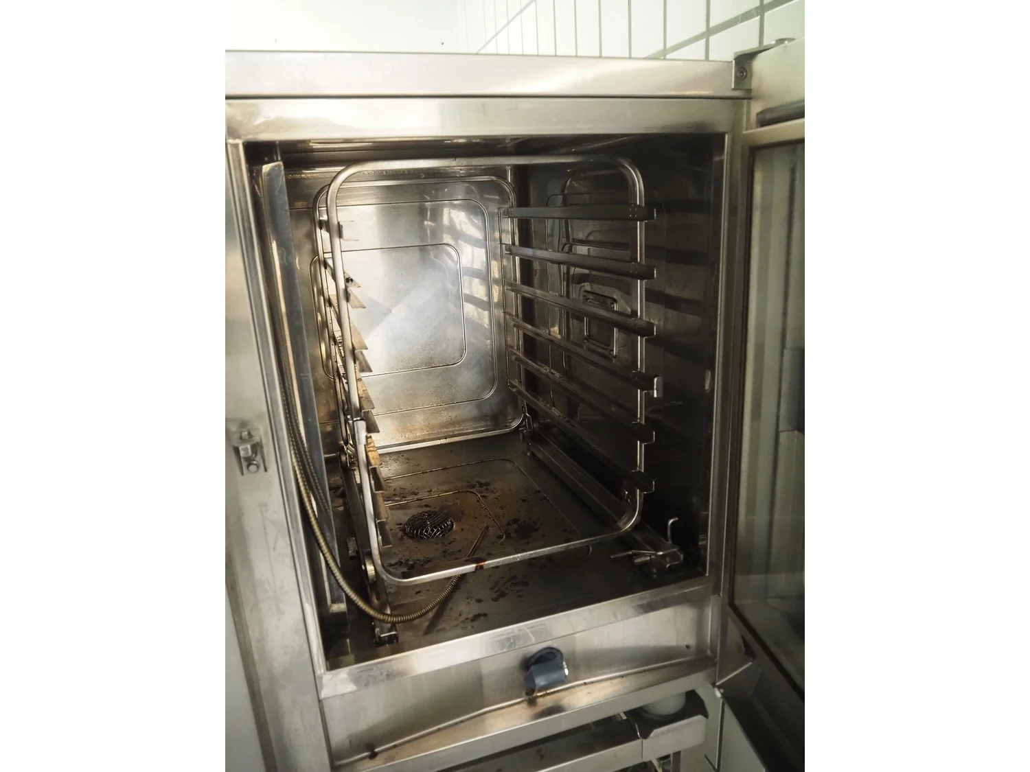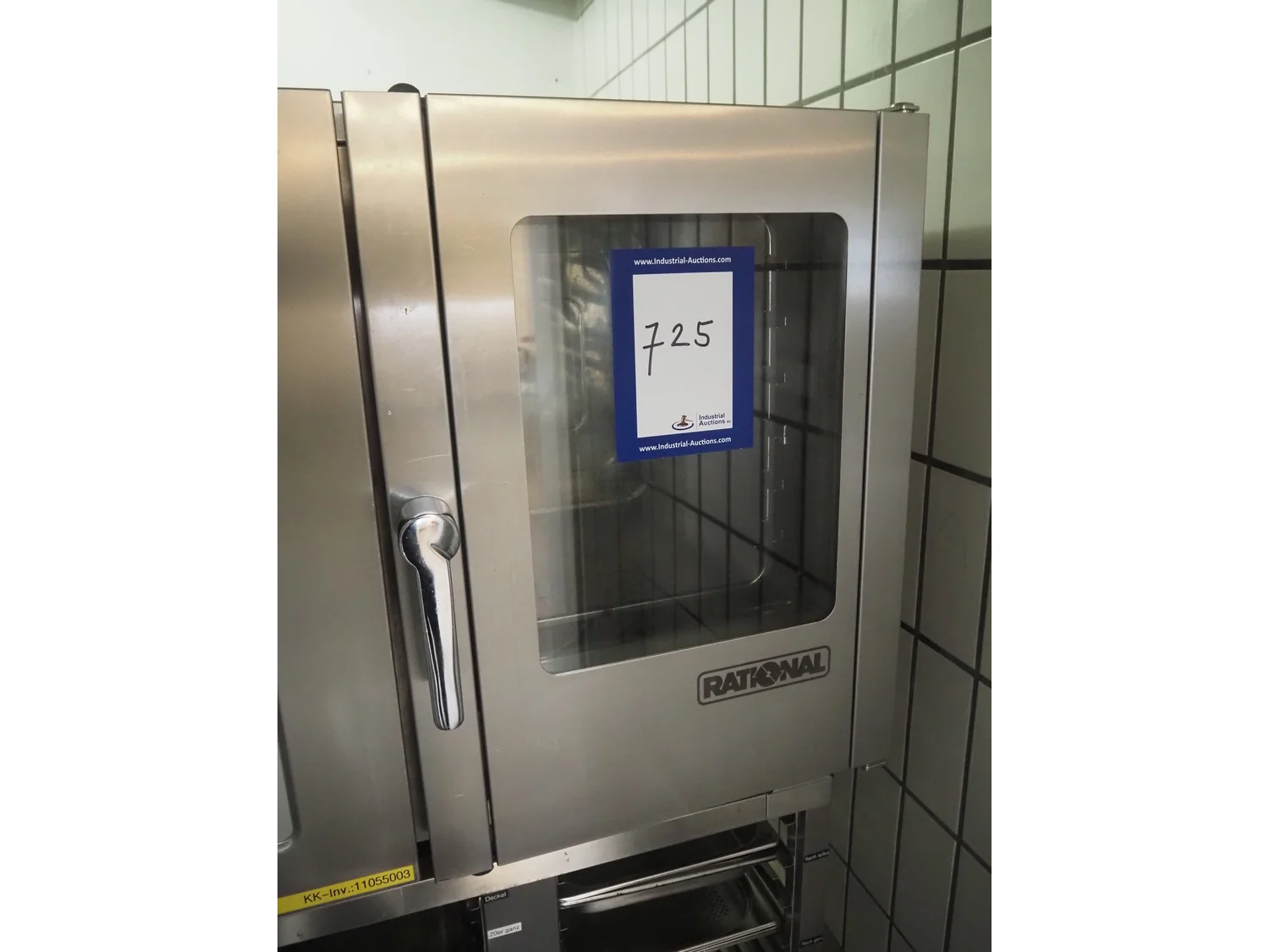 Rational combi steamer, 6 floors, floor dimensions: 540 mm x 330 mm, total dimensions: 900 mm x 760 mm x 1550 mm.