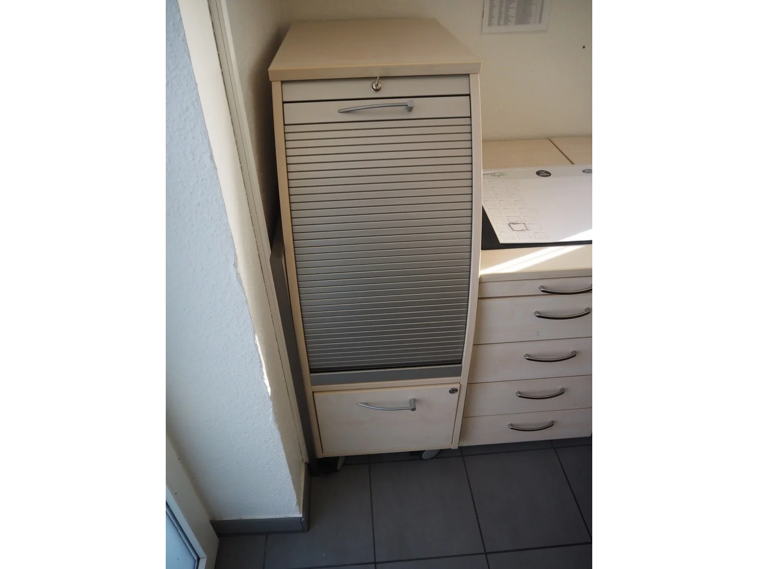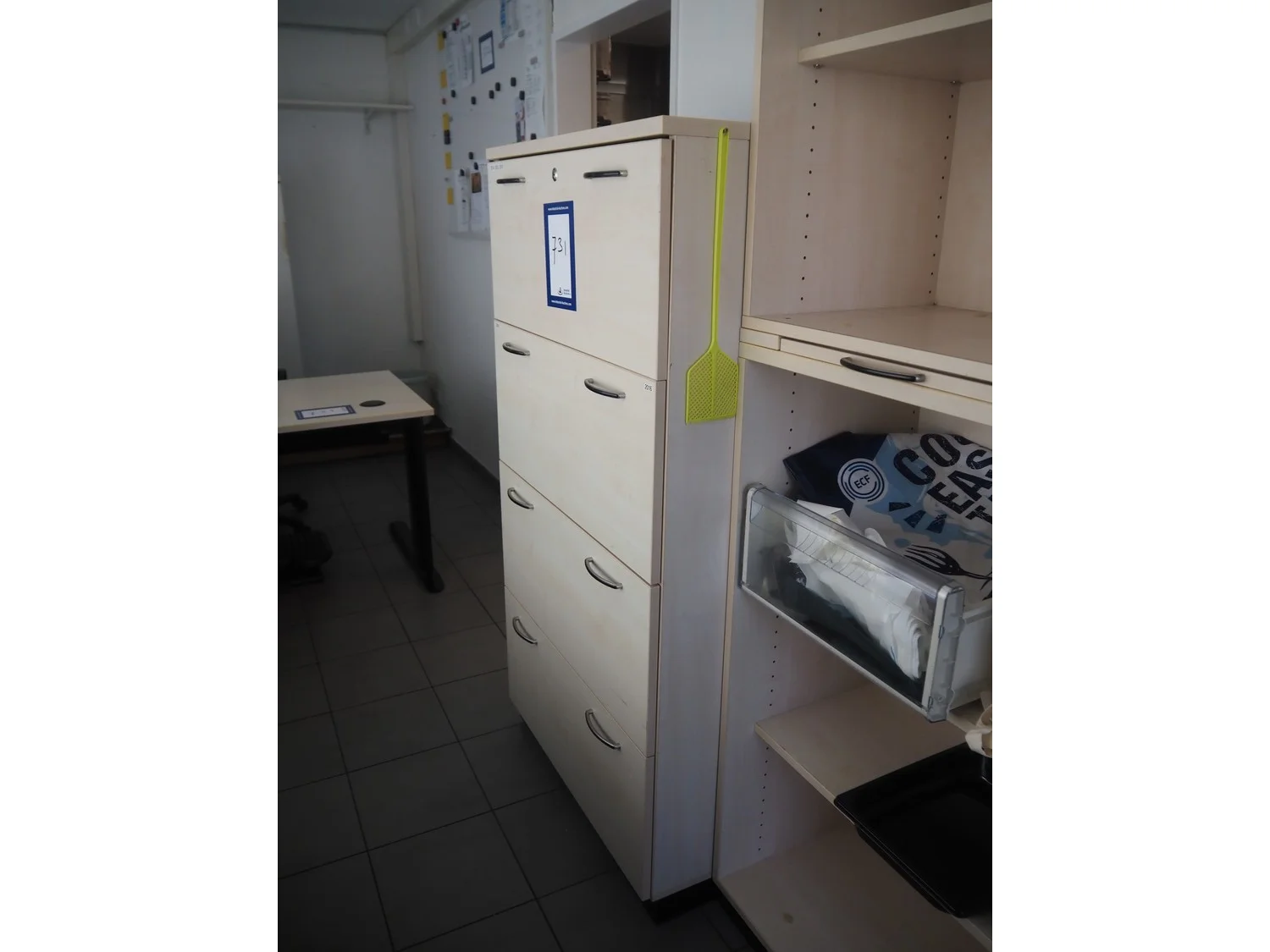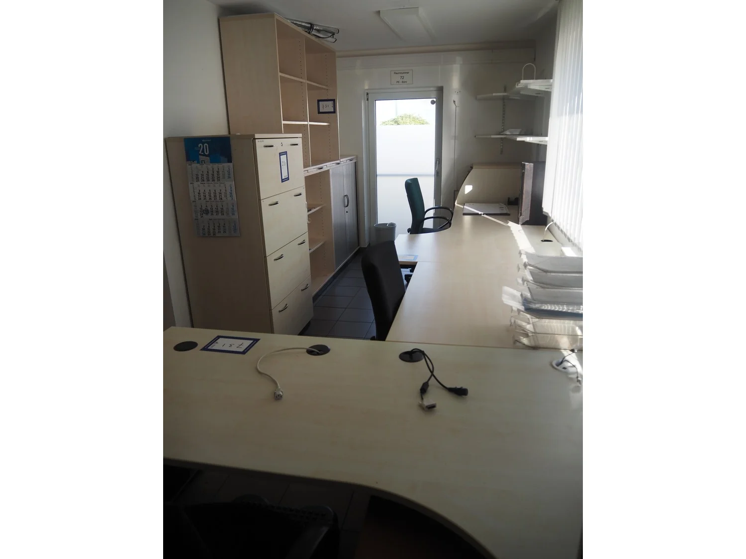 Office inventory, among others: 3 office tables, dimensions: (1x) 1800 mm x 1000 mm x 720 mm, (1x) 2000 mm x 1200 mm x 720 mm, (1x) 1200 mm x 800 mm x 720 mm, different sizes cabinets.