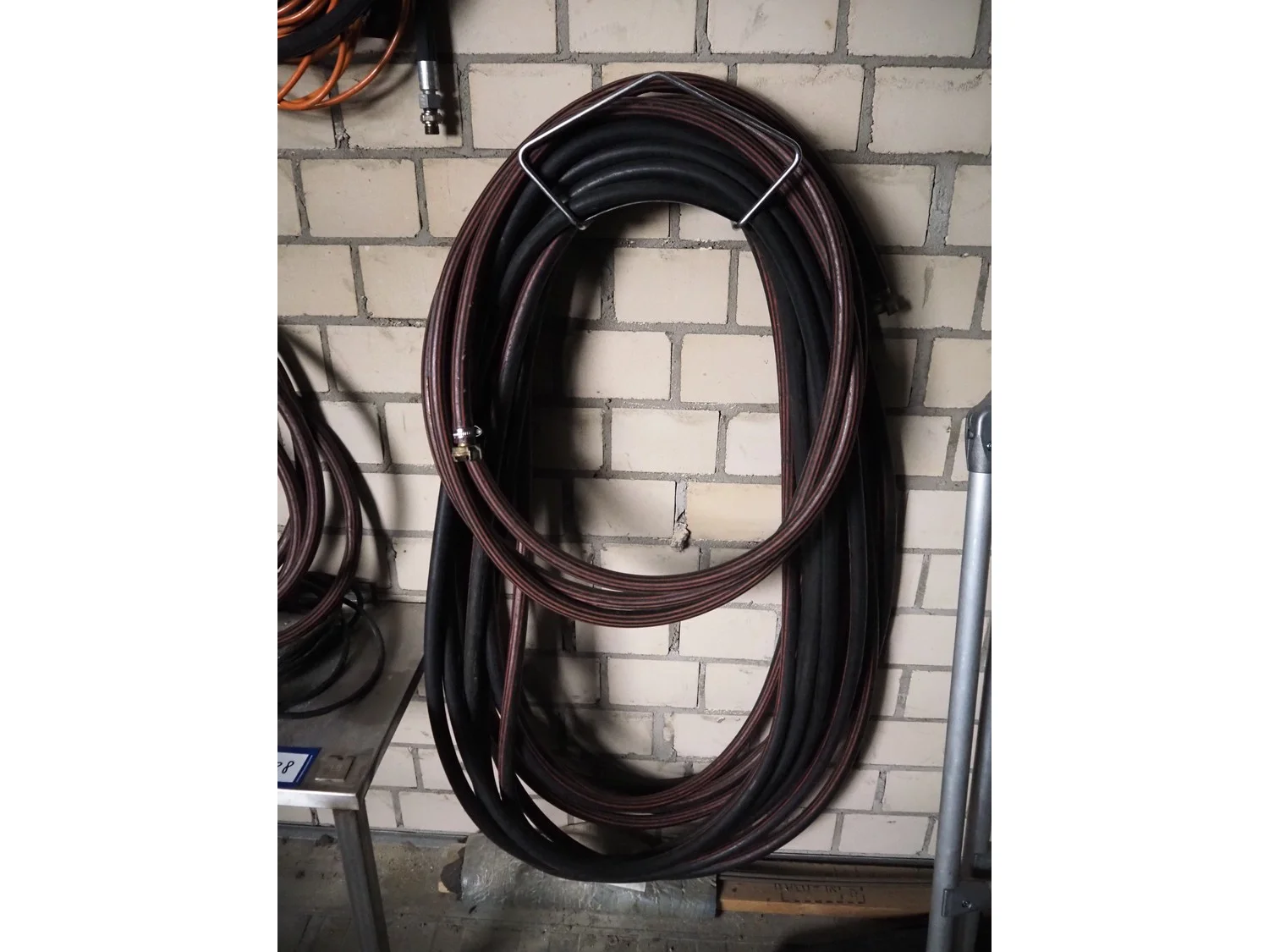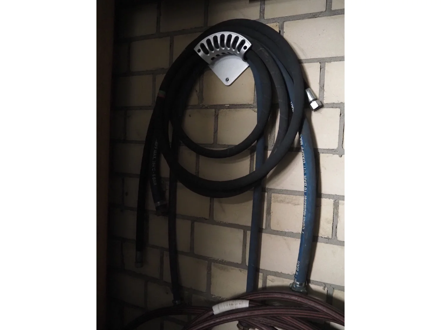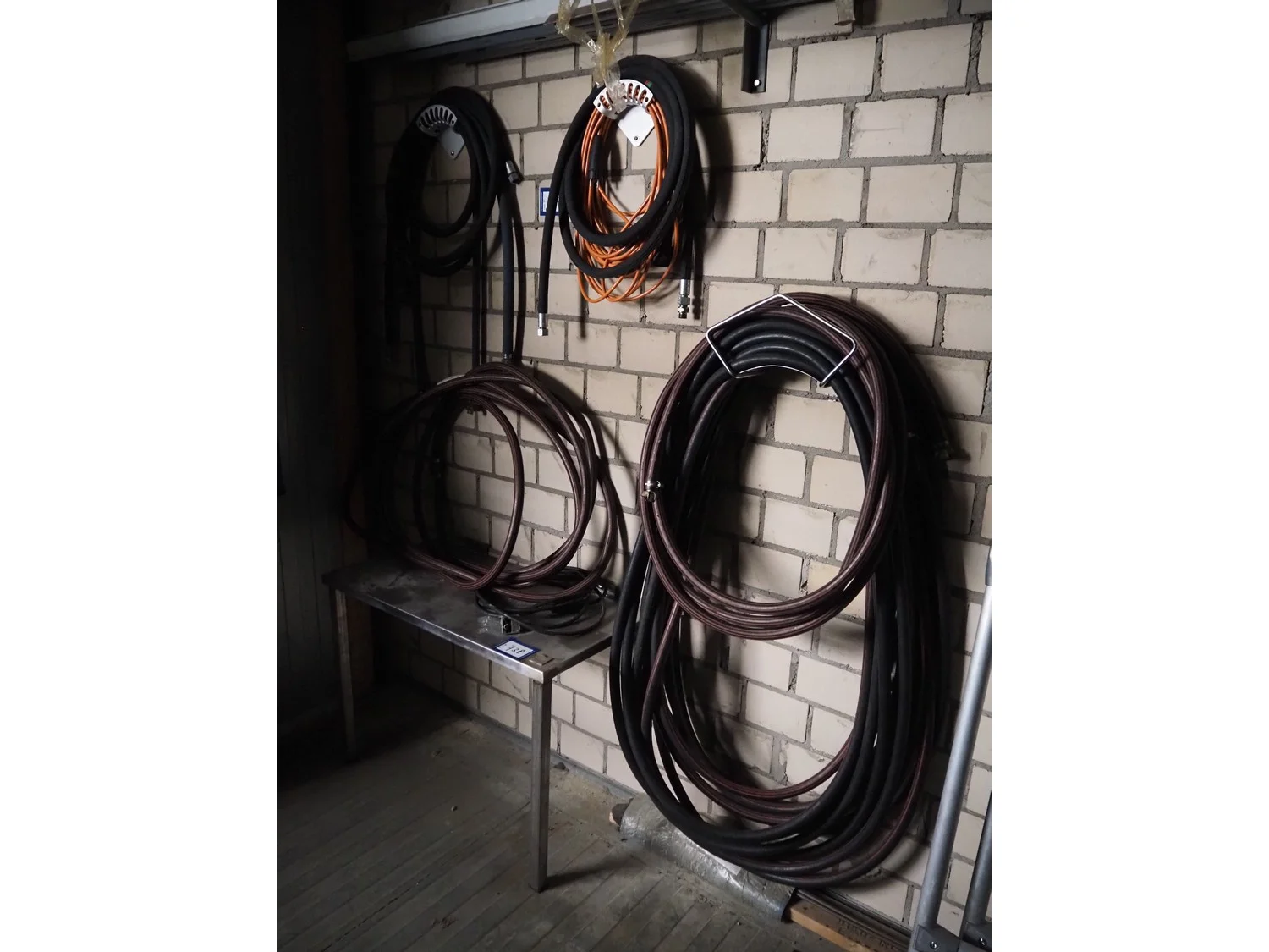 3 hose reels with hoses, hydraulic hoses and electric cable.