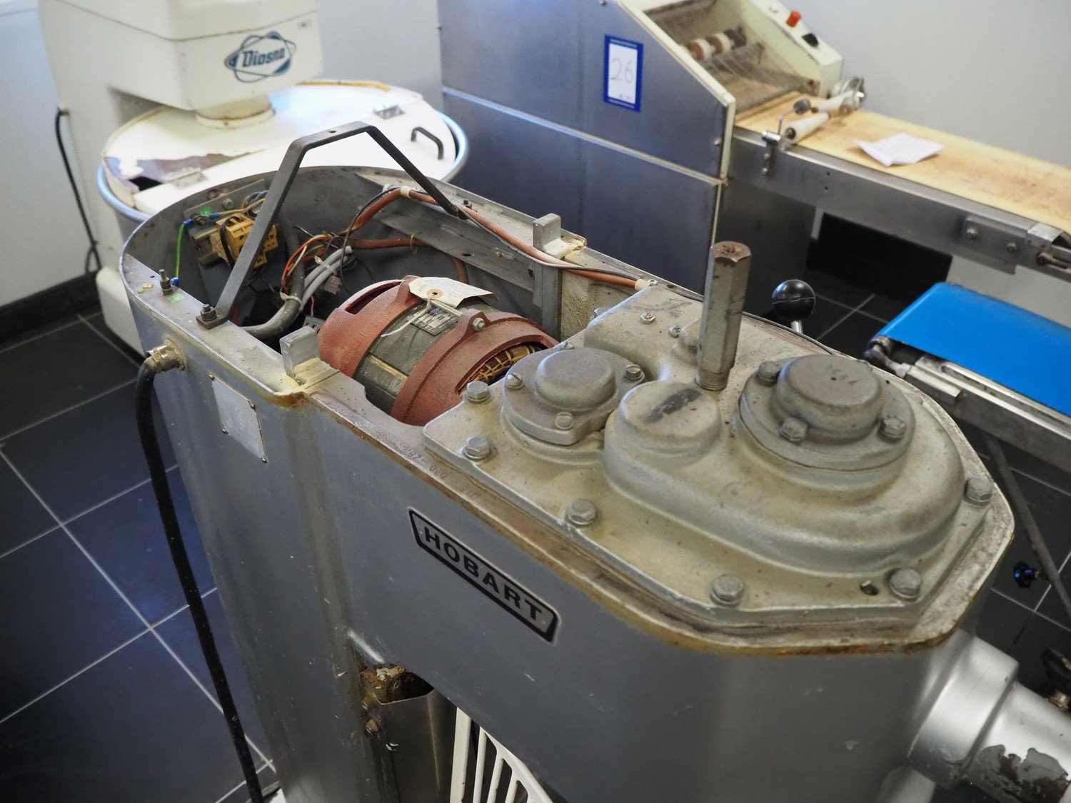 Hobart mixer, model: H600, number: 25506, 380 V, 3 Ph, 50 Hz, s/s bowl, bowl dimensions: Ø 460 mm x 400 mm, total dimensions: 1000 mm x 700 mm x 1420 mm.